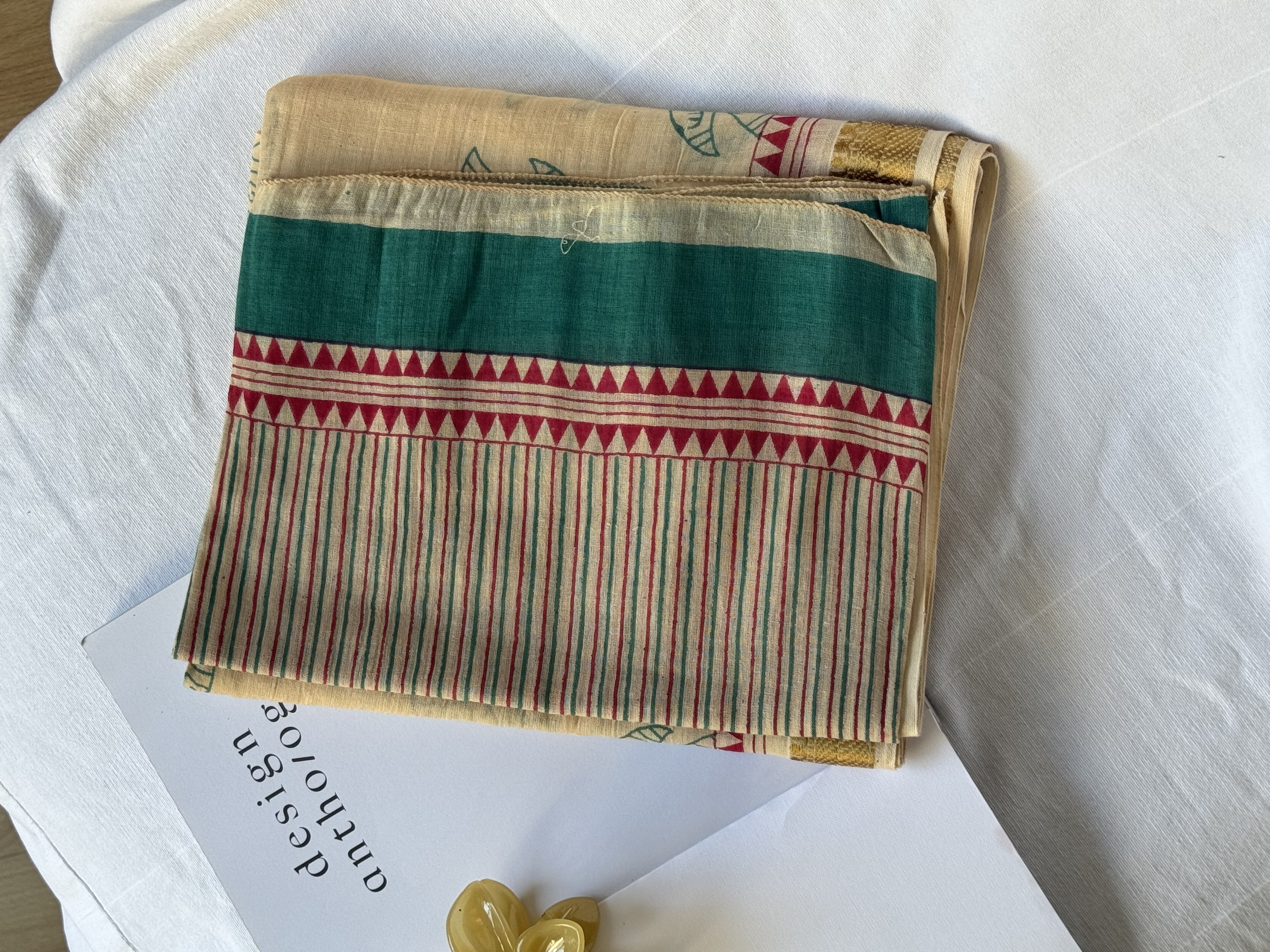 Lotus Cotton Pareo in beige and petrol