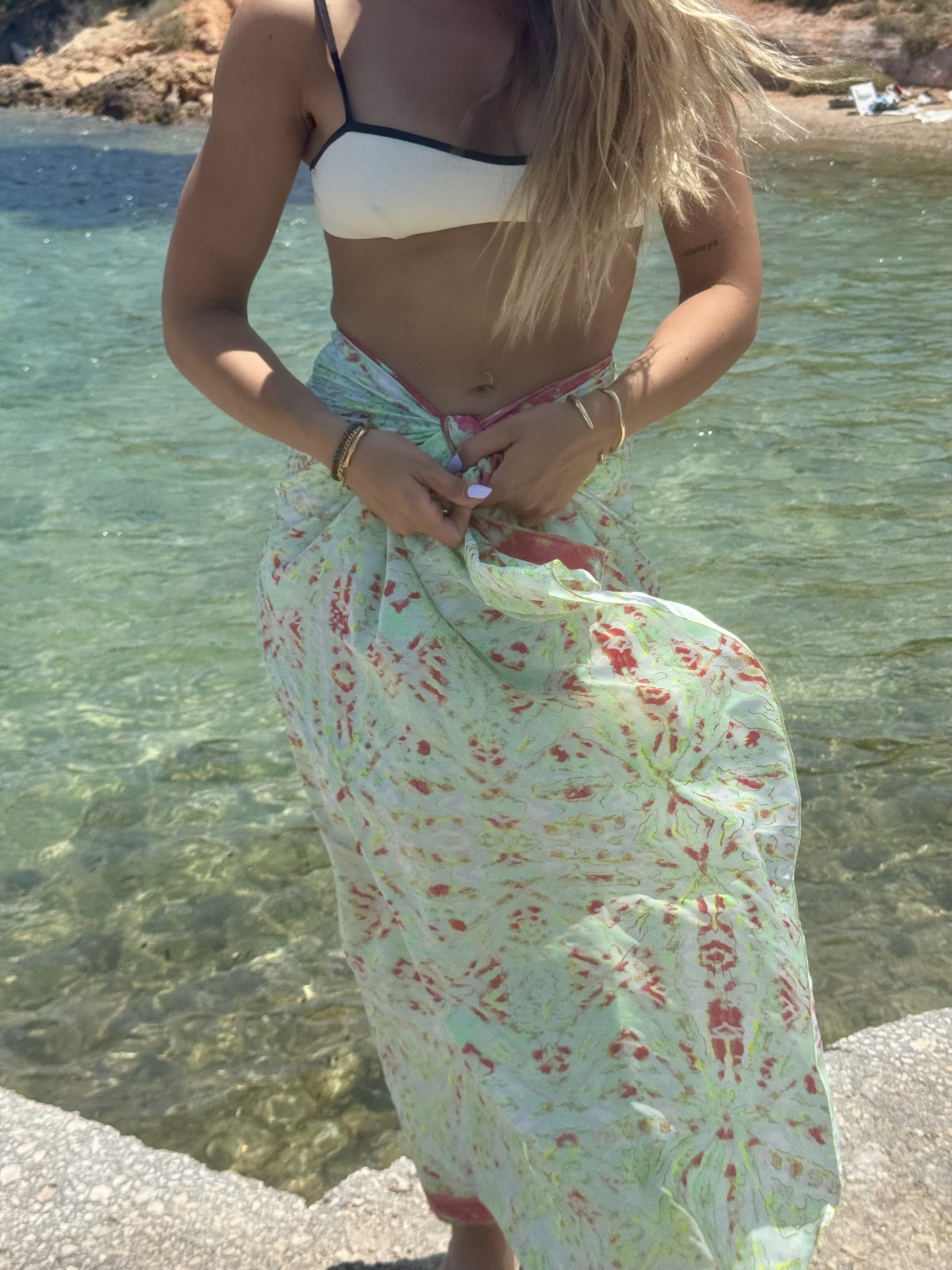 Tidal Art. Silk Pareo in watermelon shades