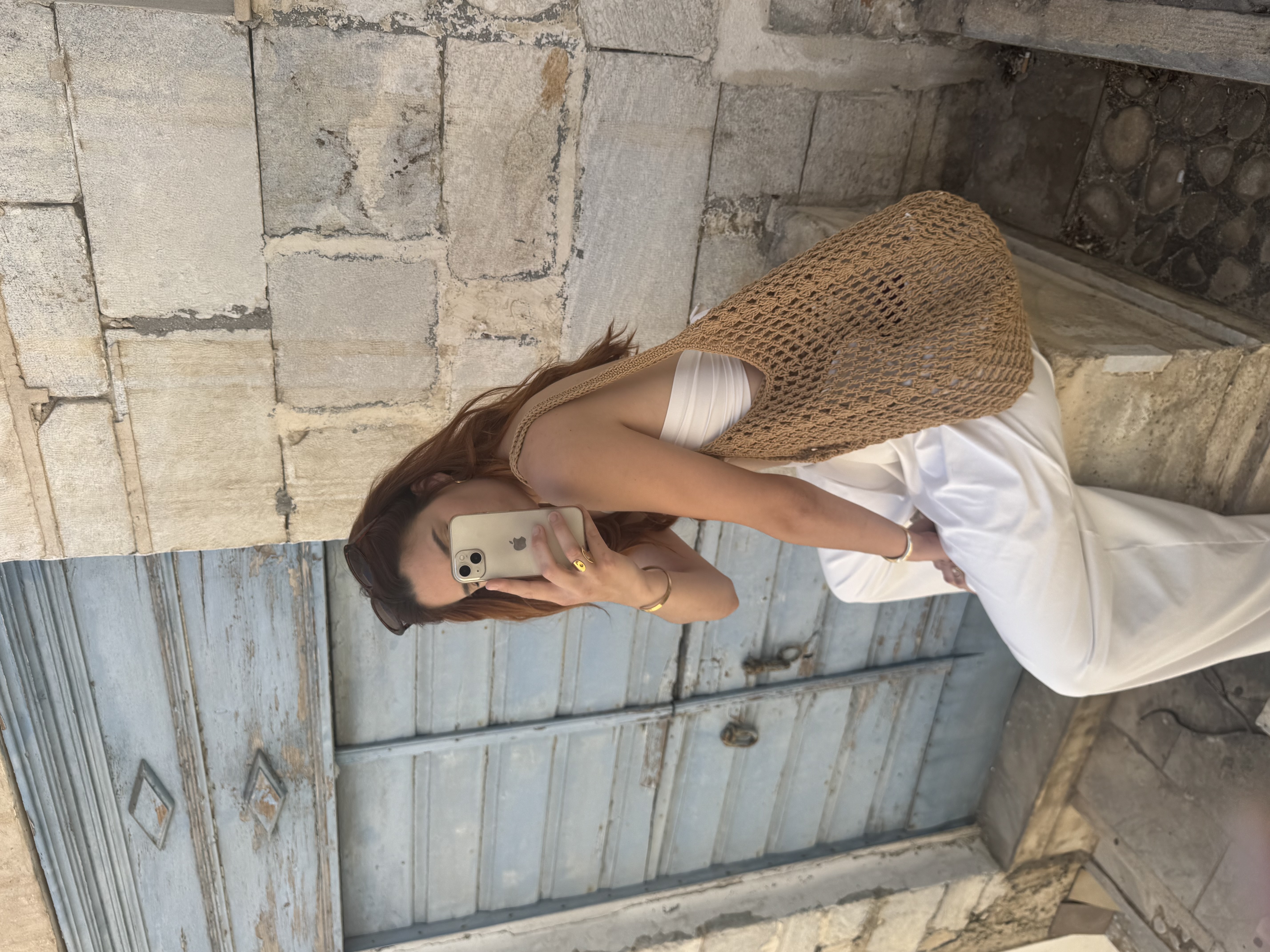 Net saddle bag in warm beige