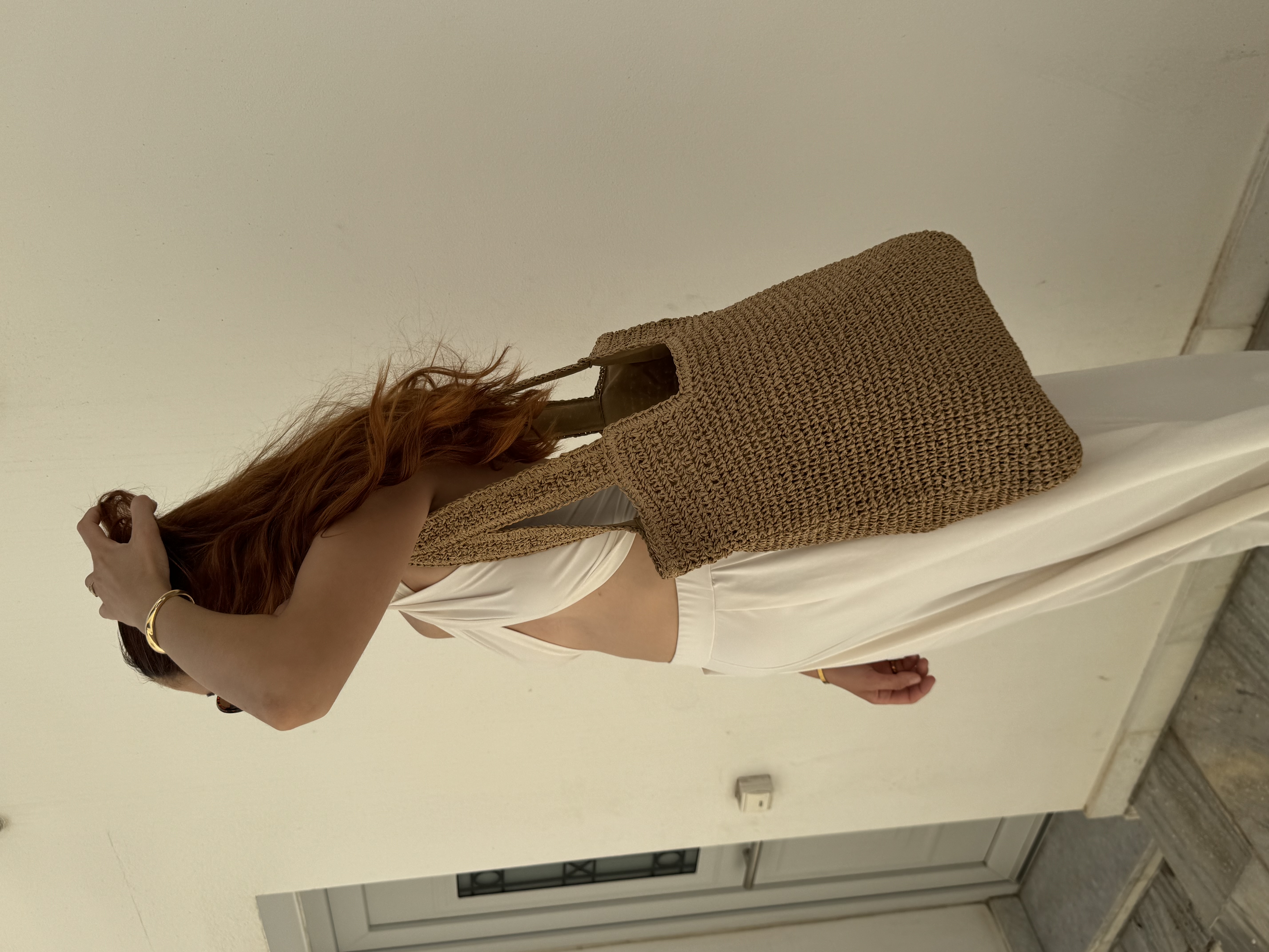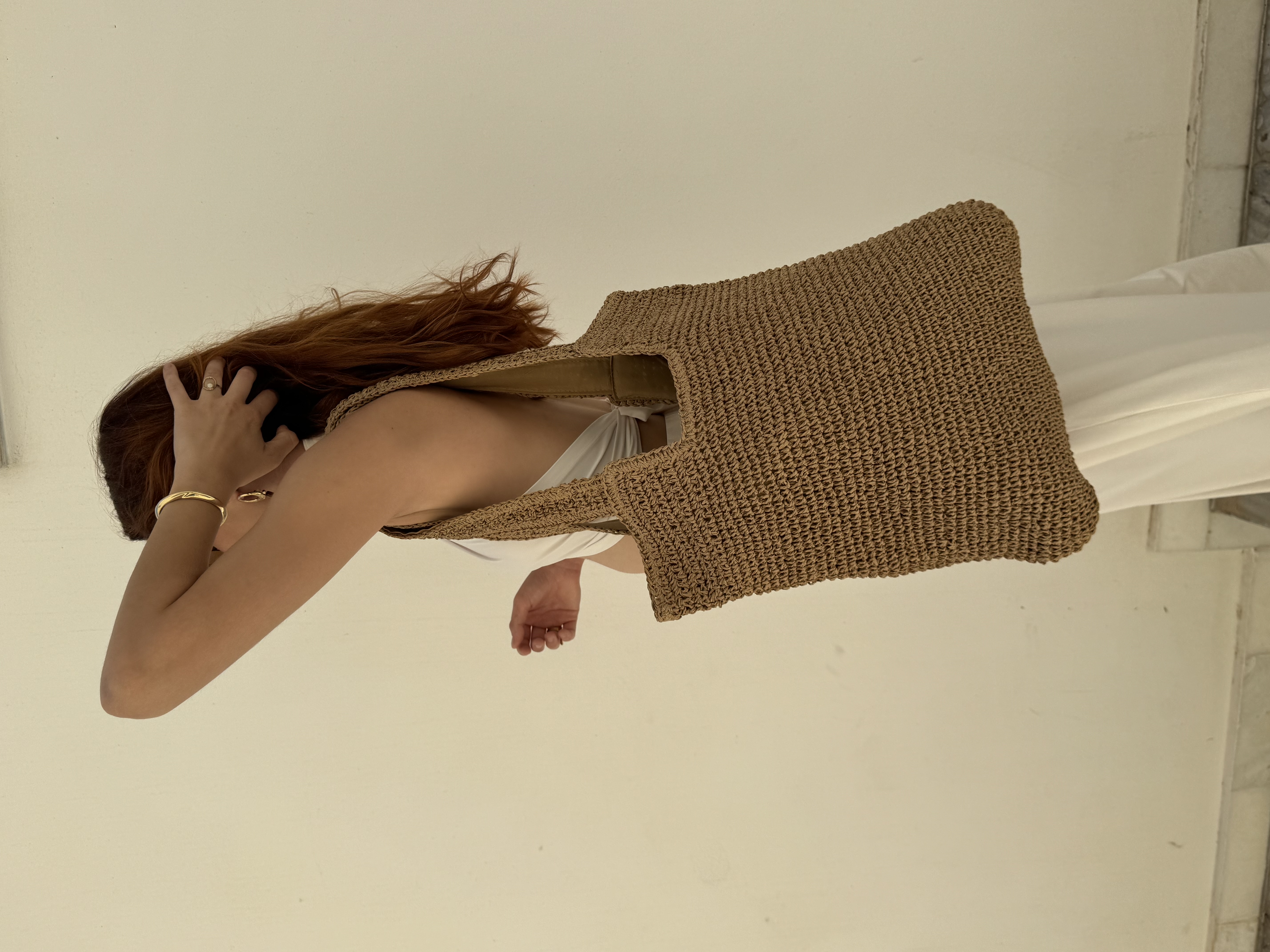 Large everyday summer bag in warm beige