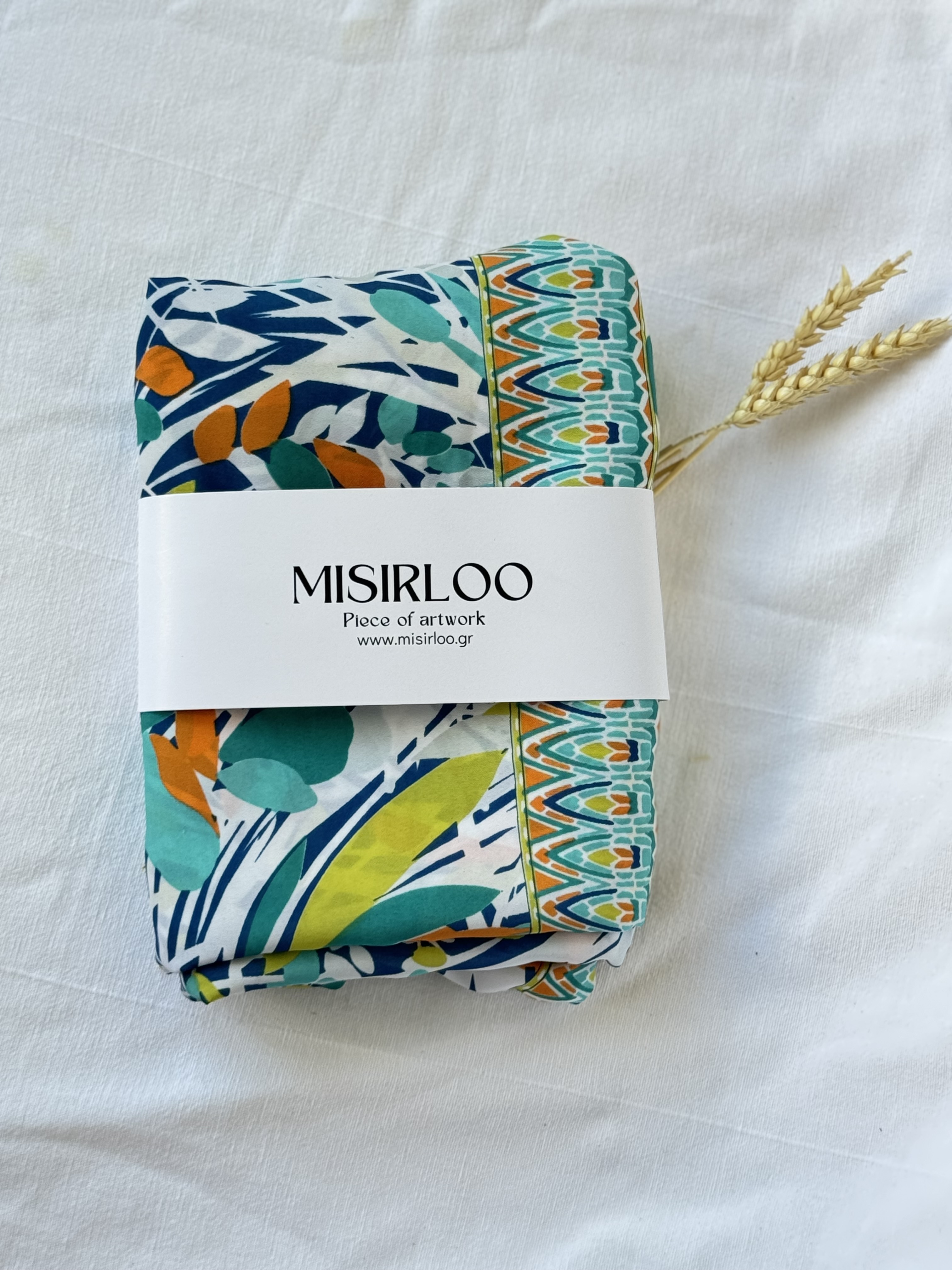 Maui Art. Silk Pareo in aqua and orange