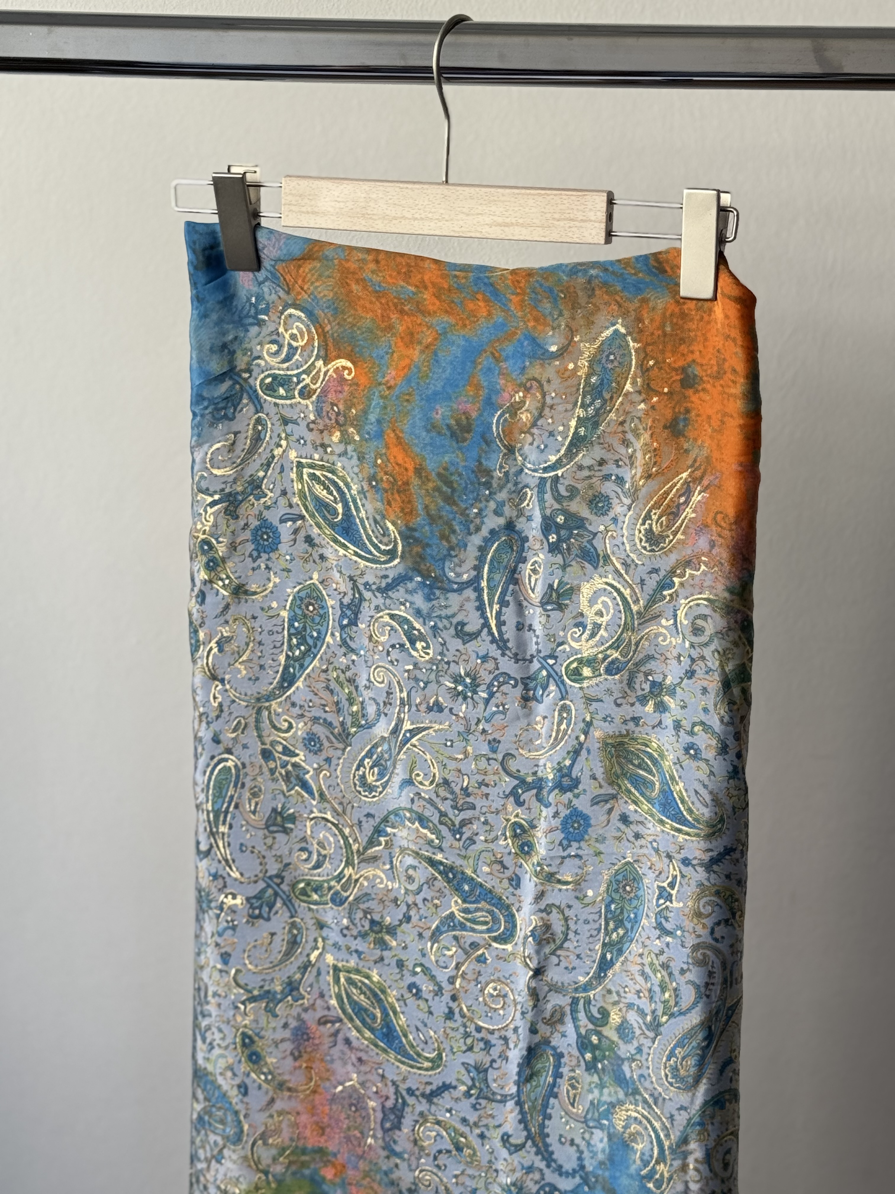 Mosaic Lachuri Art. Silk Pareo in ciel and orange