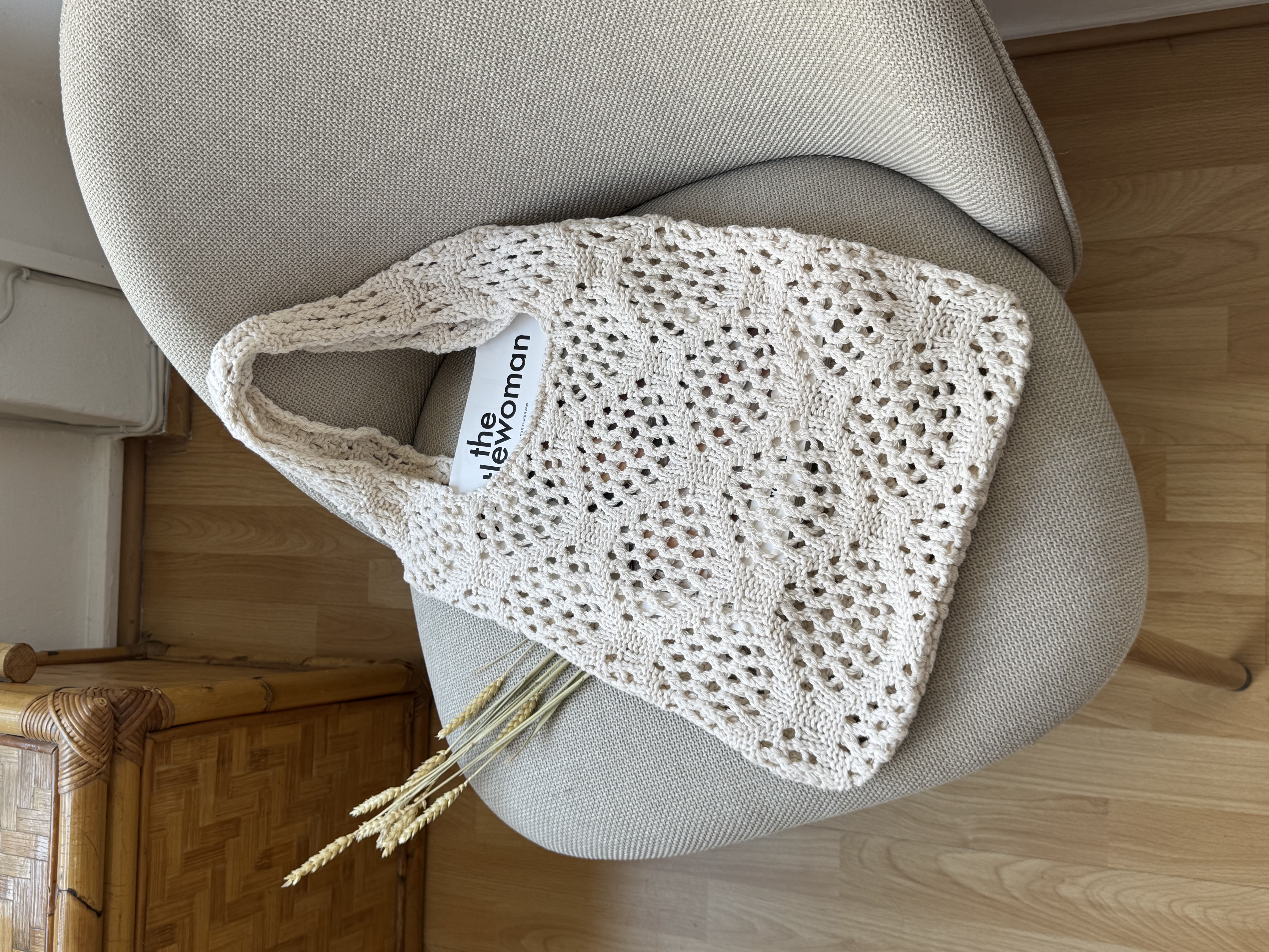 Knitted shoulder bag in off white