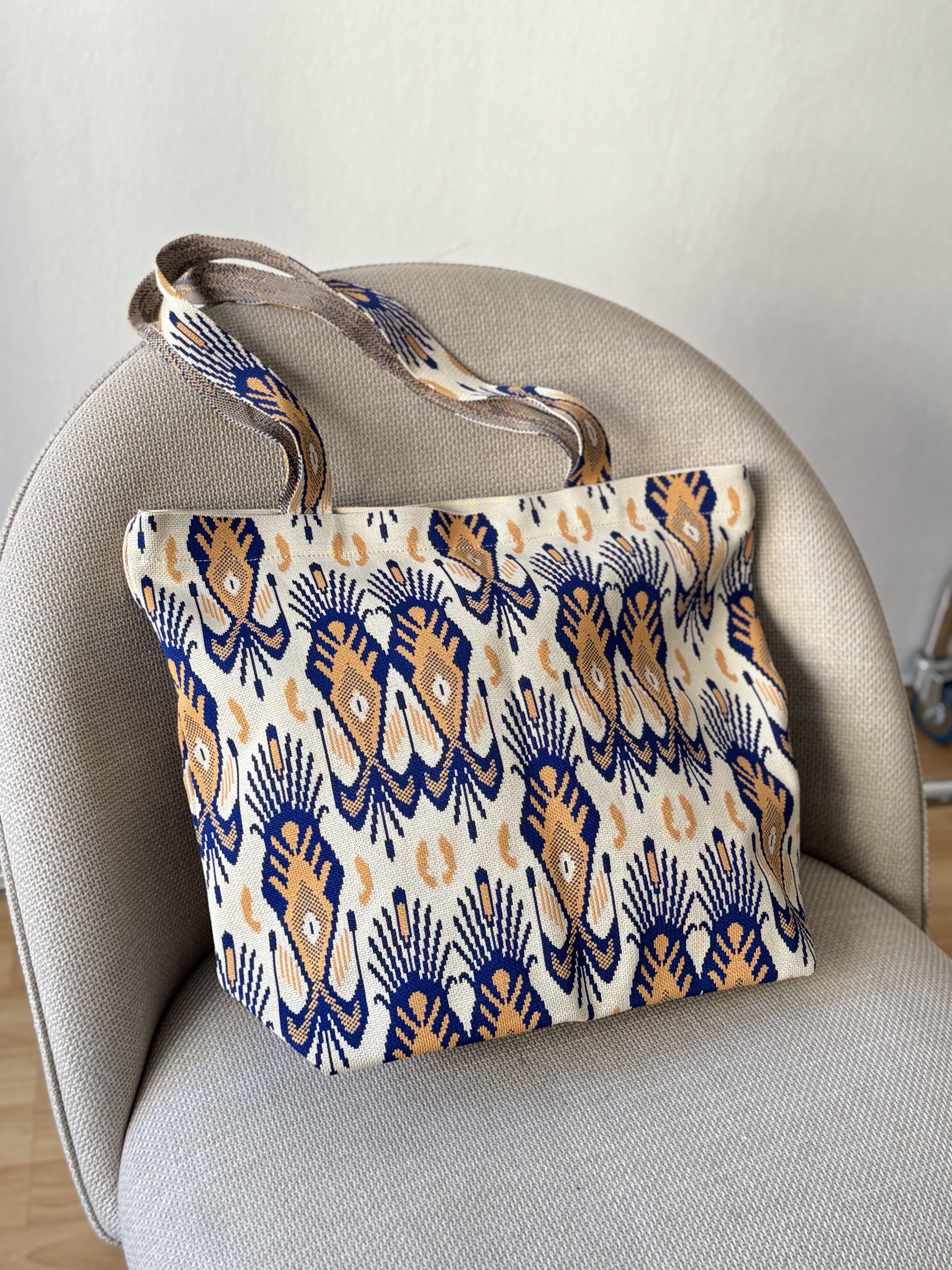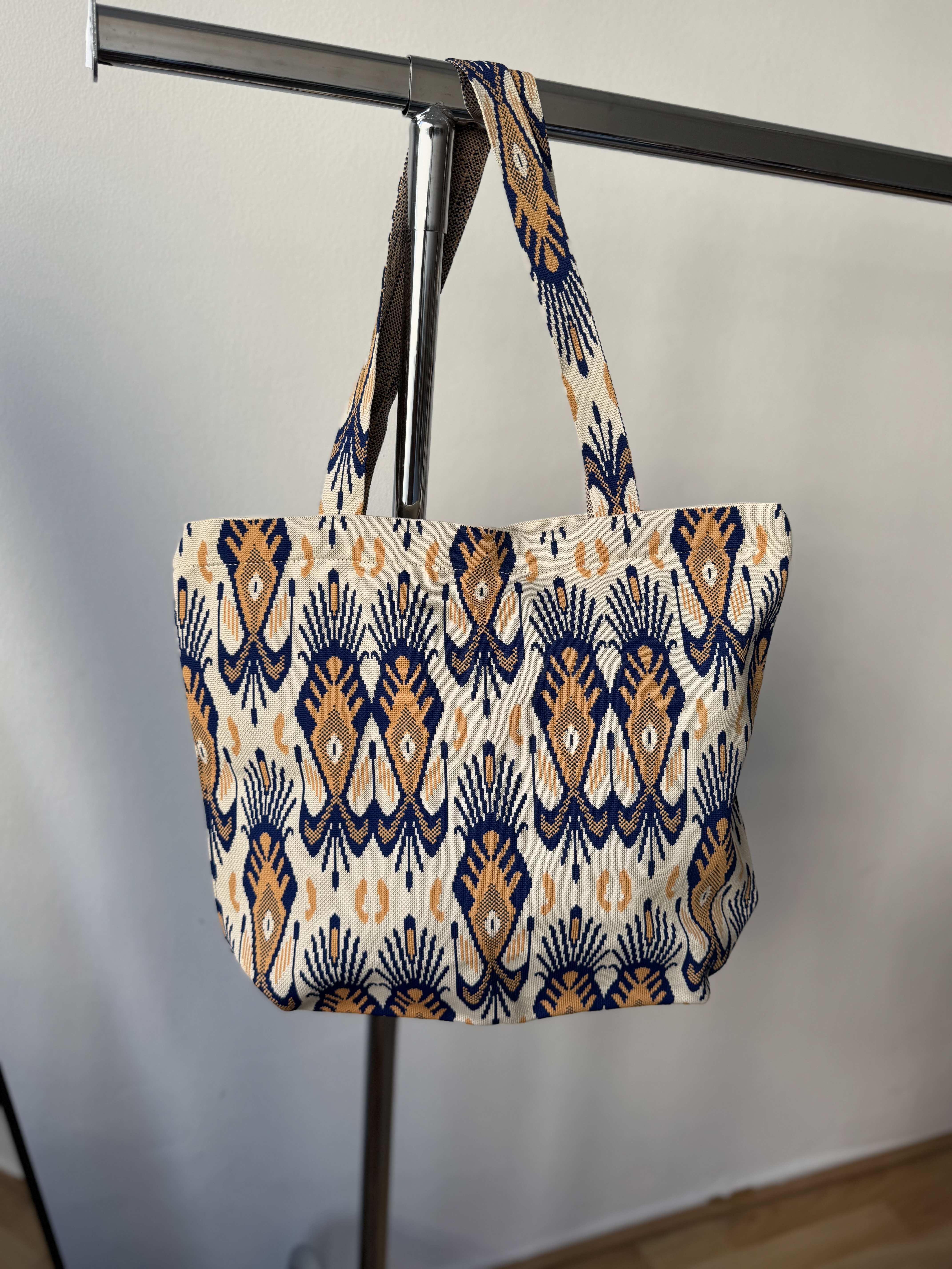 Beach bag in beige and blue