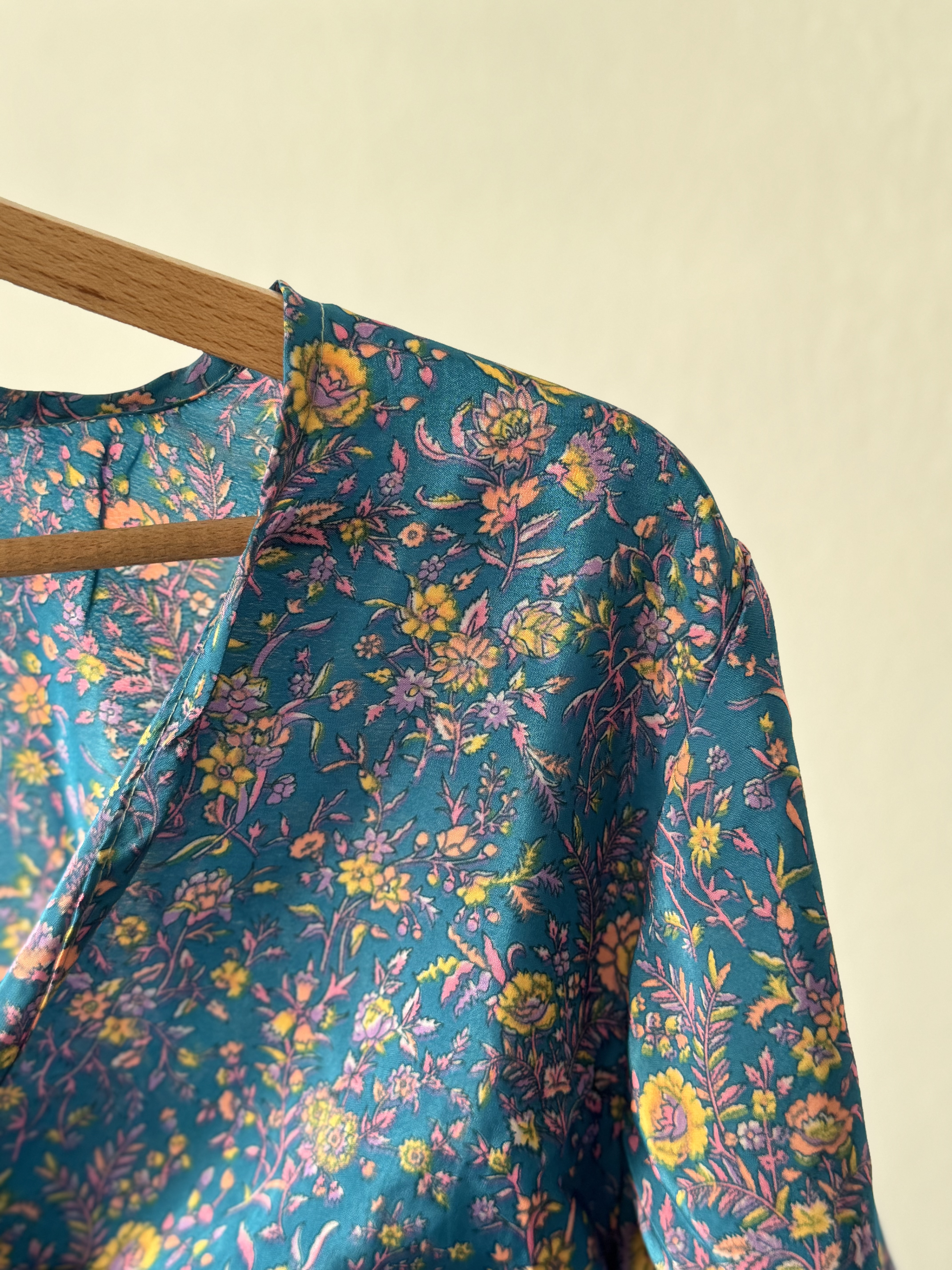 Floral Wrap Shirt in petrol