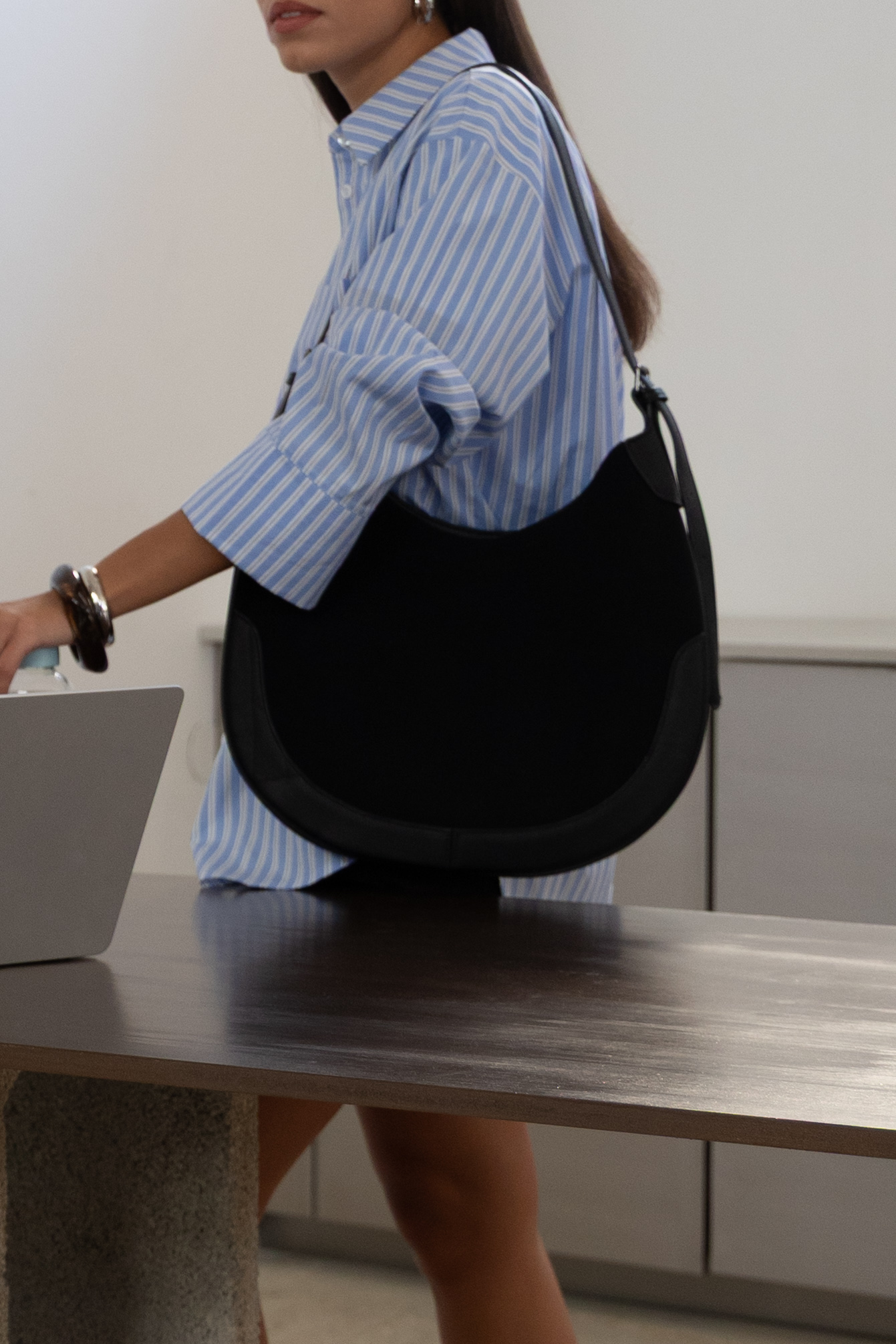 Saddle bag with vegan suede details