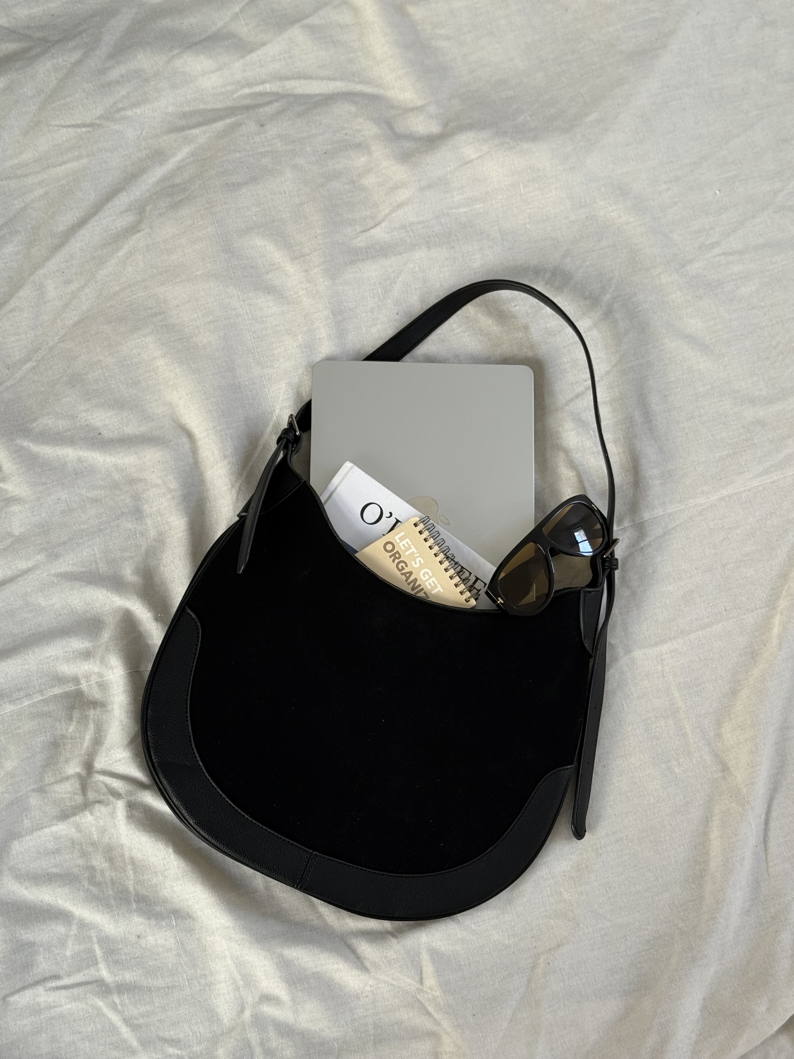 Saddle bag with vegan suede details in black