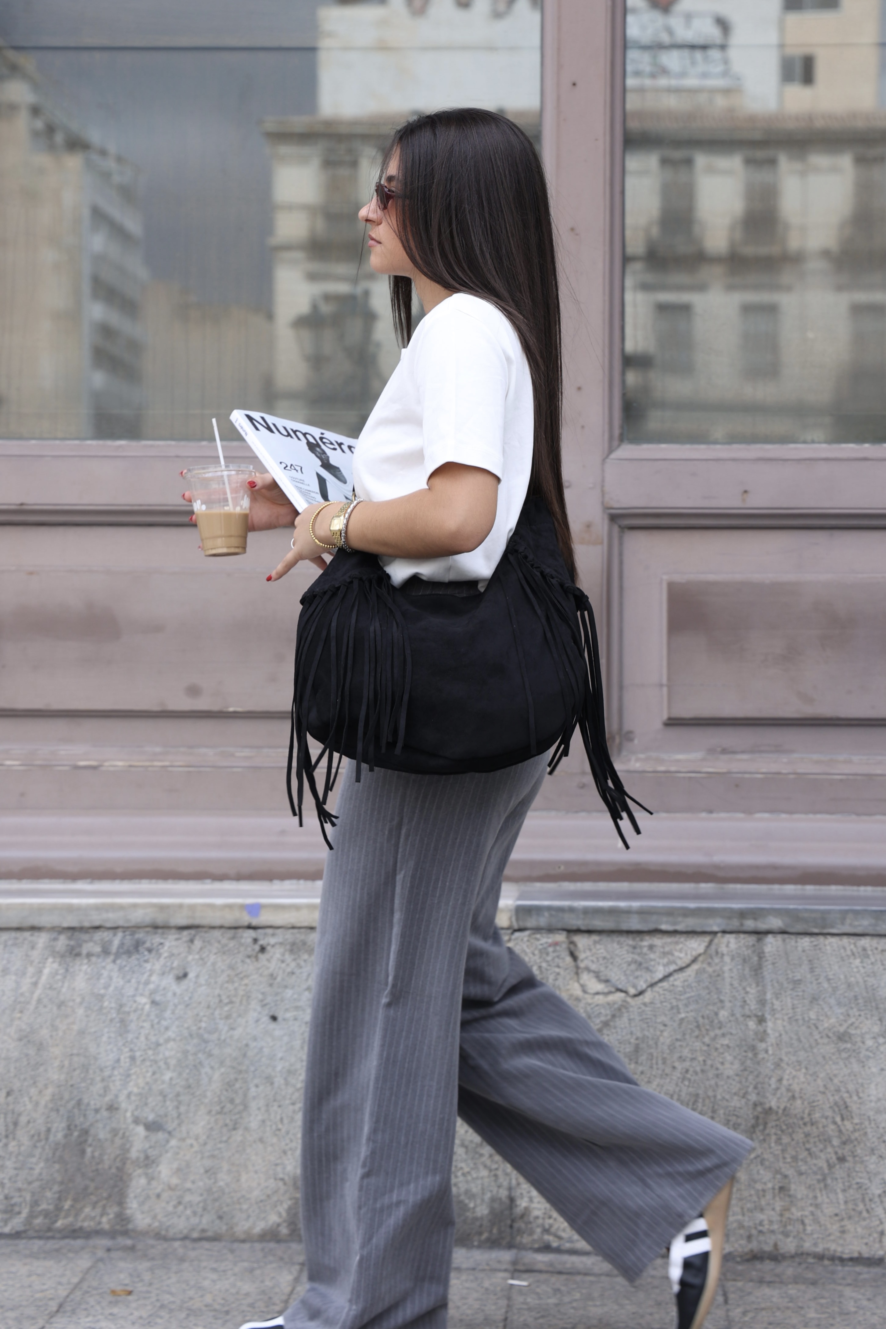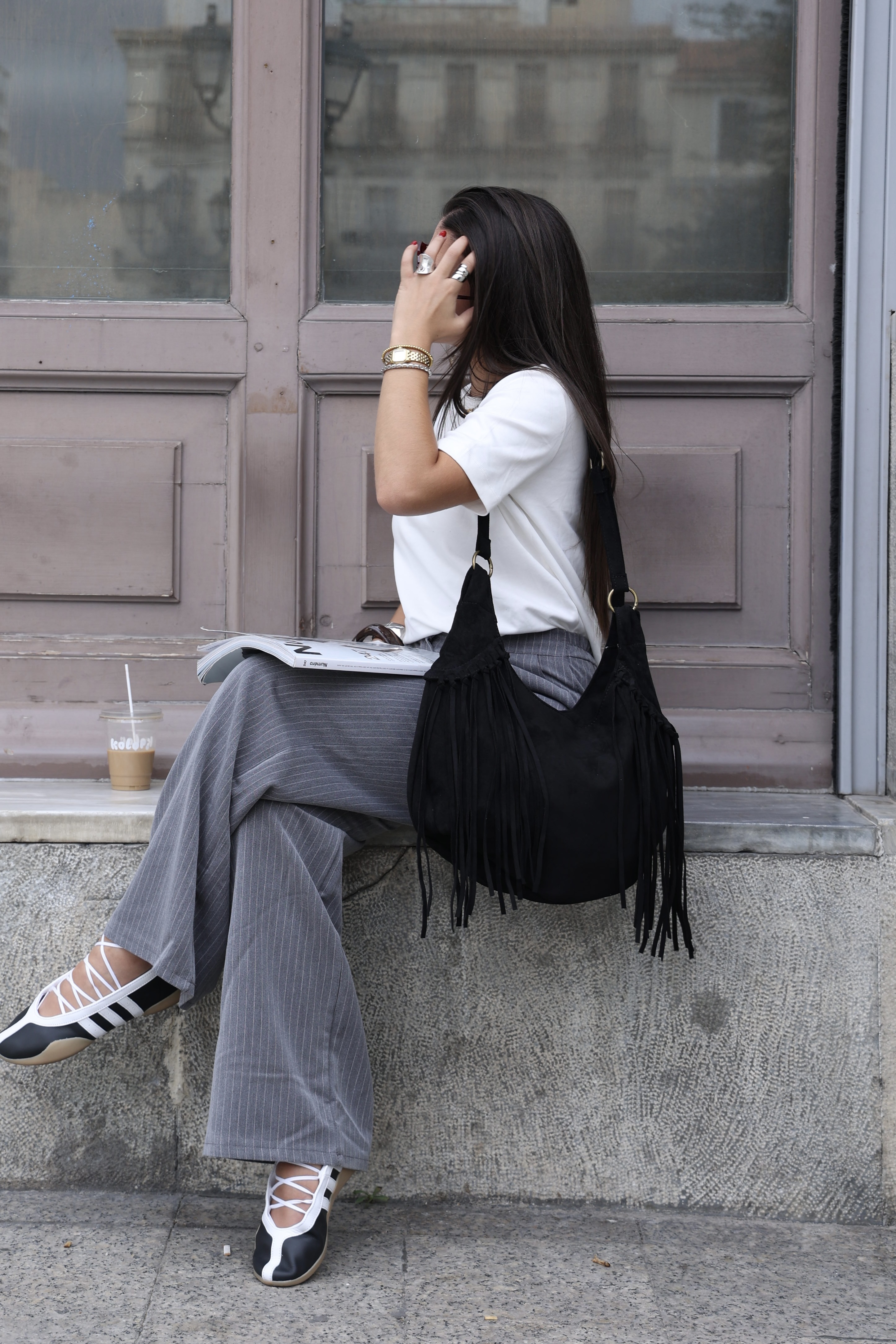 Vegan suede saddle bag with fringe