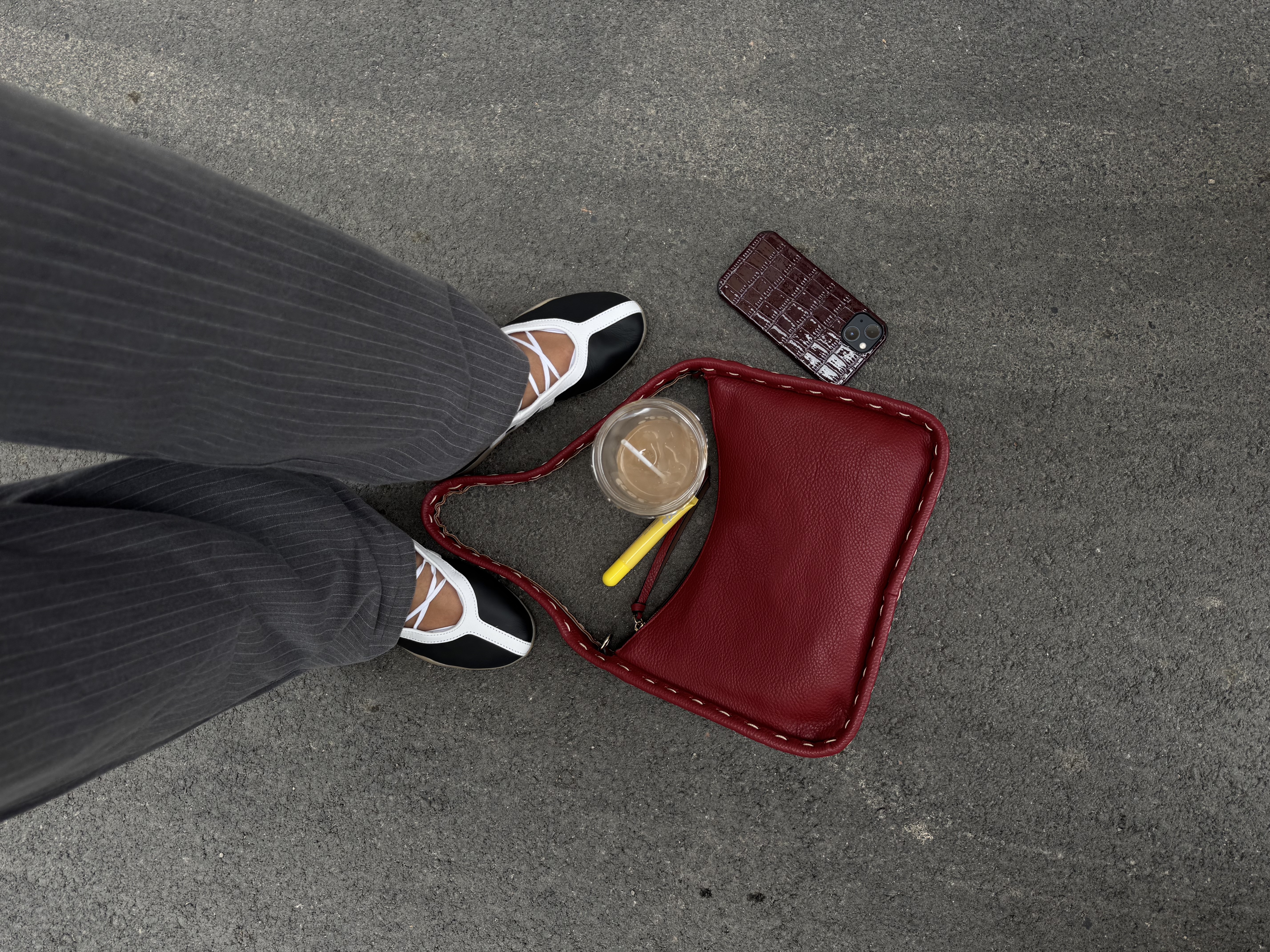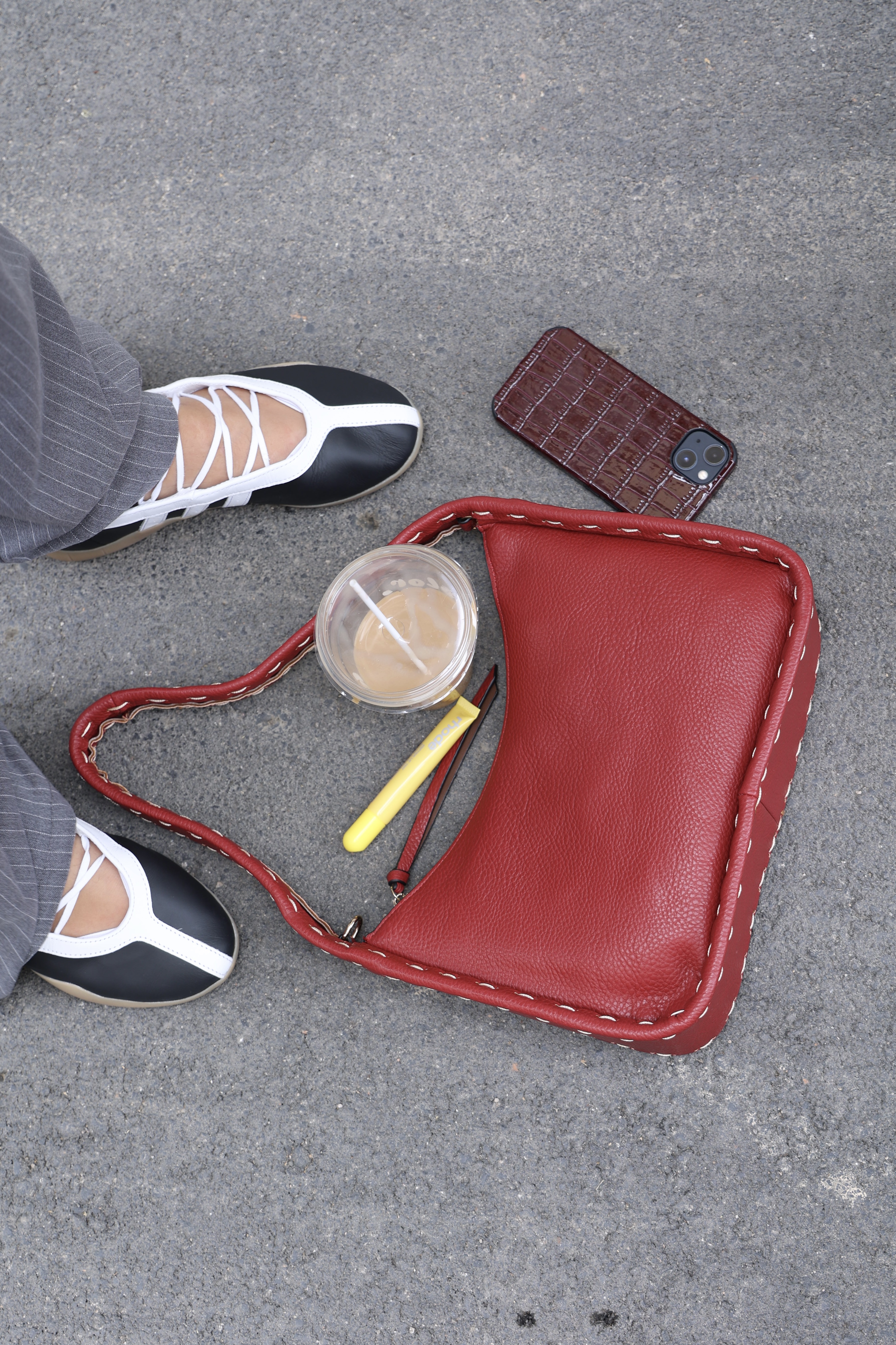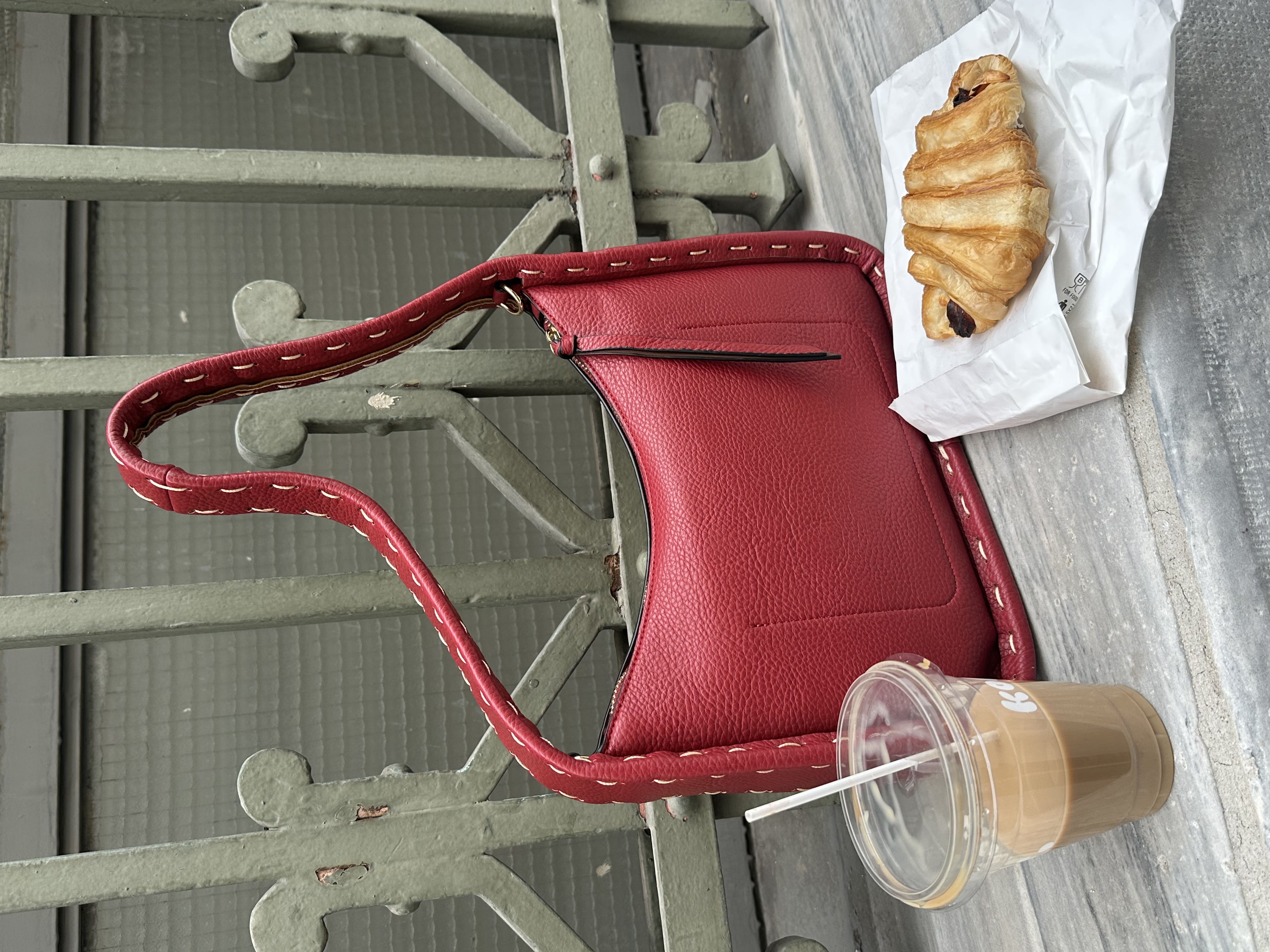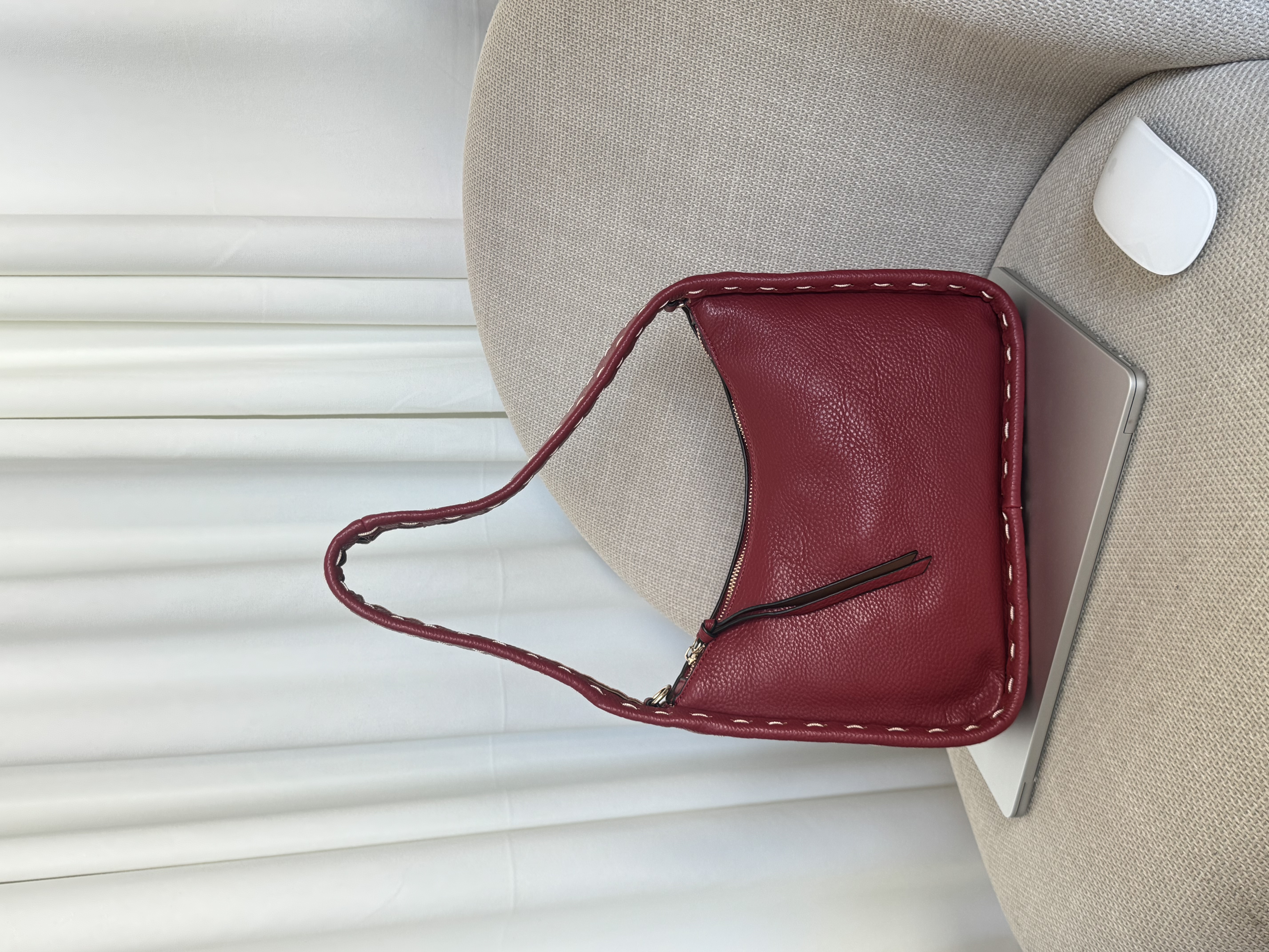 Stitched shoulder bag in wine