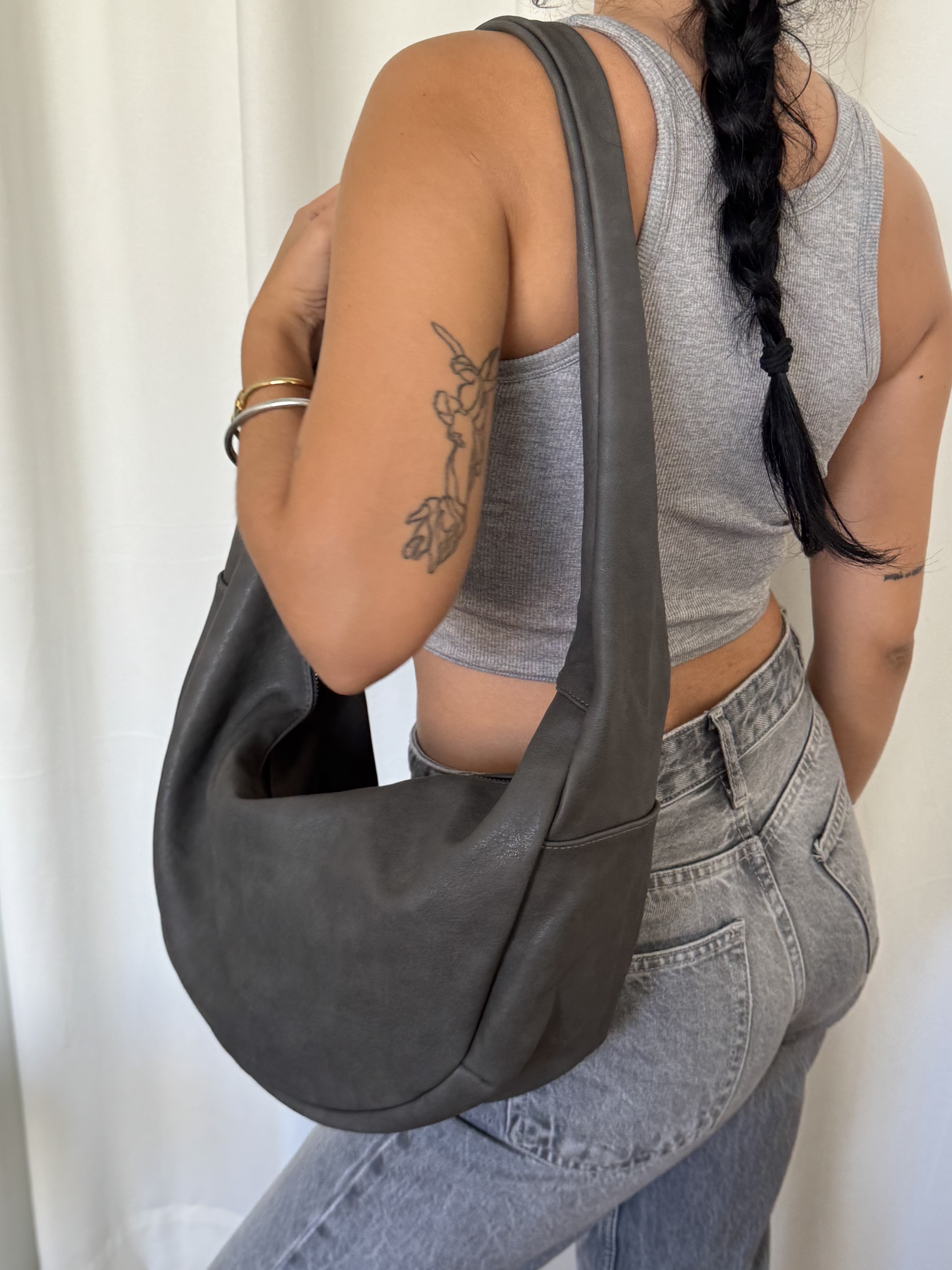 Casual saddle bag with buckle in iron grey