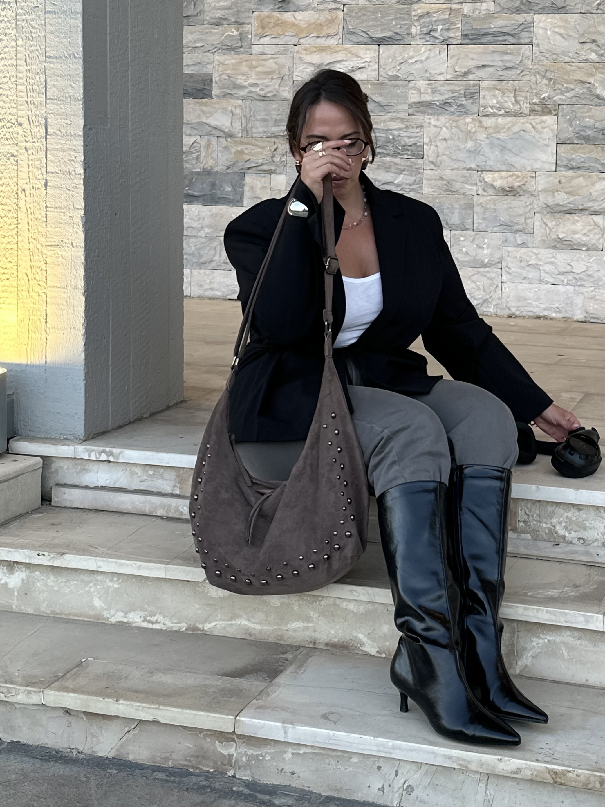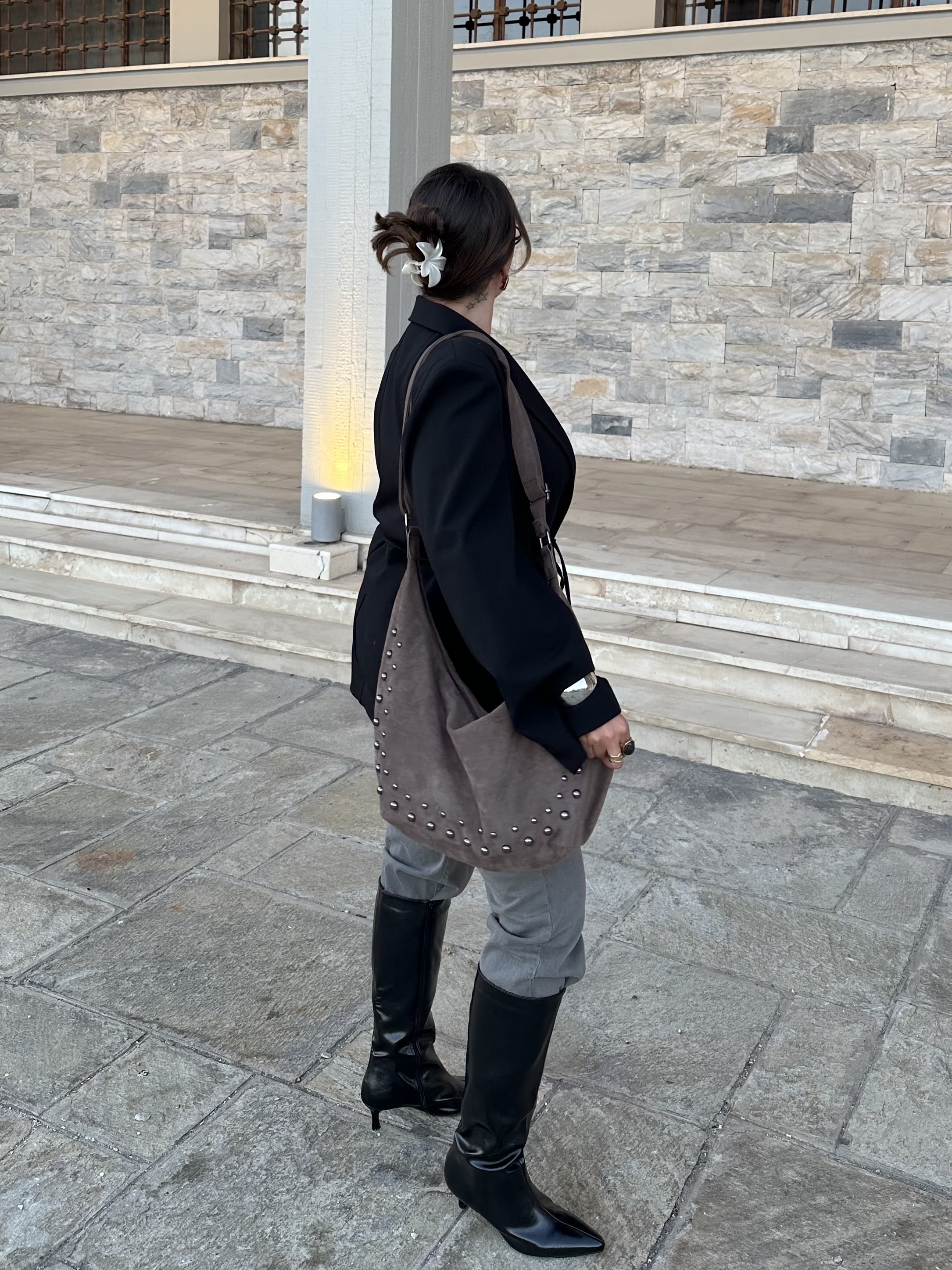 Vegan suede saddle bag with studs