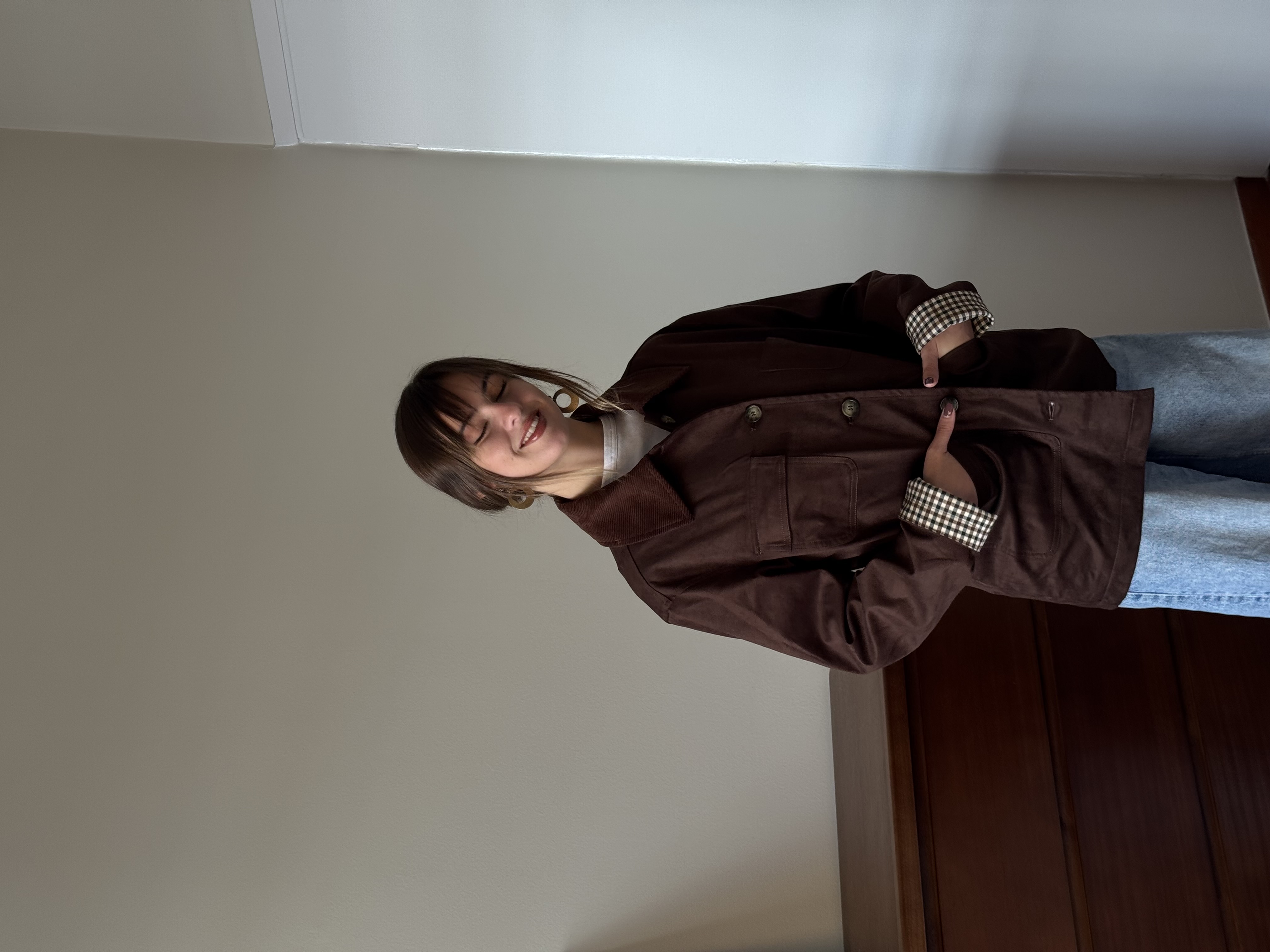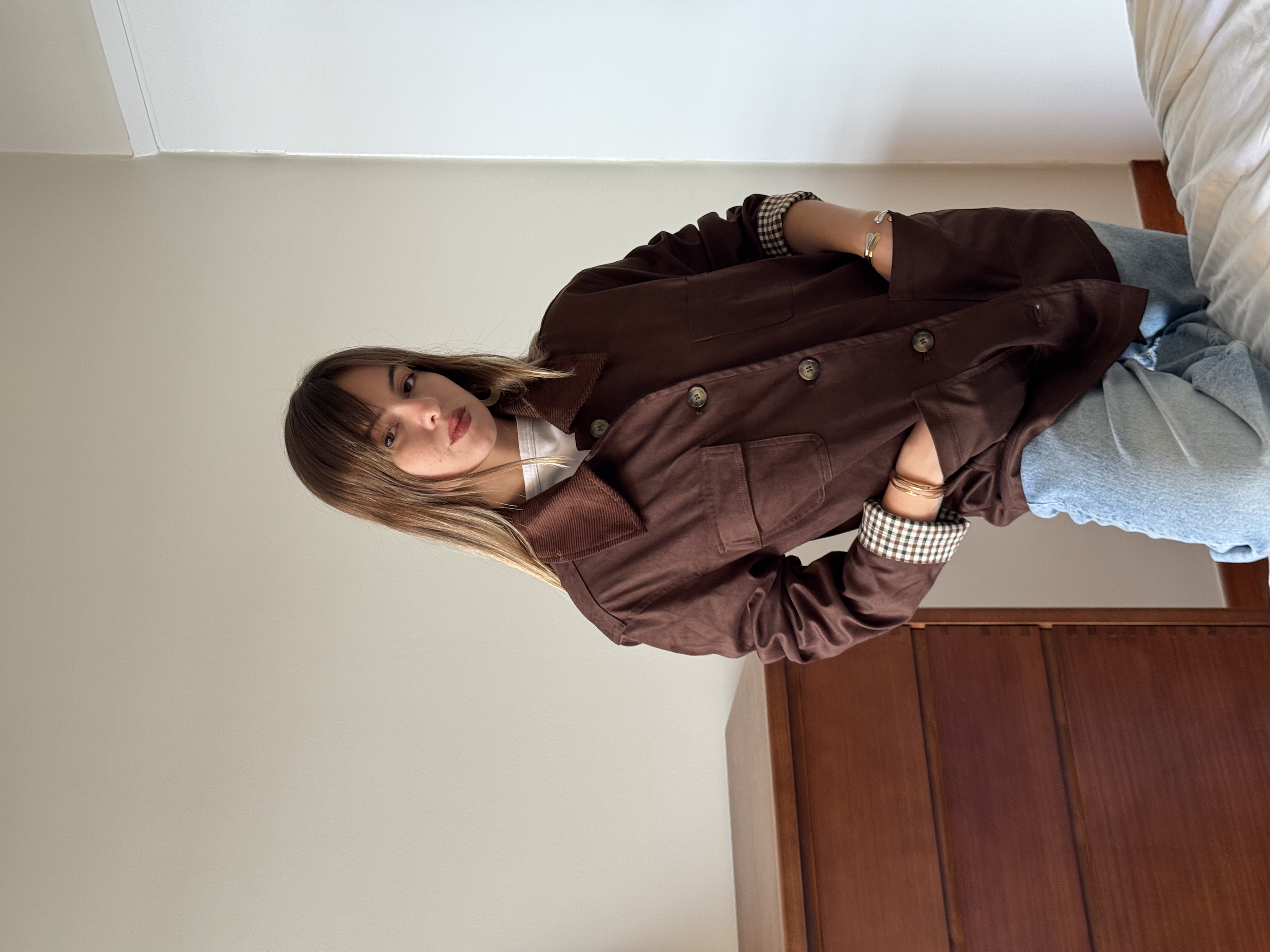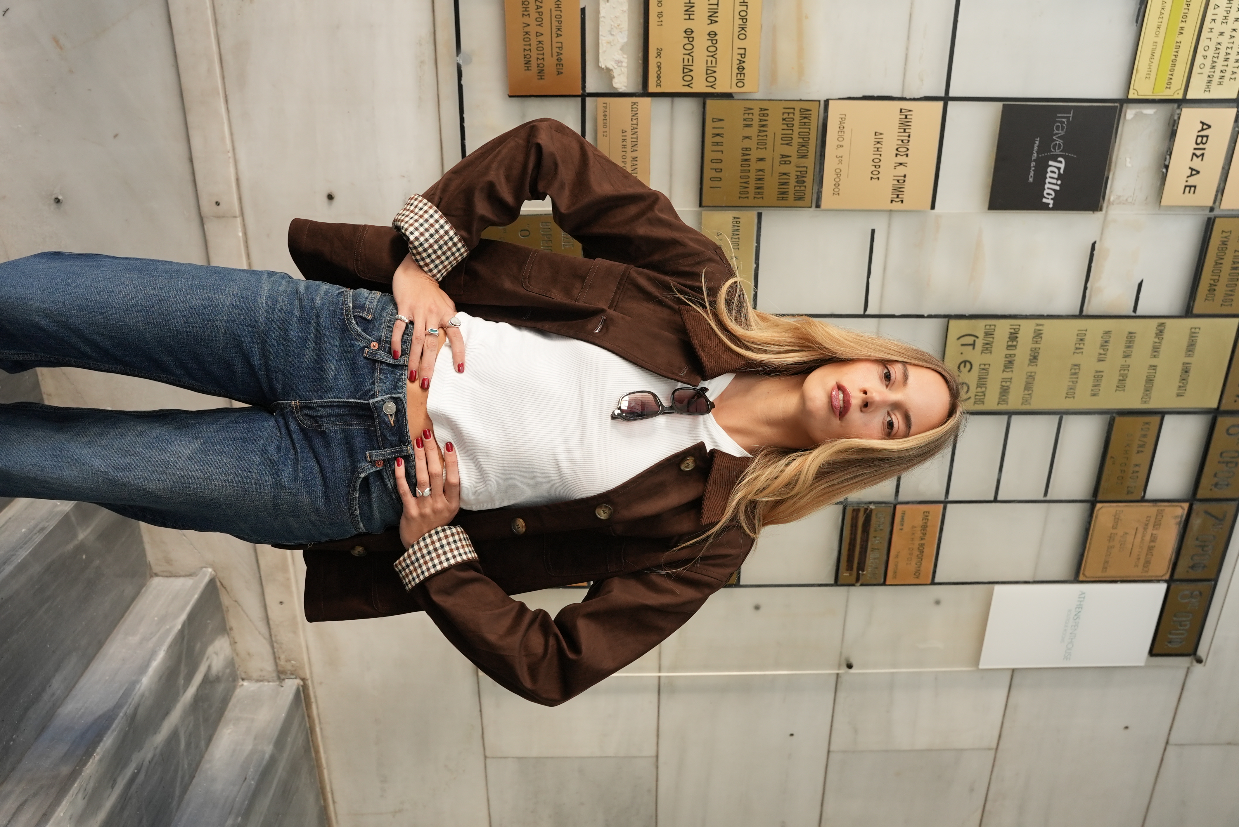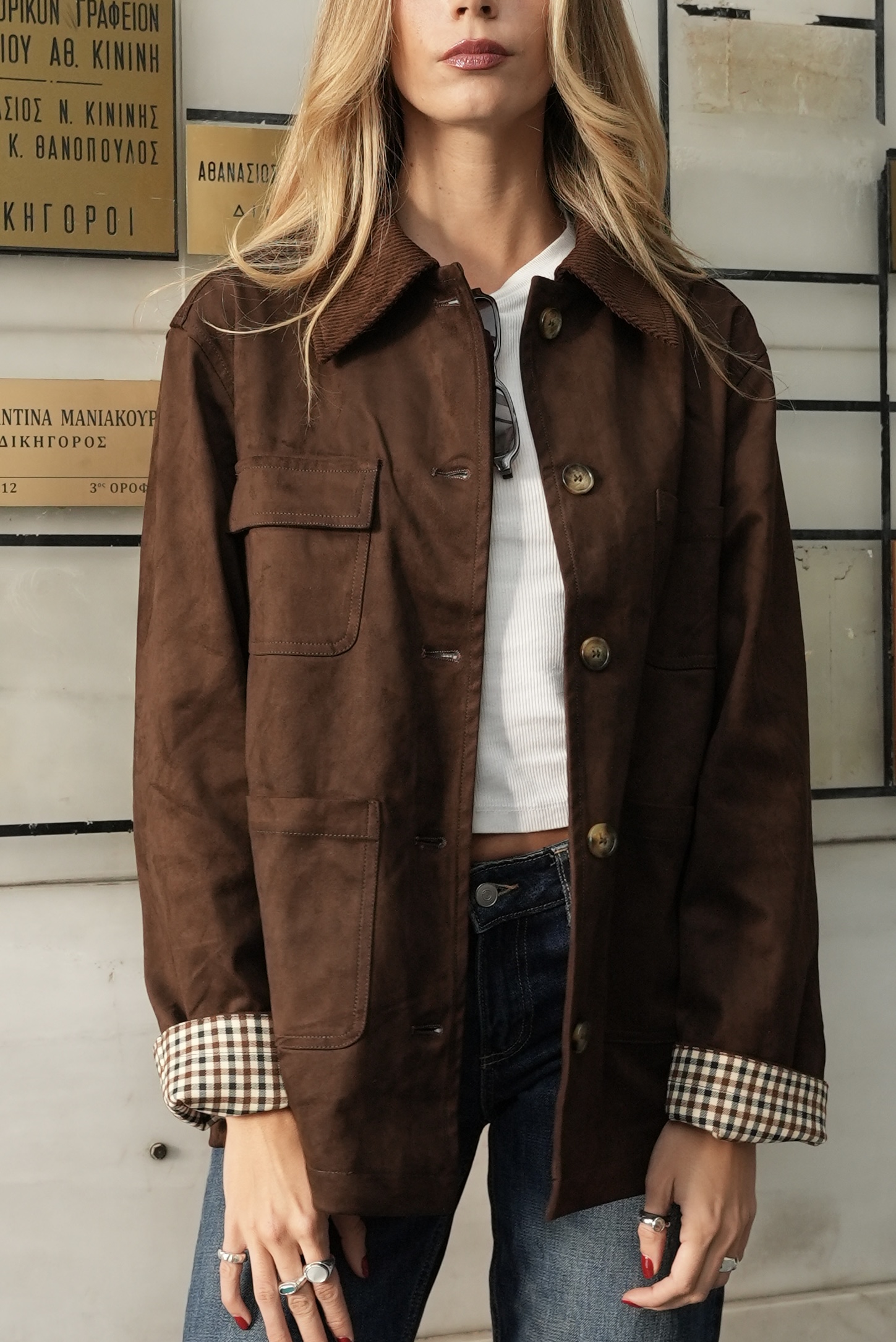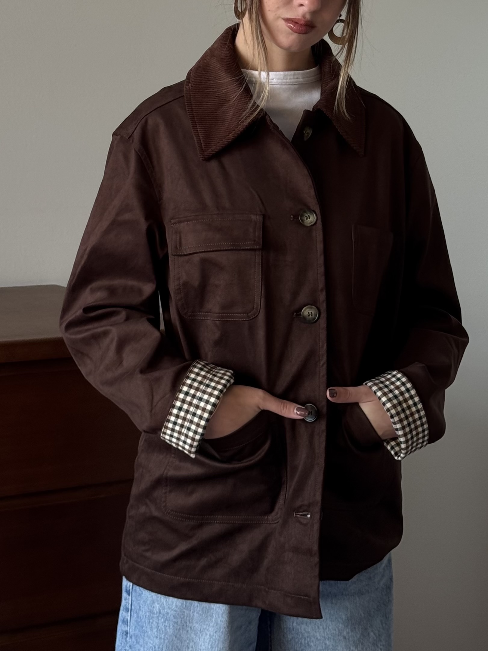 Casual jacket with cotlait collar in chocolate