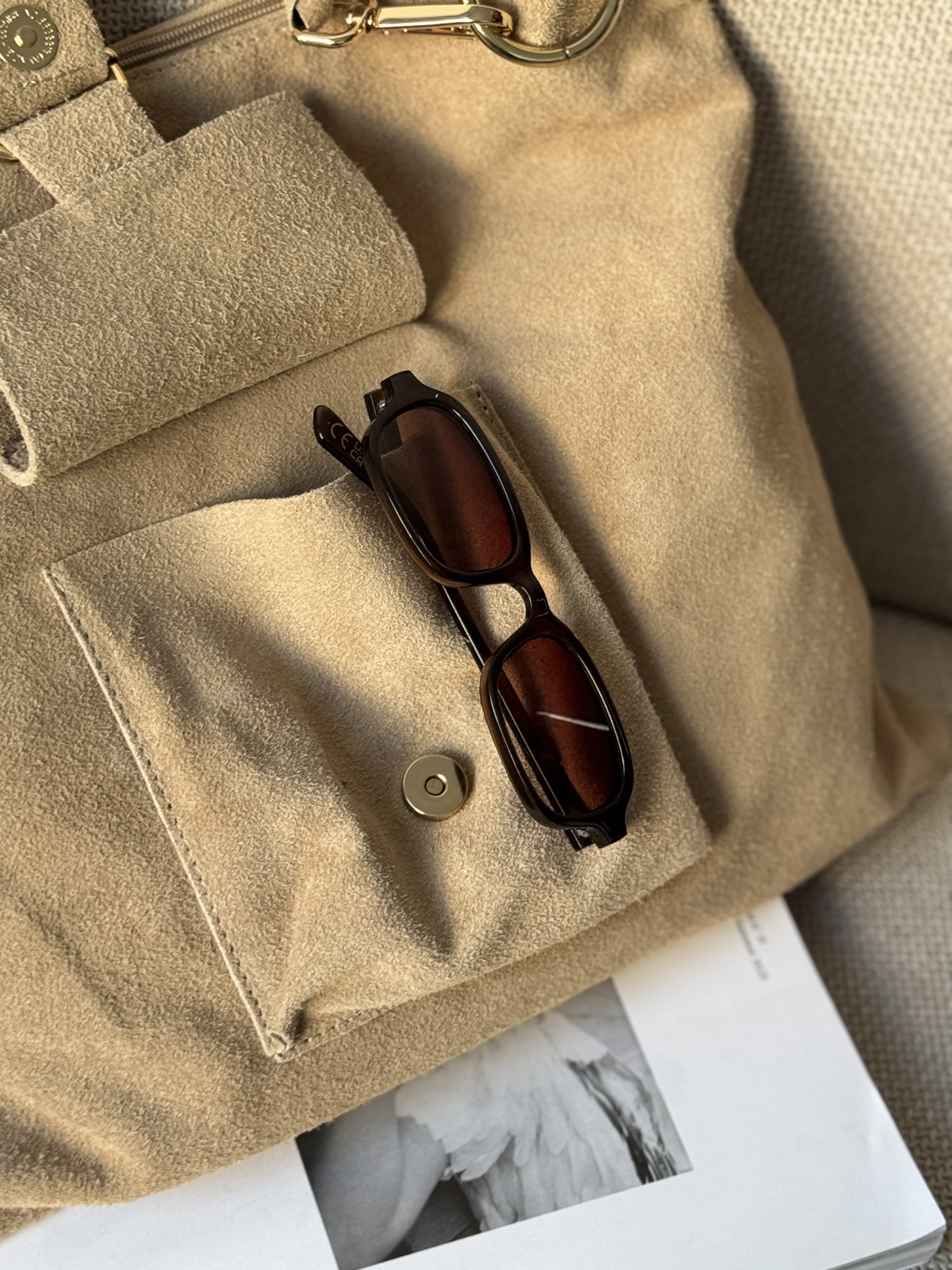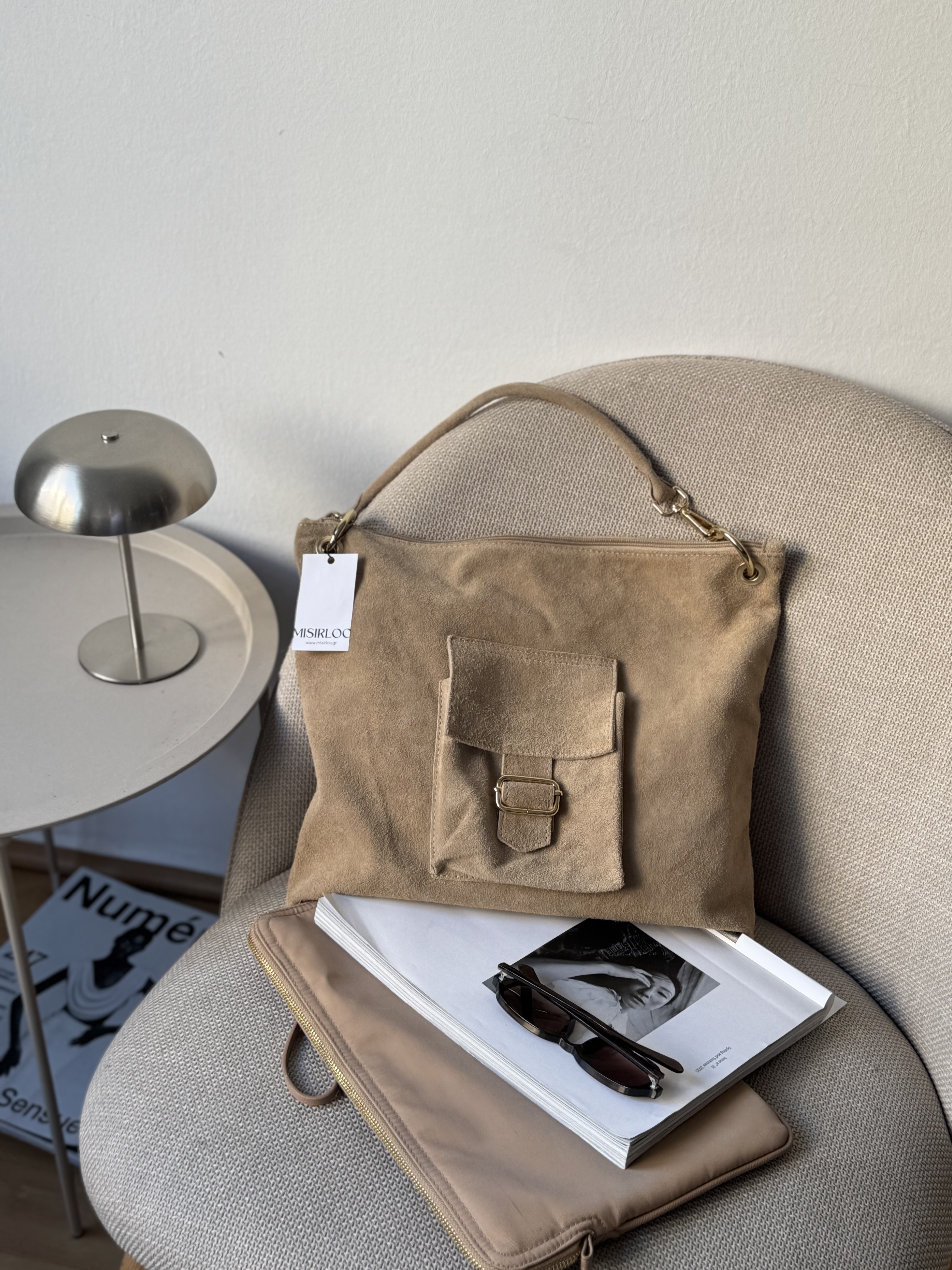 Suede laptop bag with details in beige