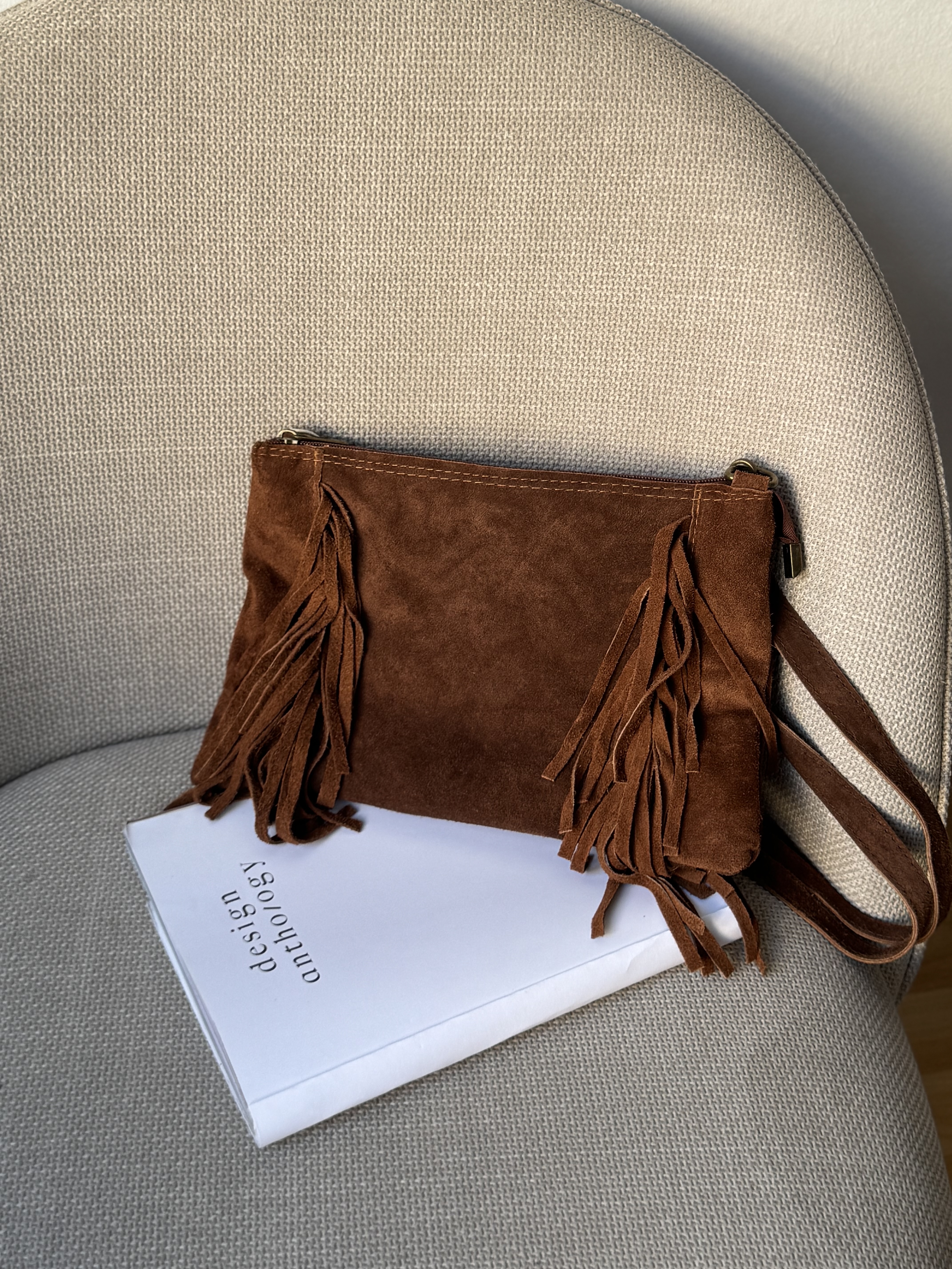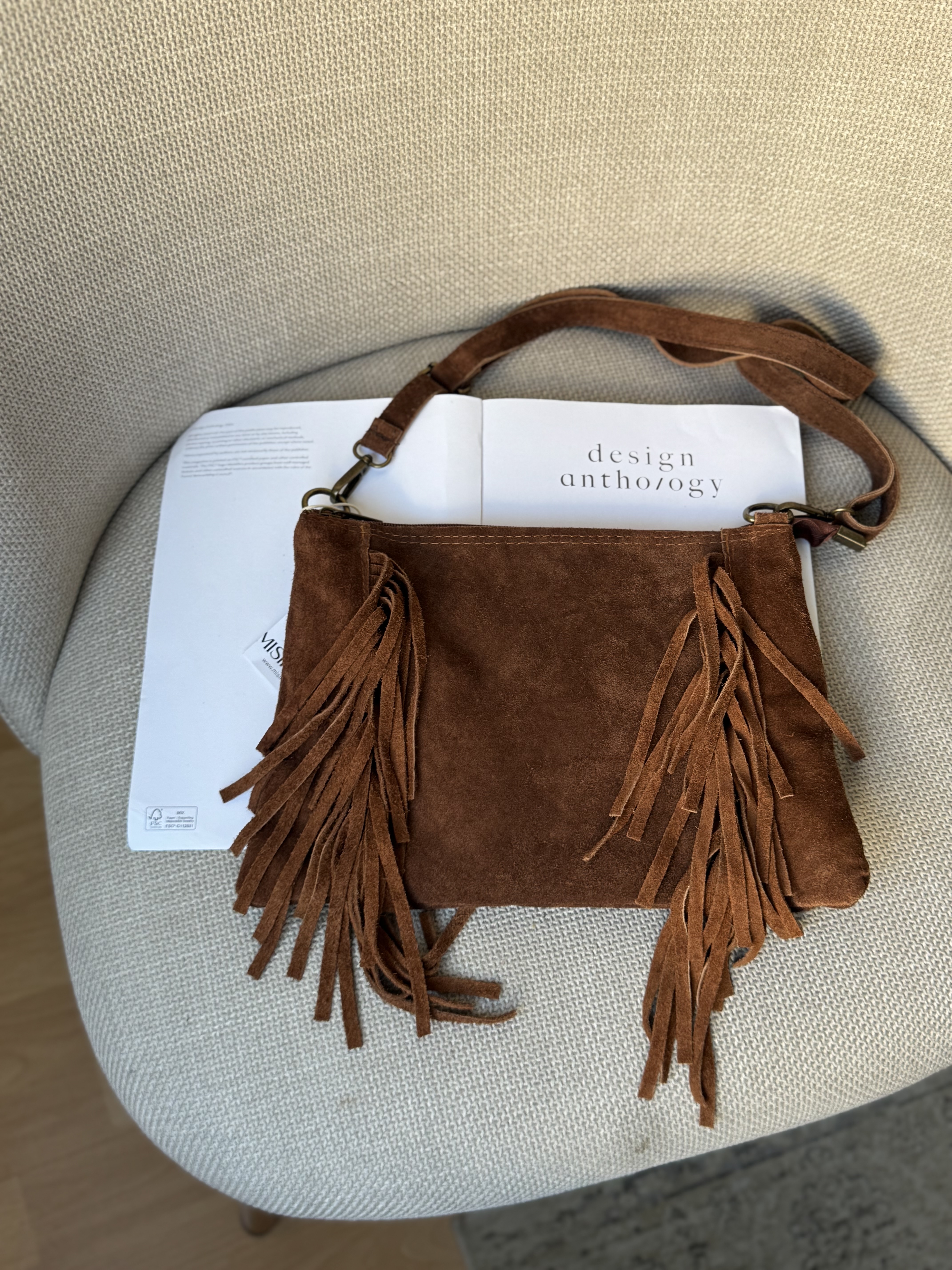 Suede crossbody bag with fringes