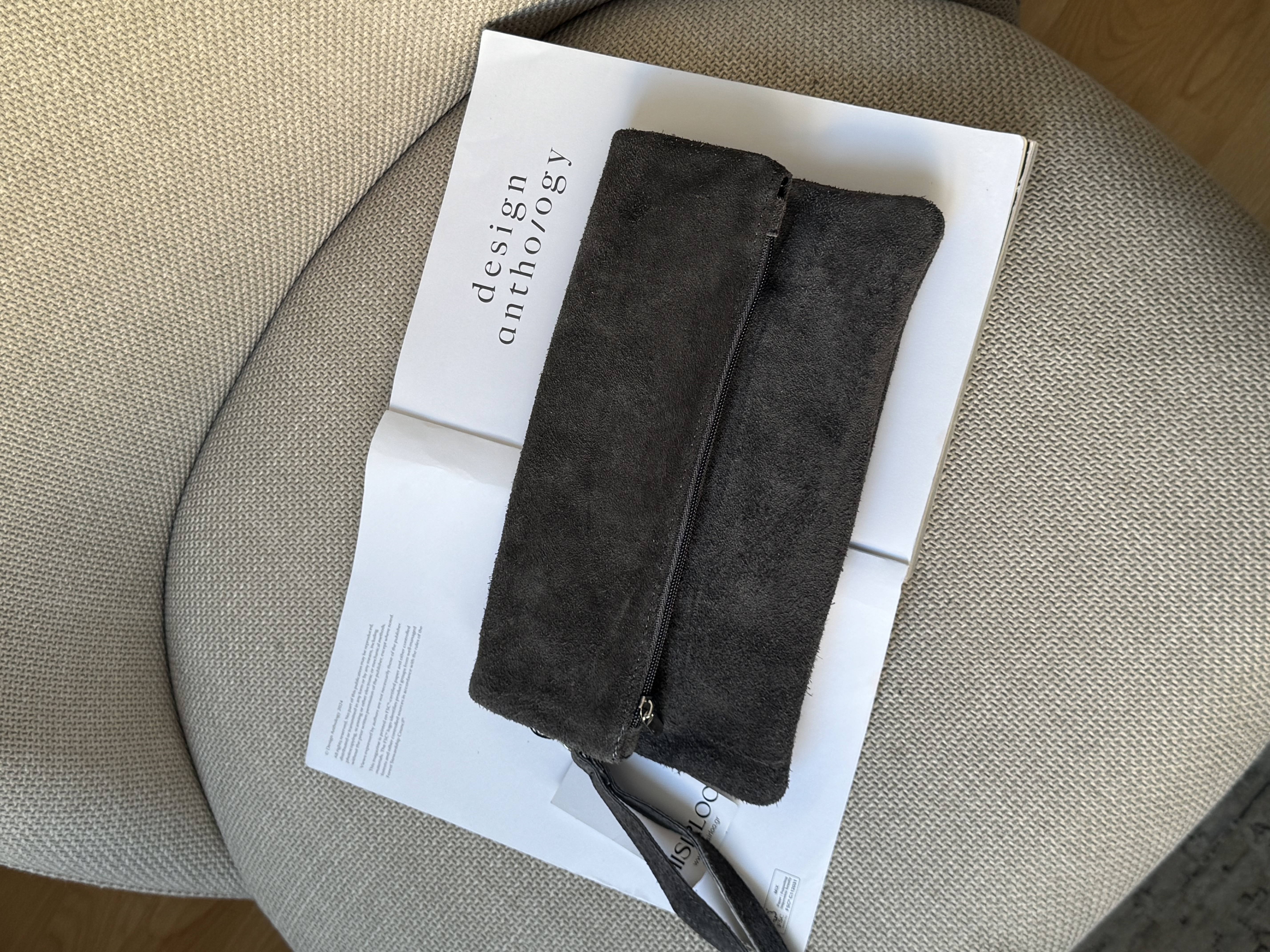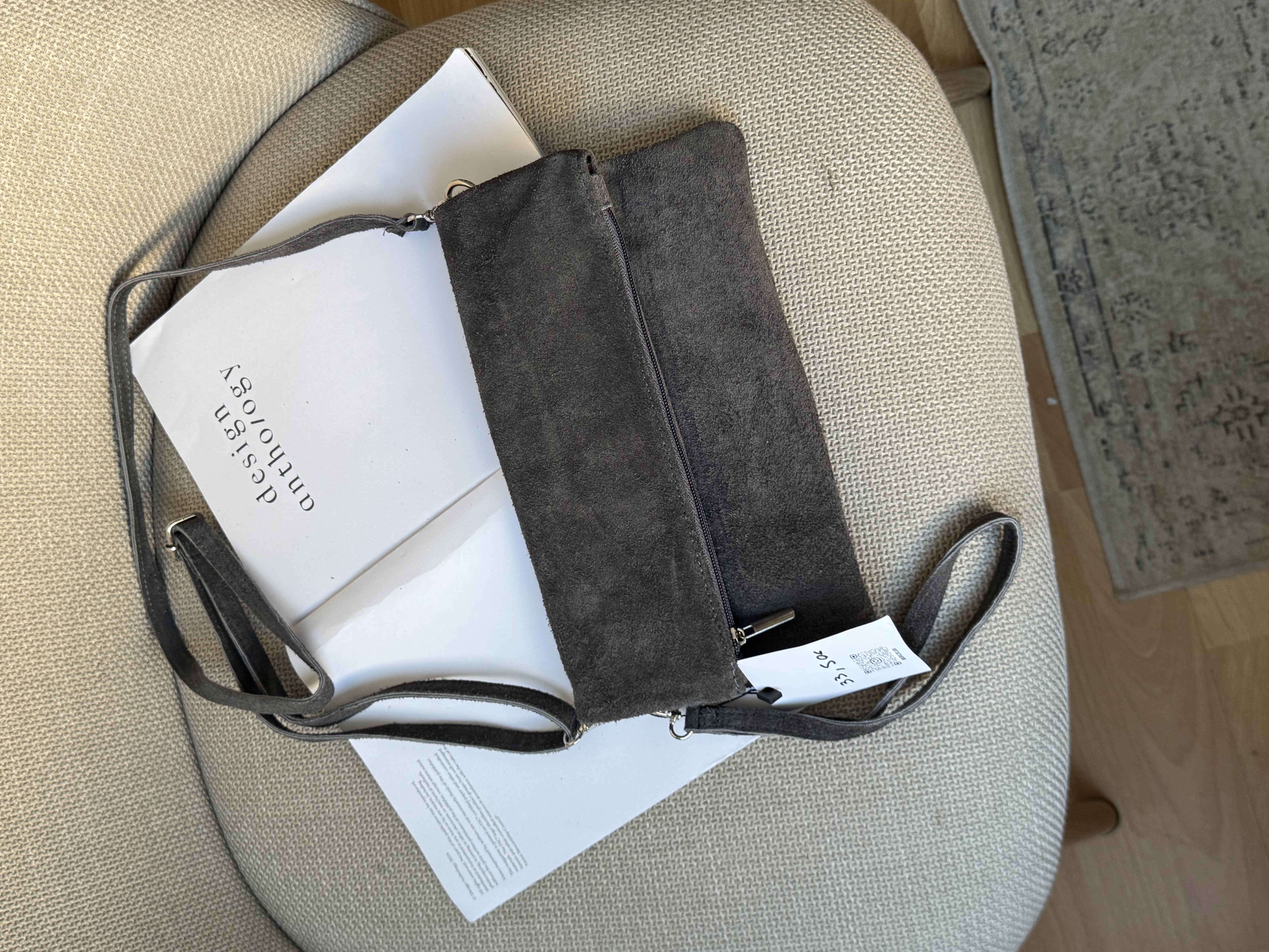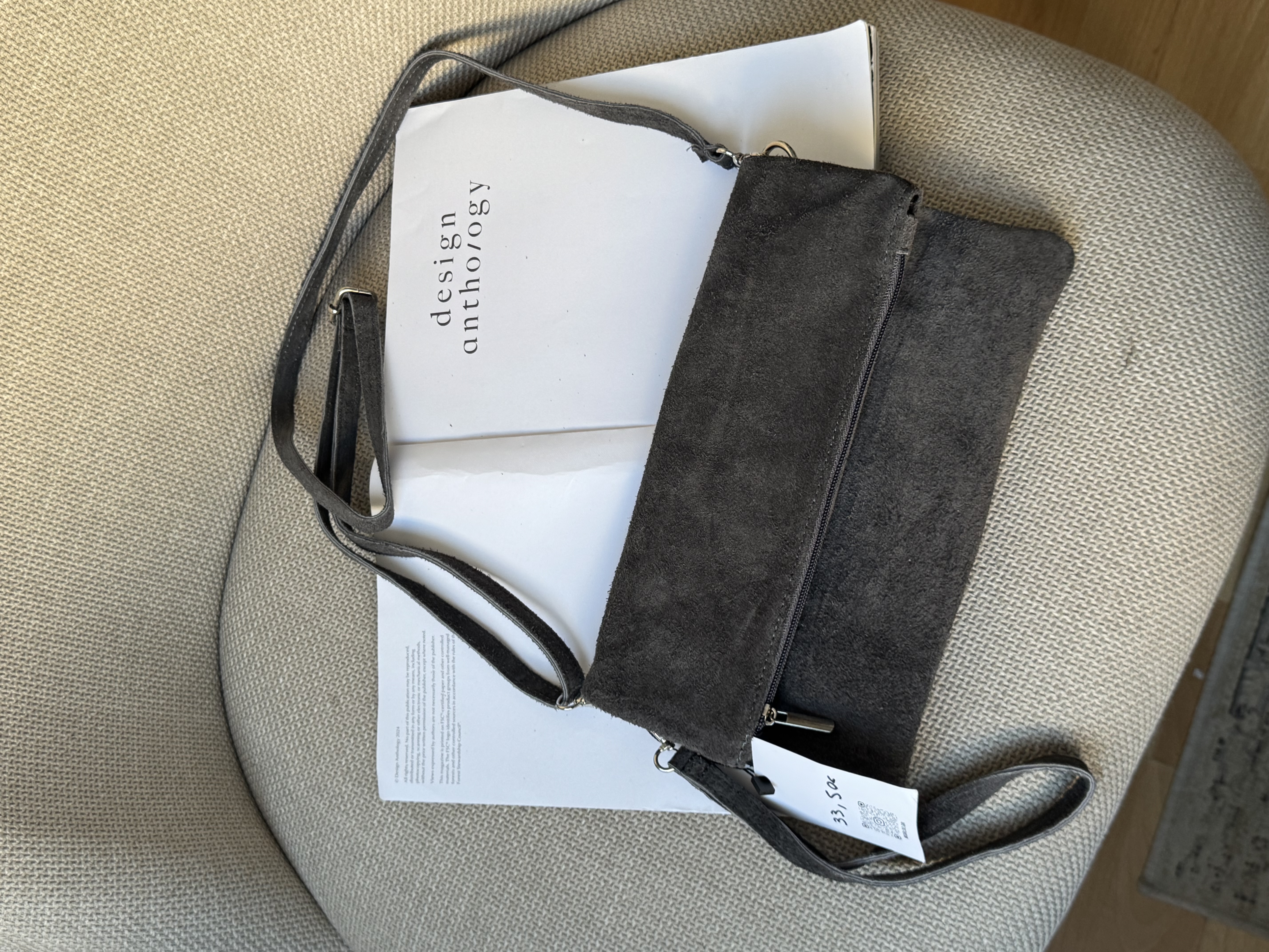 Suede handbag with adjustable strap in grey