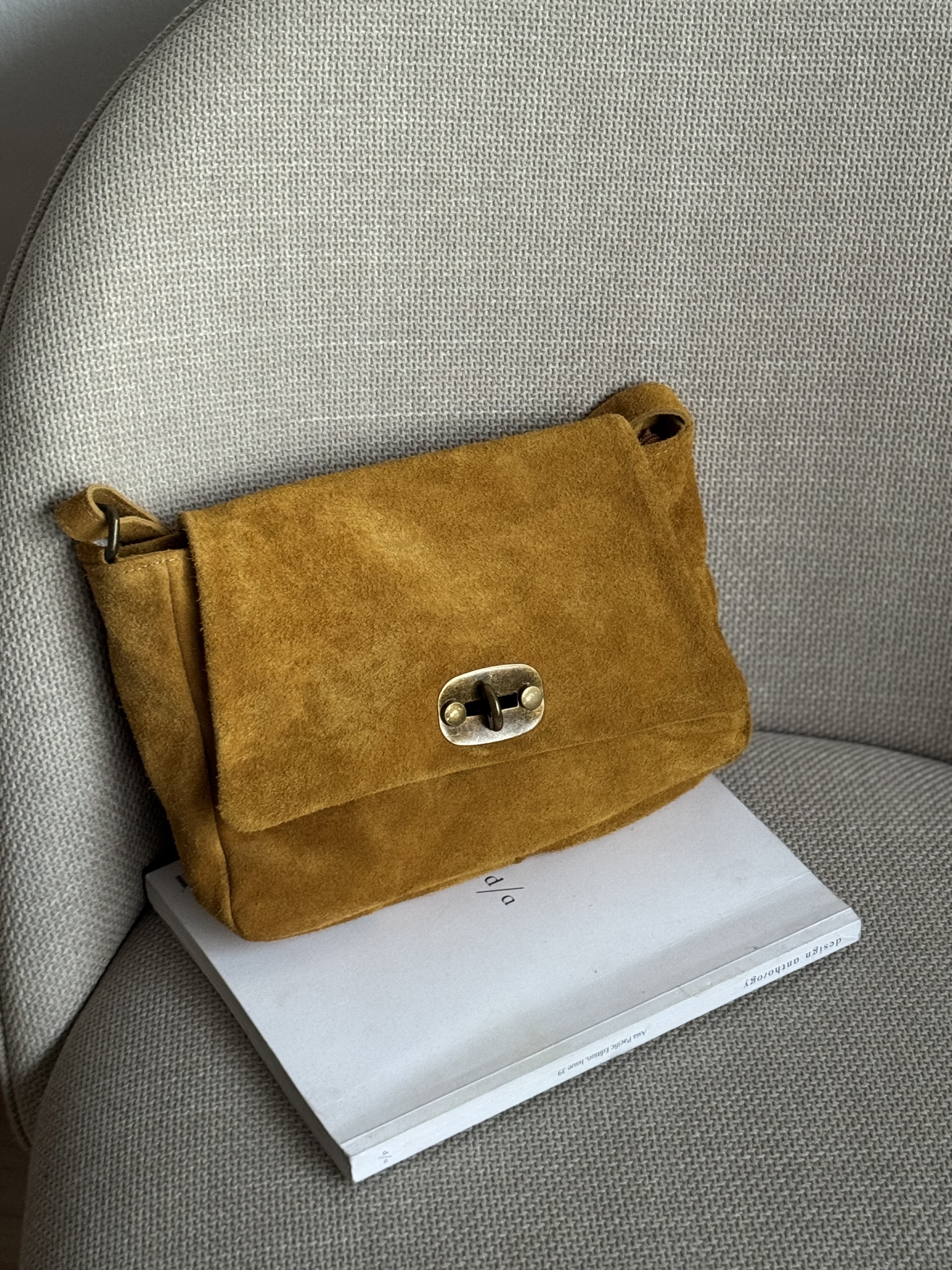 Suede Shoulder Bag with clip