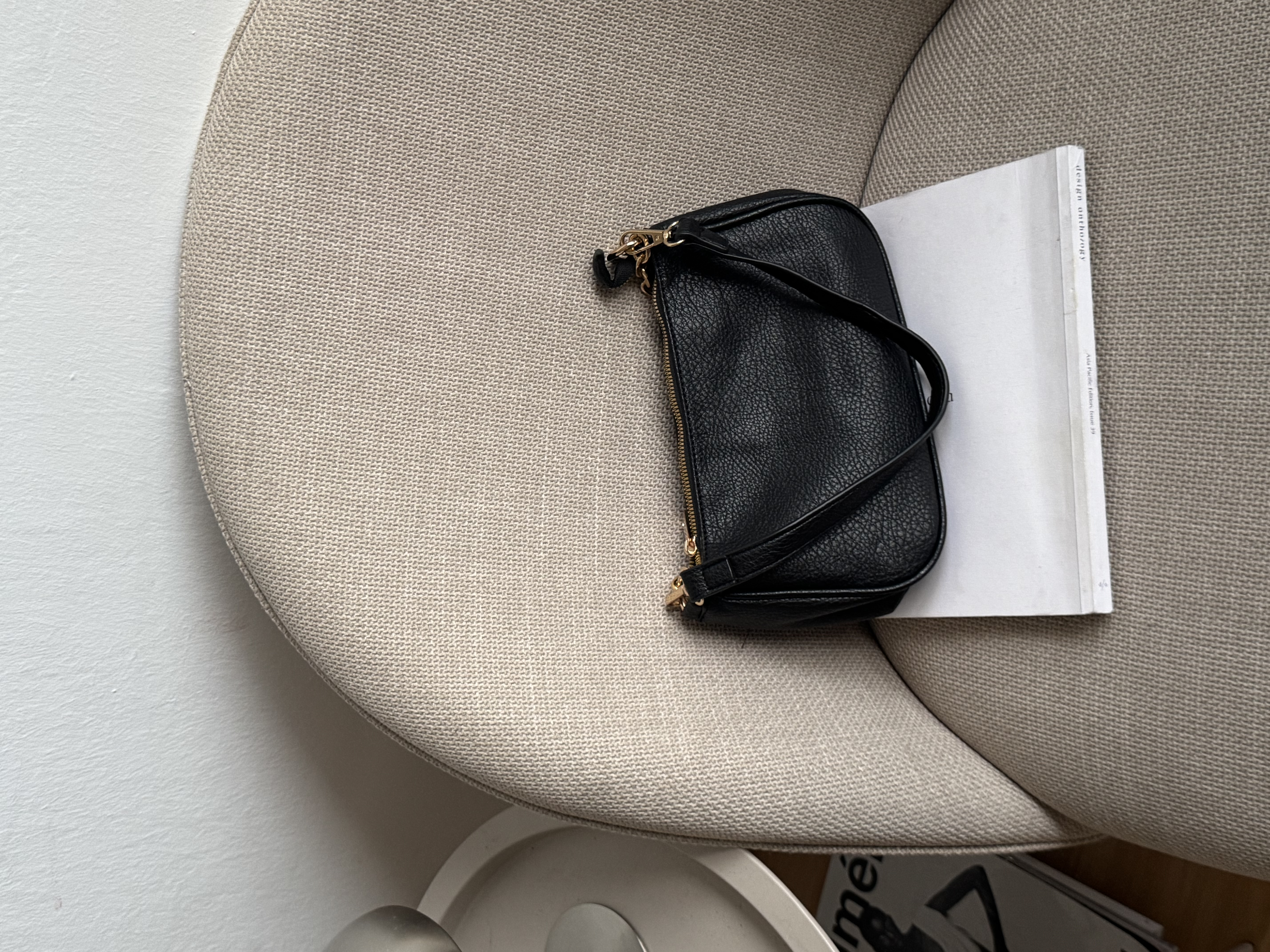 Vegan Shoulder bag with gold chain in black
