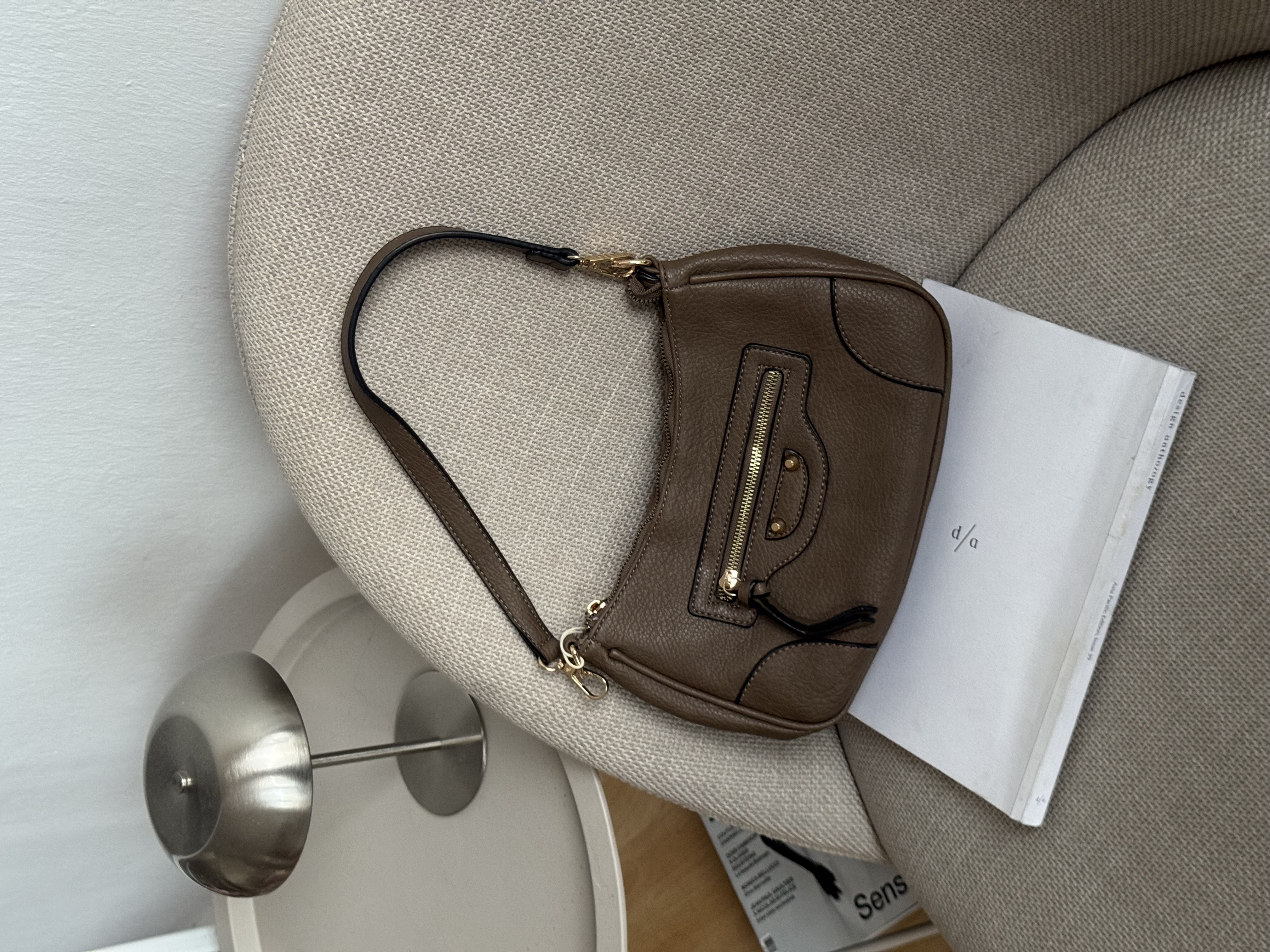 Hobo bag with gold details in taupe