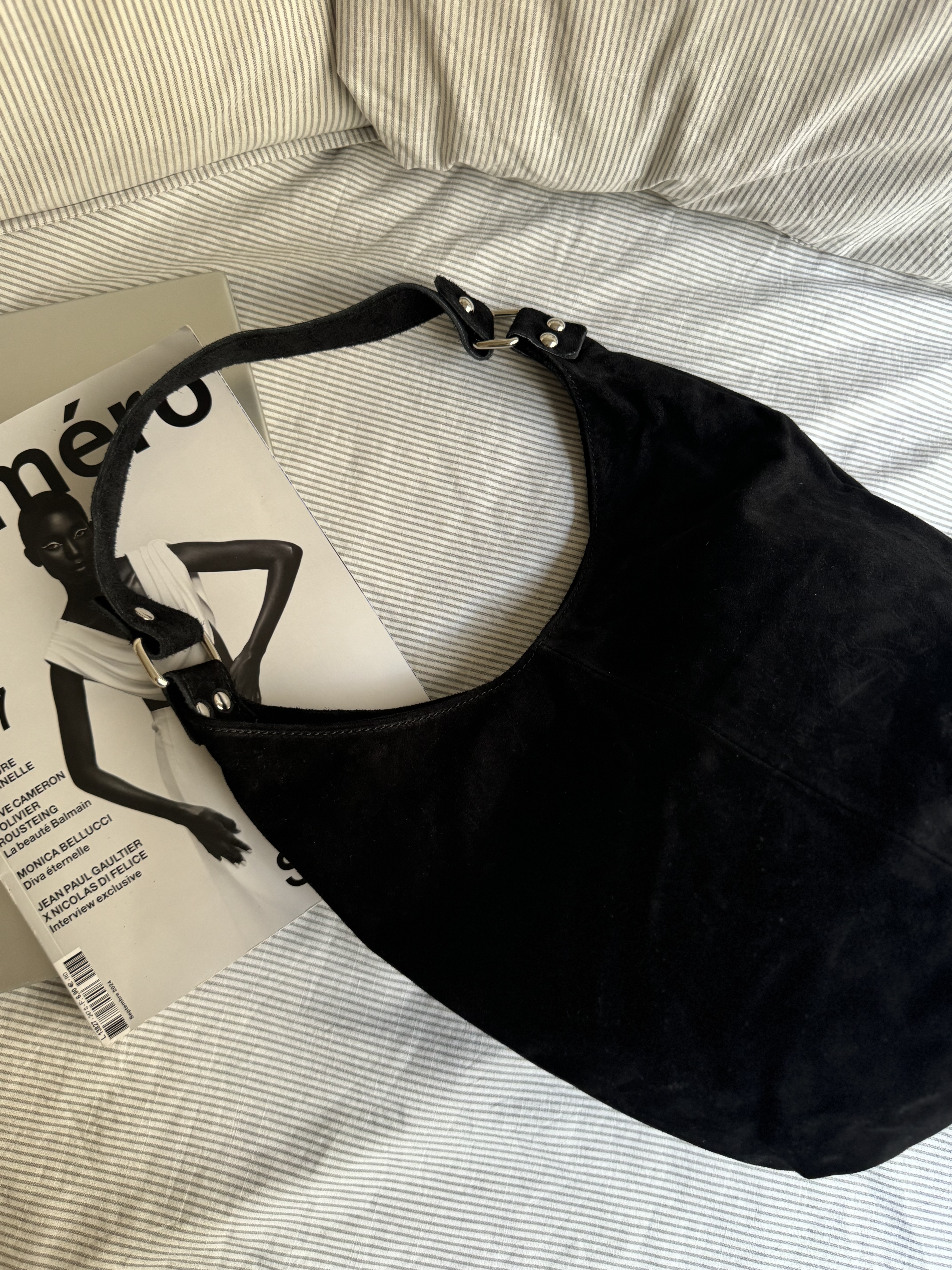 Suede Saddle bag with buckle in black