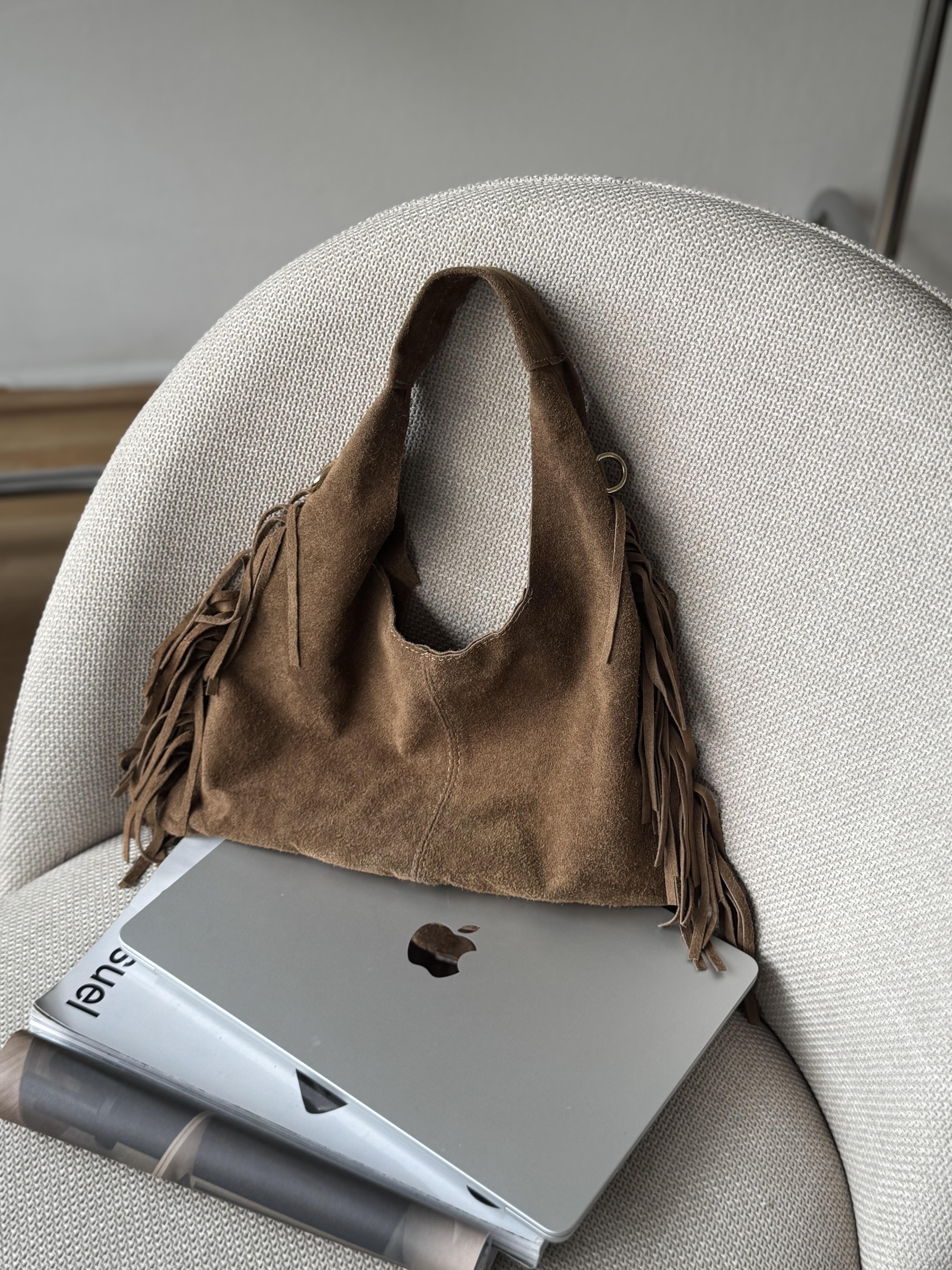 Suede urban bag with fringes