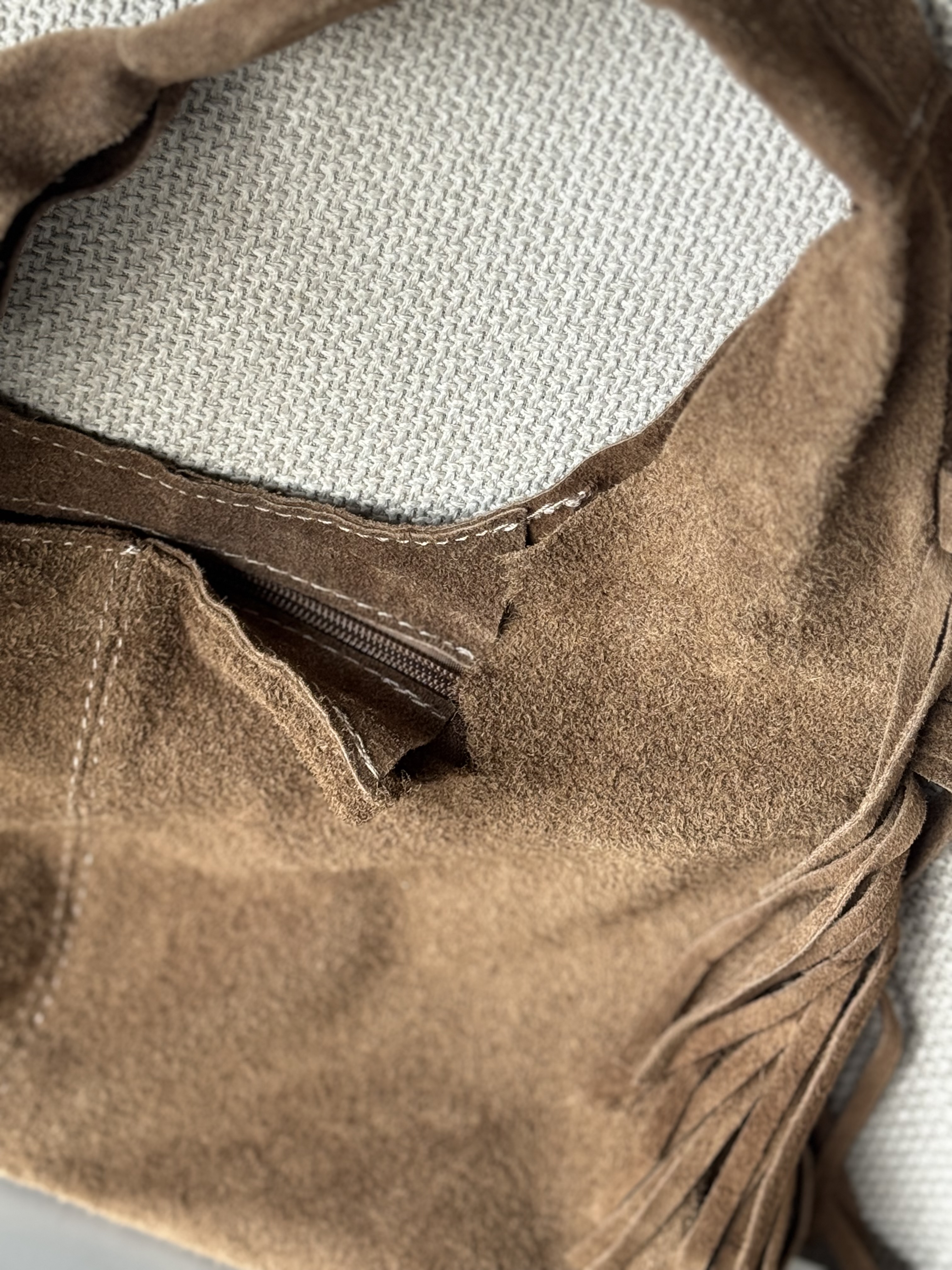 IMPERFECT Suede urban bag with fringes in taupe