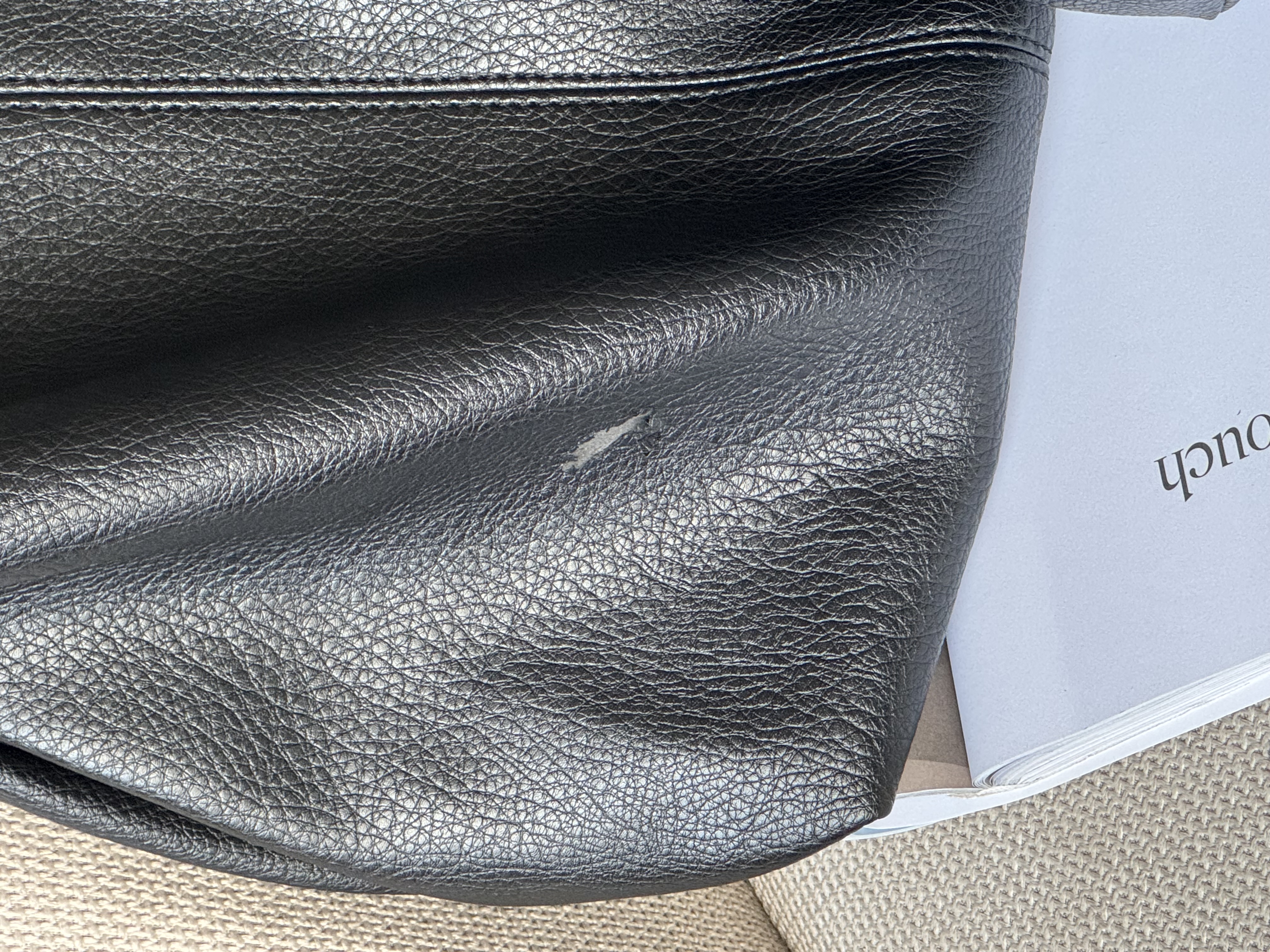 Η τσάντα παρουσιάζει ξεφτίσμα της δερματίνης σε ένα μικρό σημείο, χωρίς όμως να επηρεάζει τη χρήση ή τη δομή της. Κατά τα άλλα, το προϊόν είναι 100% λειτουργικό και δεν εμφανίζει καμία άλλη φθορά.
