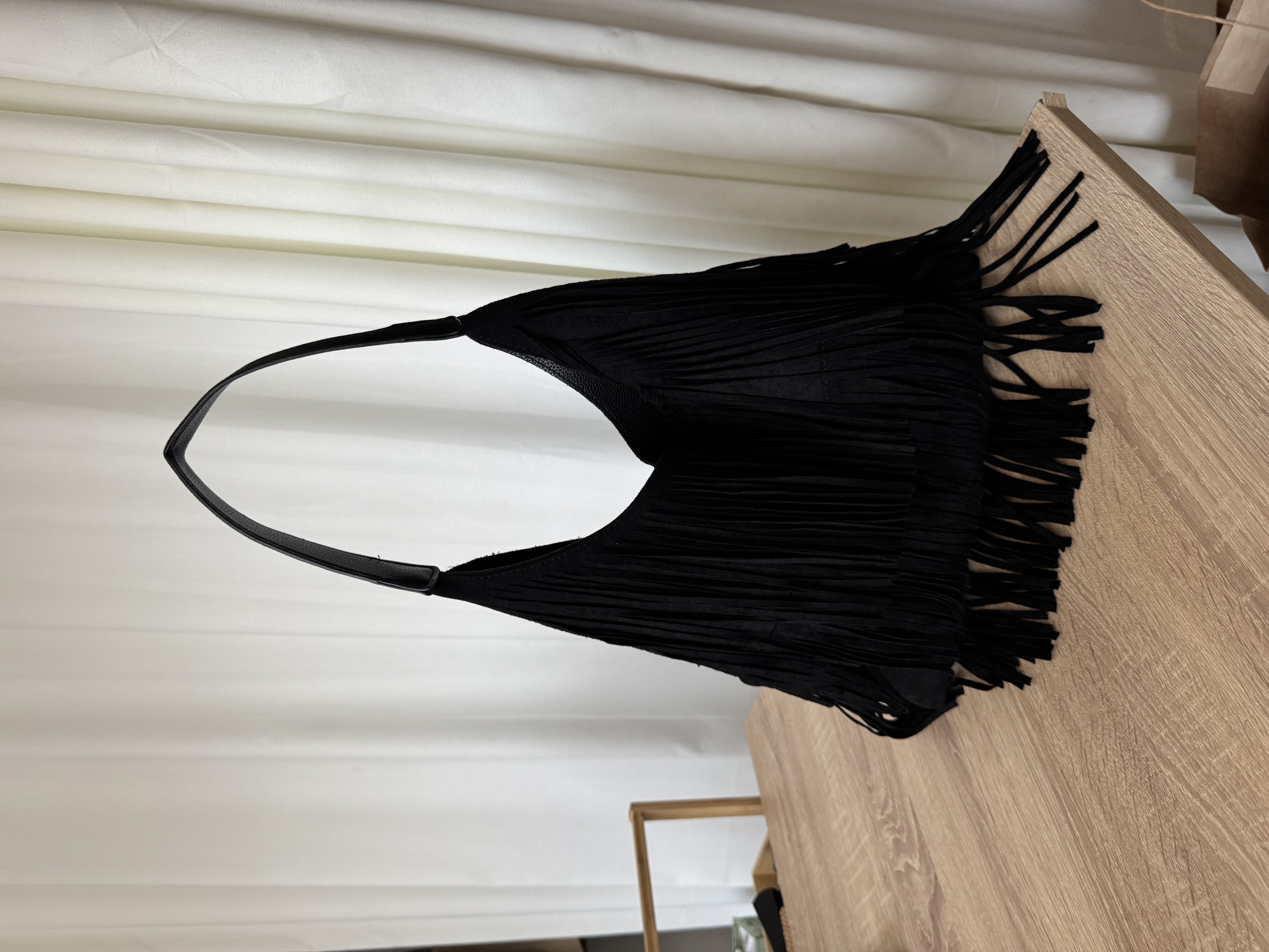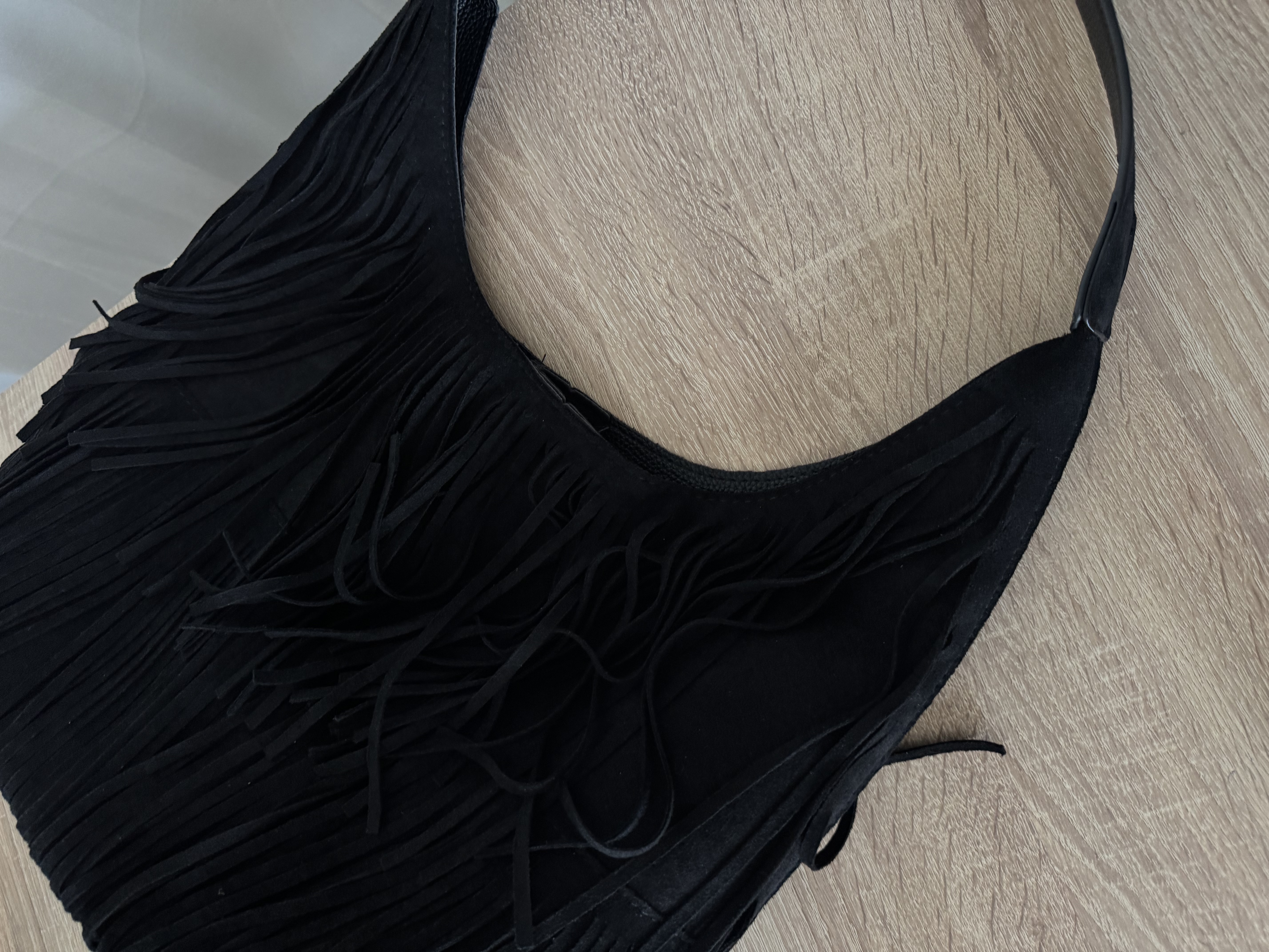 Vegan suede casual bag with fringes in black