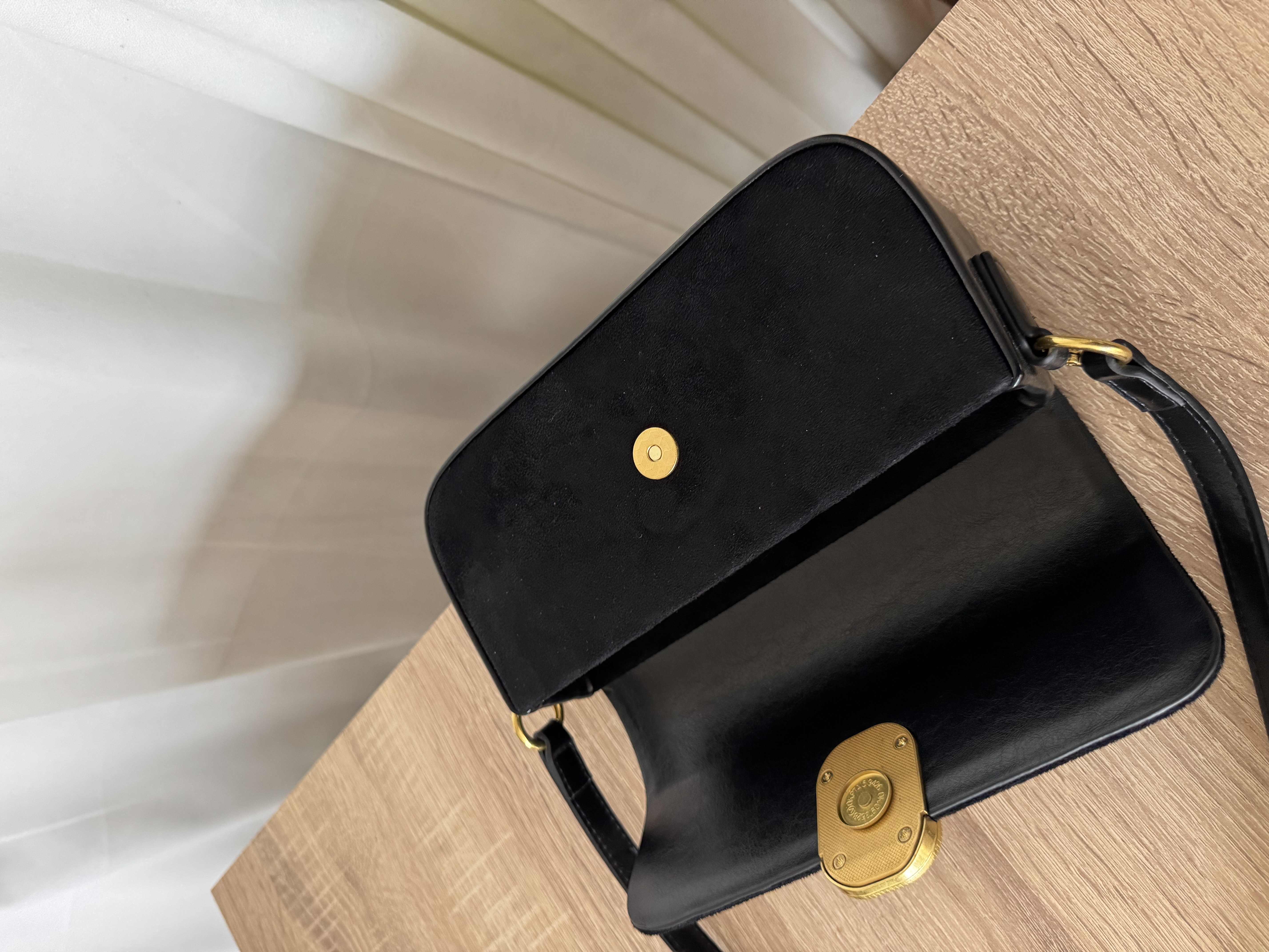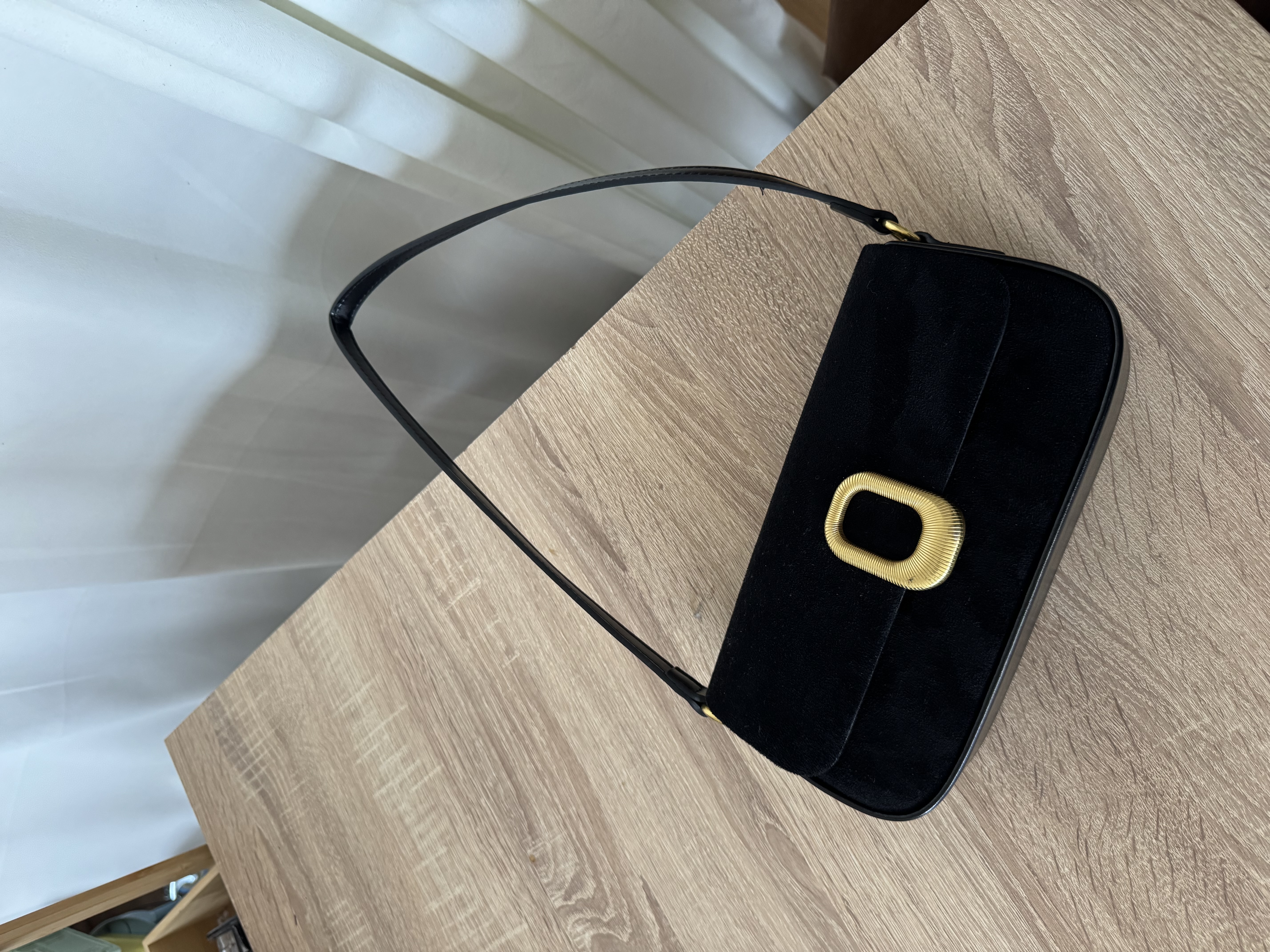 Vegan Suede shoulder bag with gold detail in black
