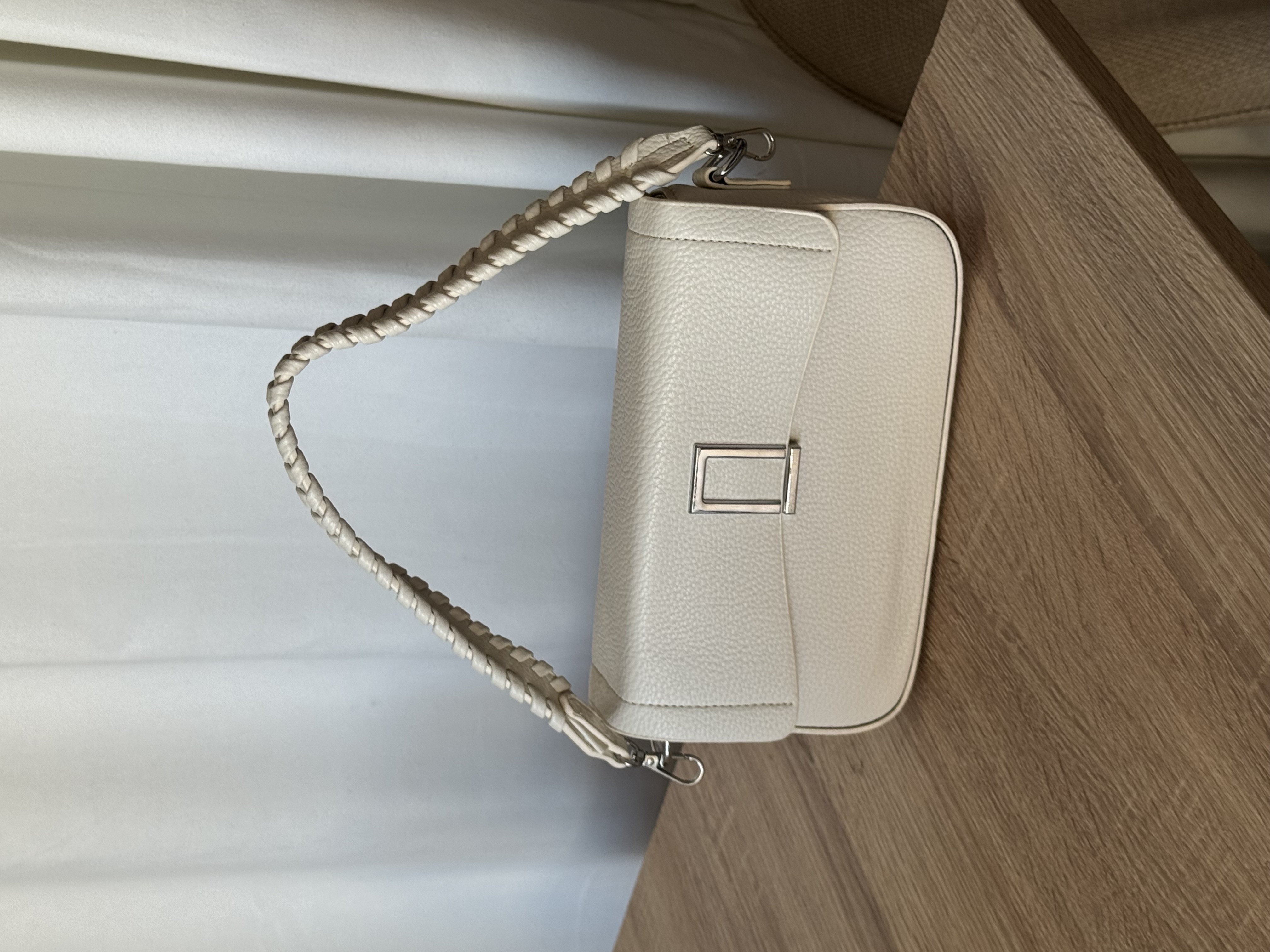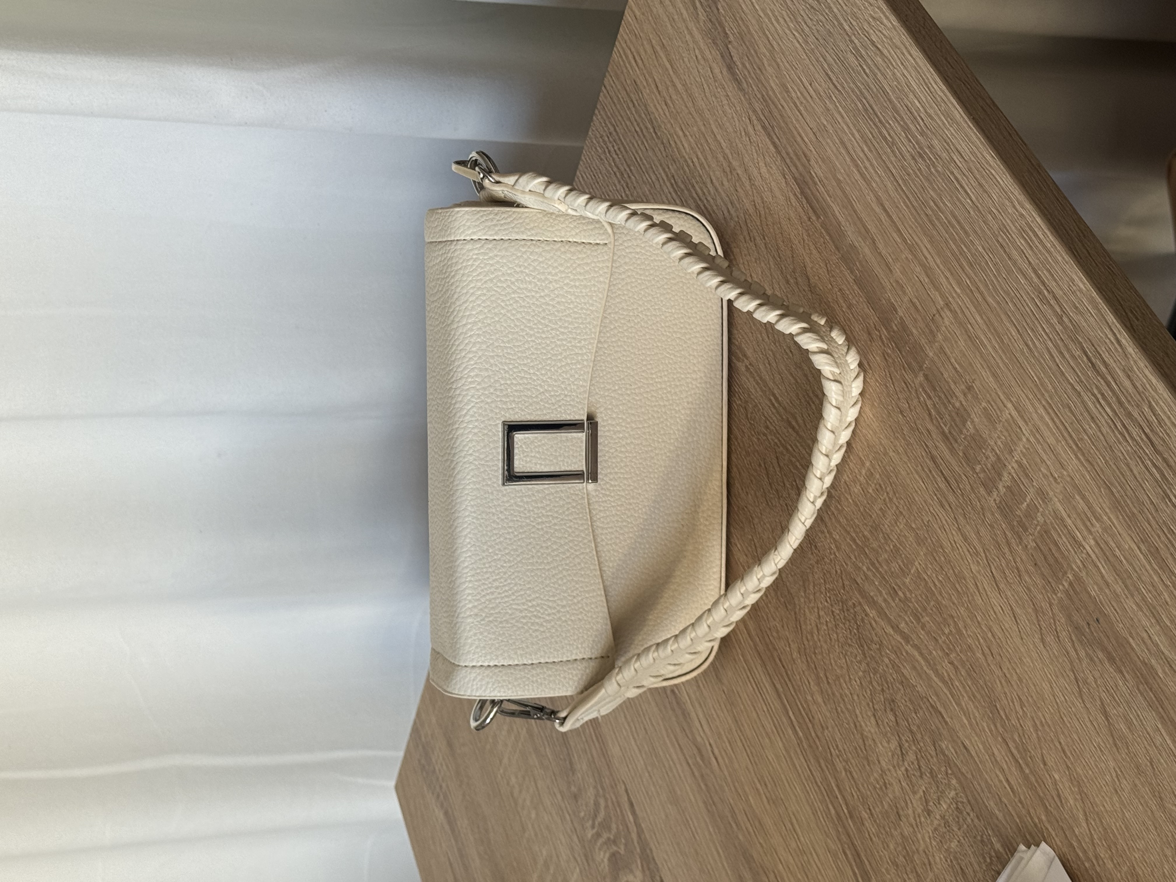 Shoulder bag with detailed strap in ivory