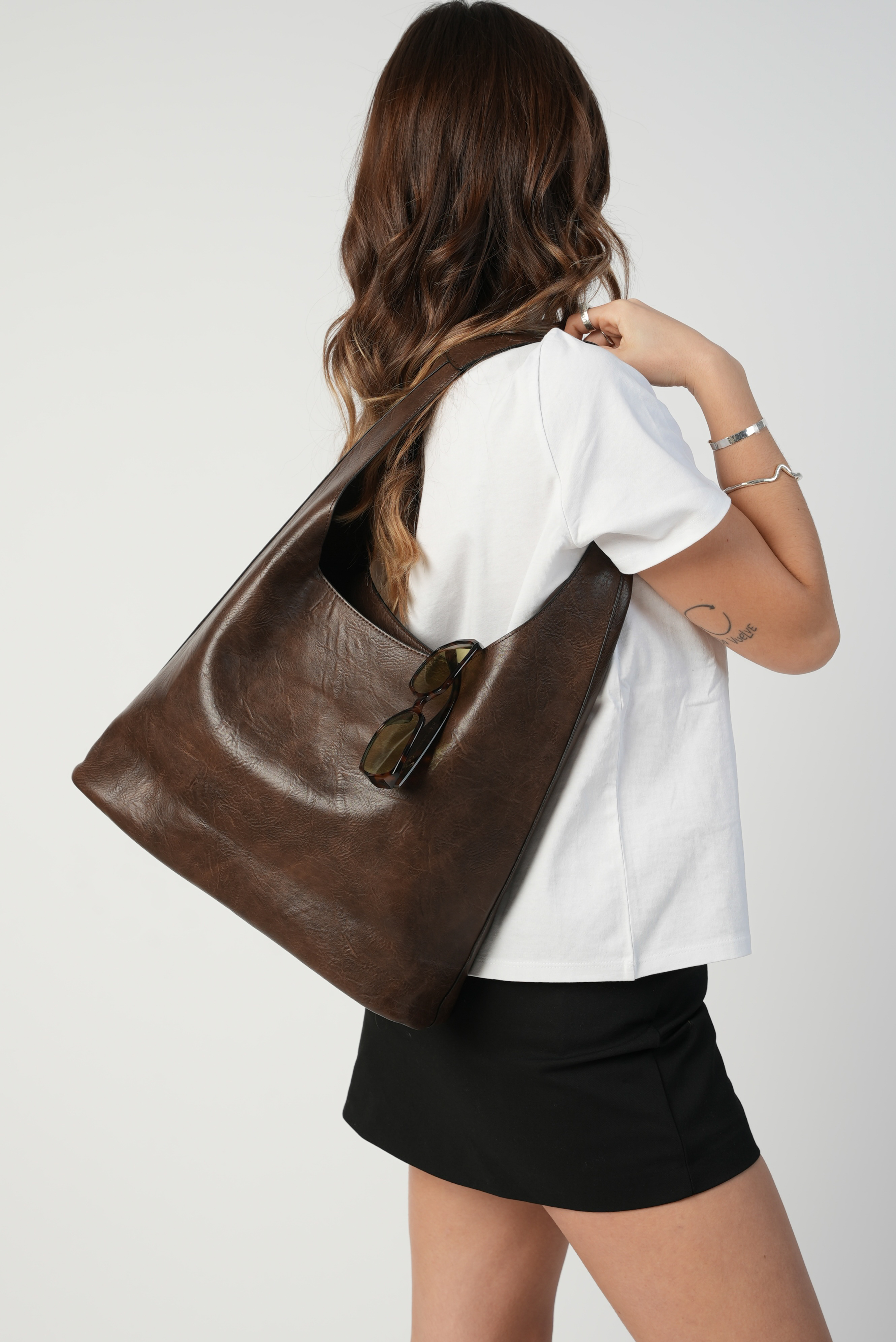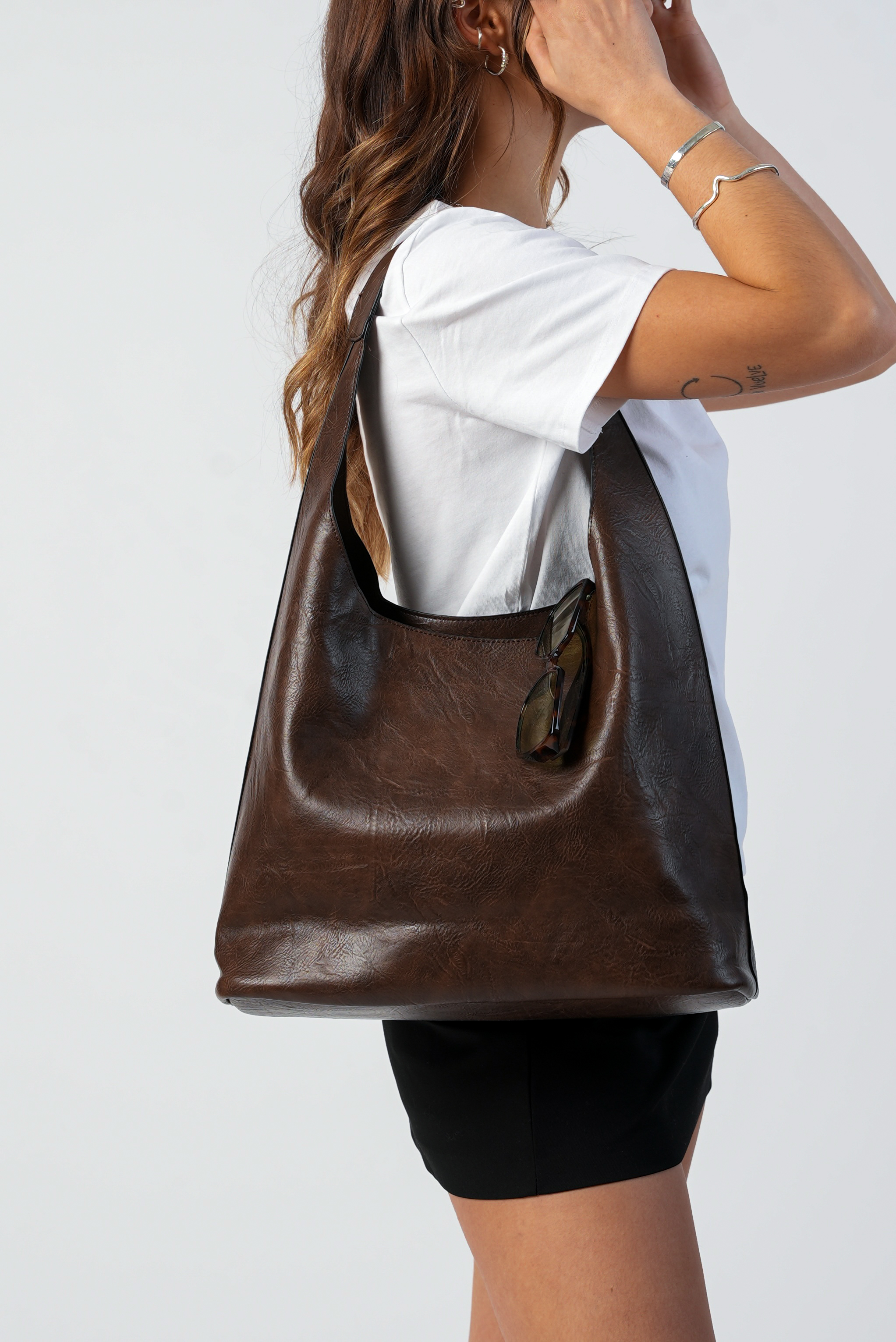 Casual Shoulder bag with zipper in coffee