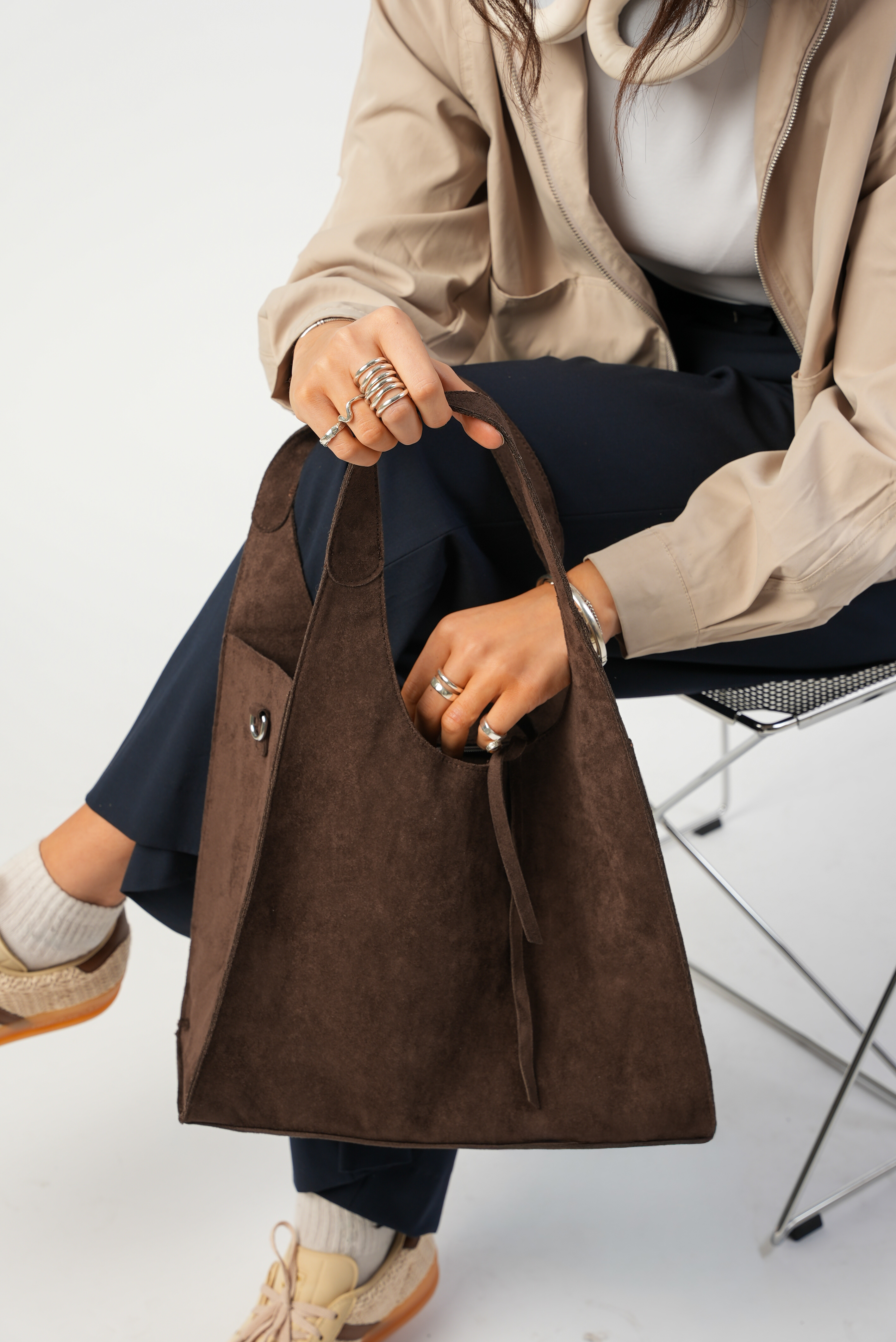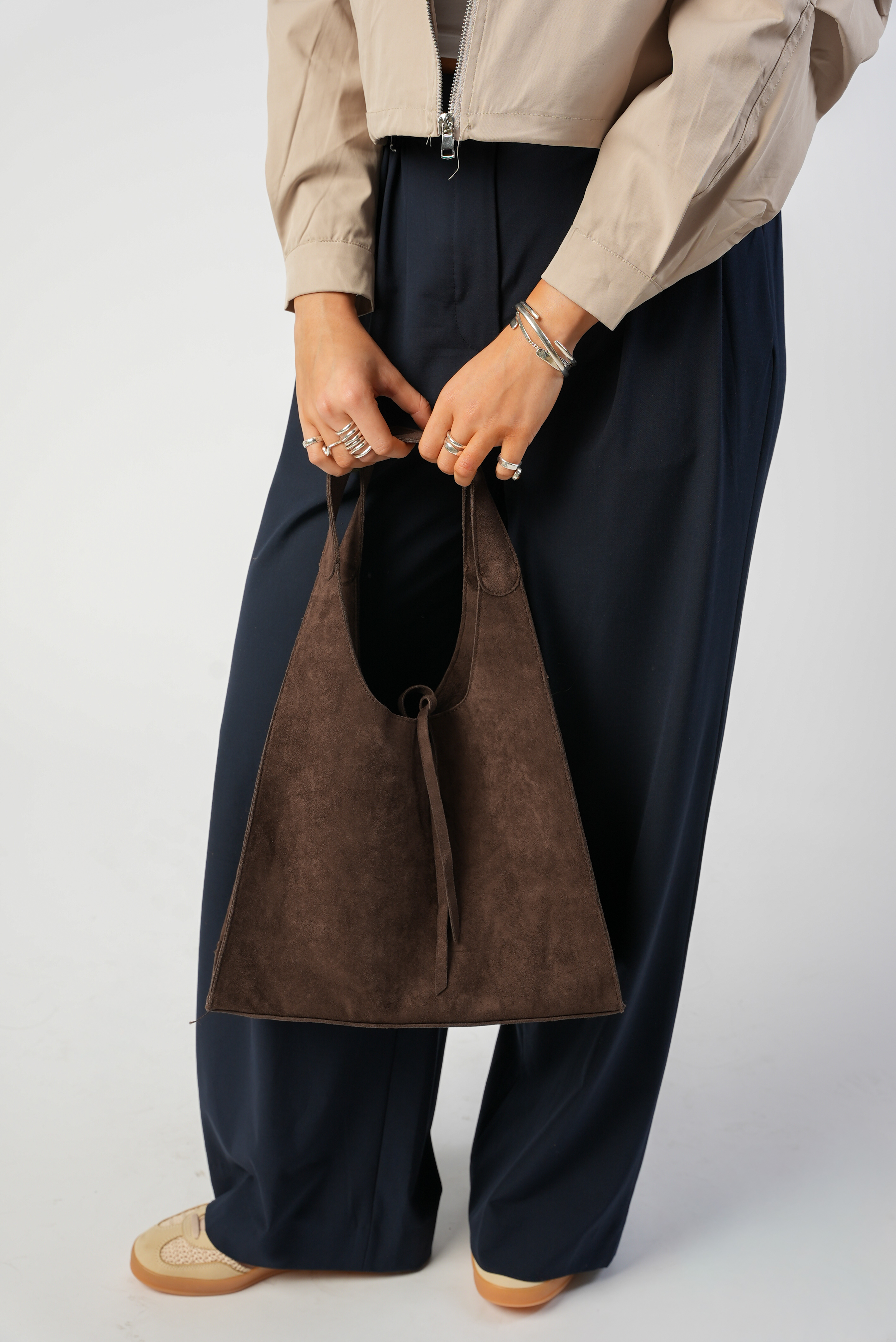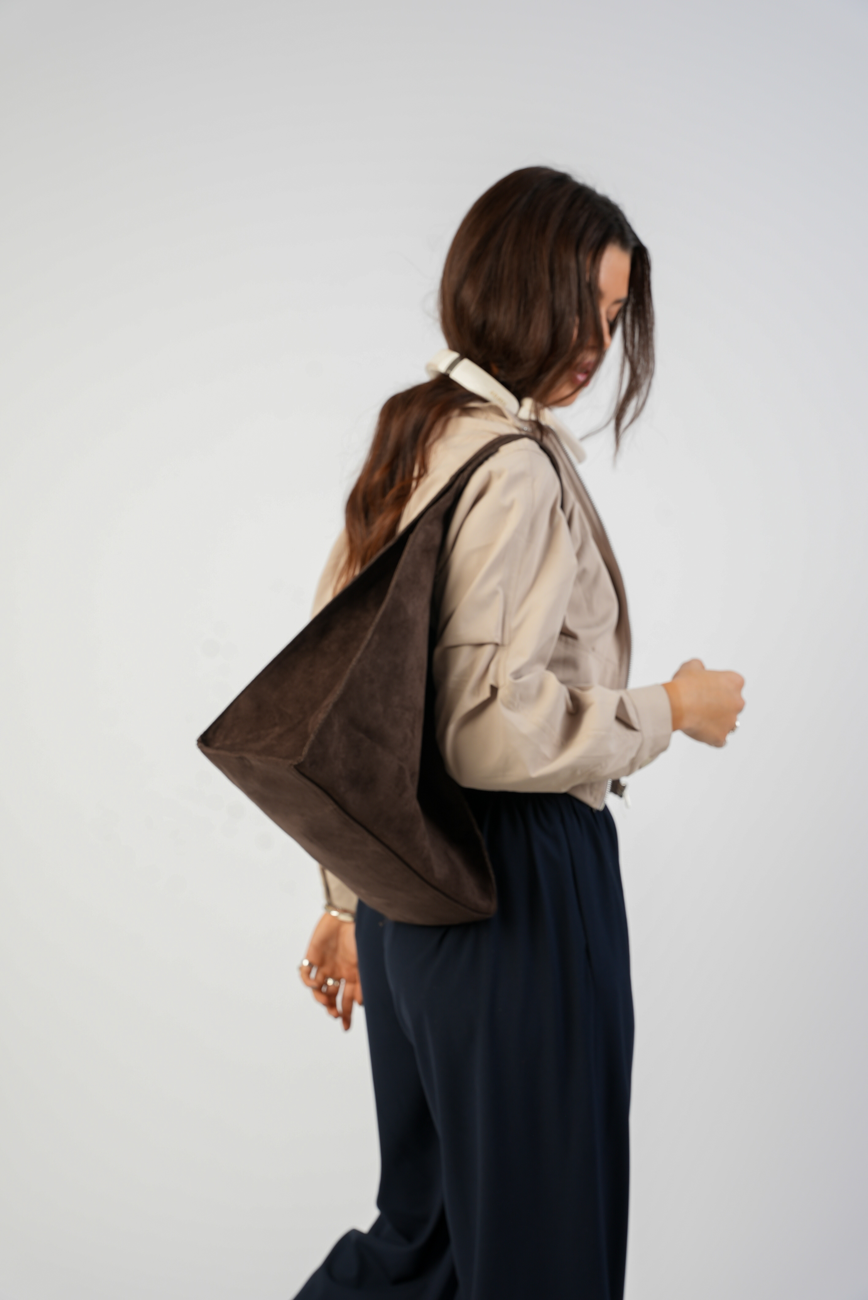 Vegan Suede Shoulder bag with zipper and strap in coffee