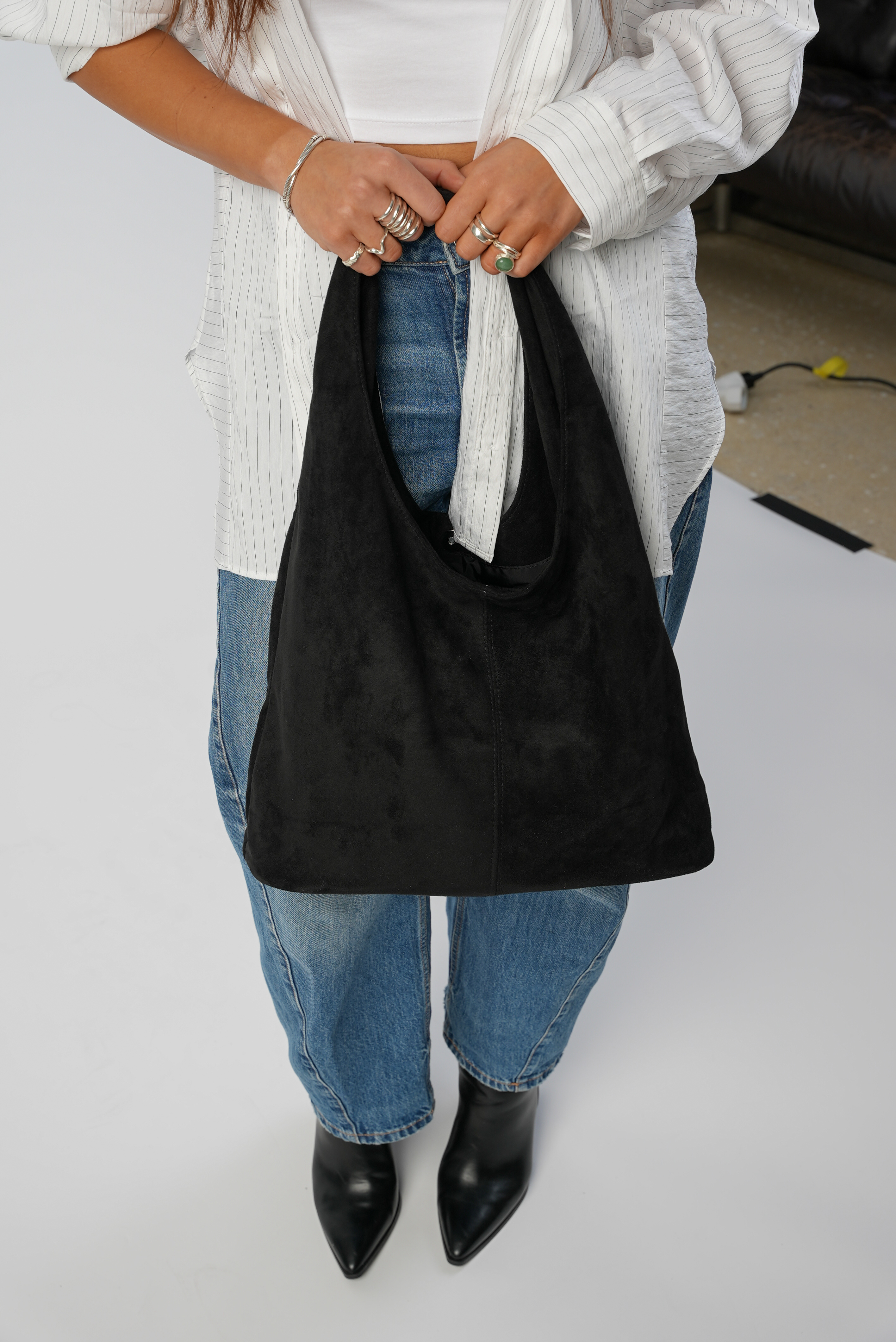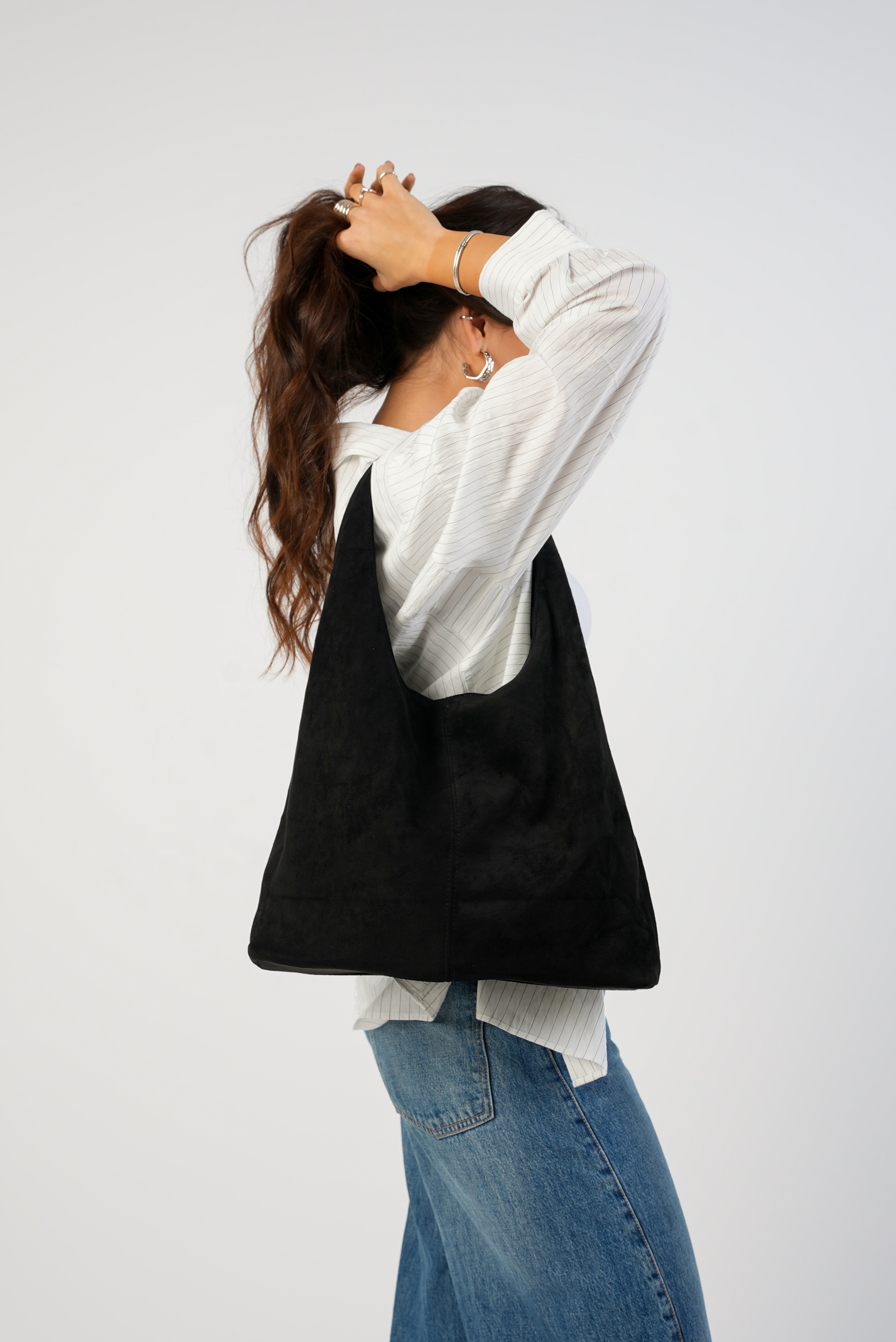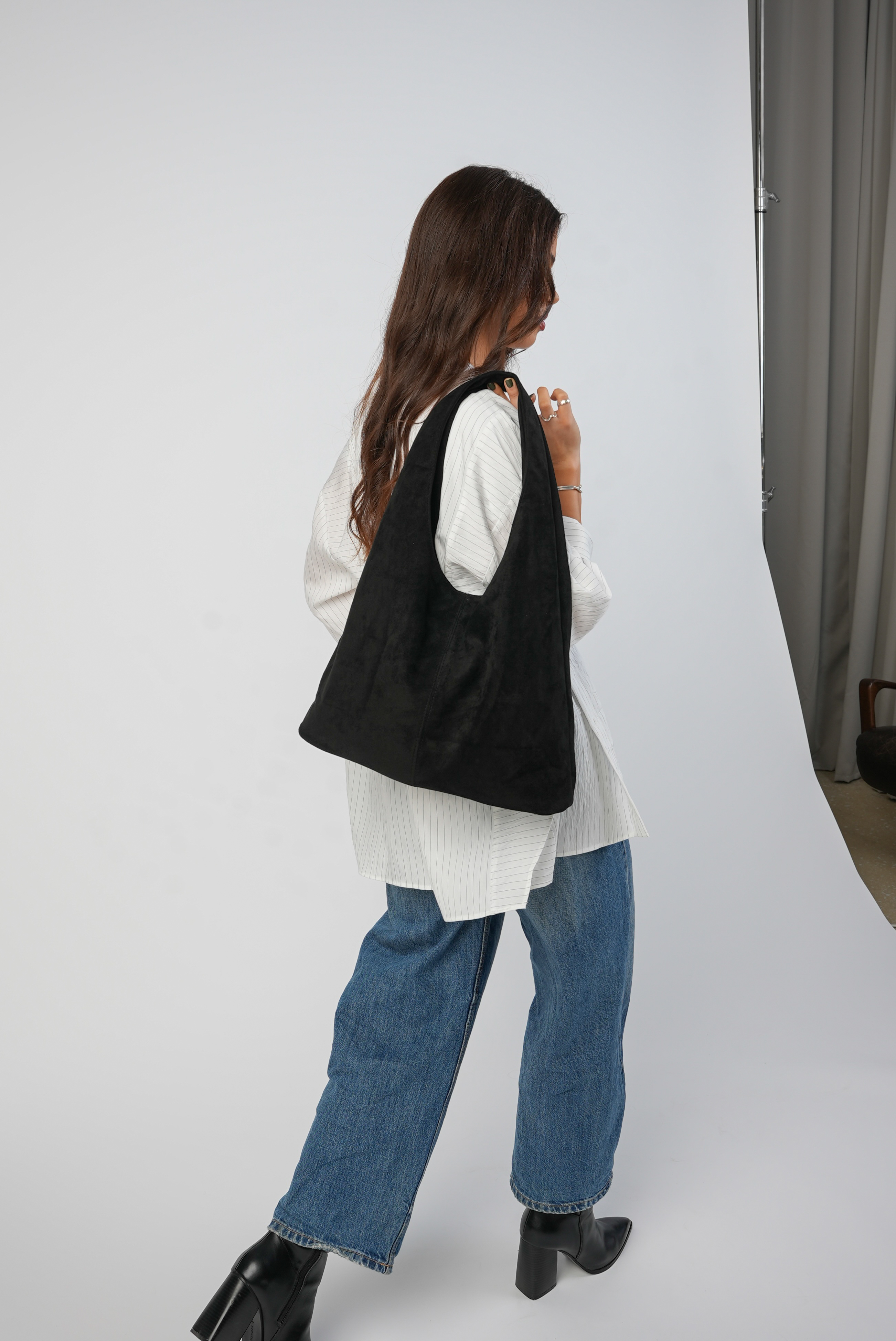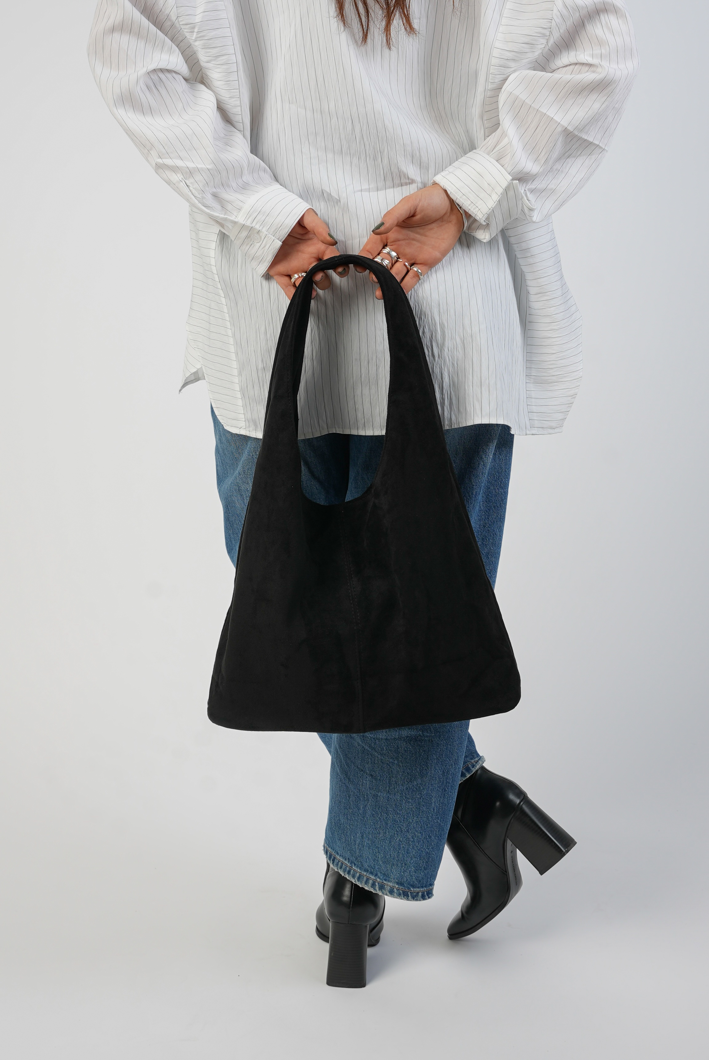 Vegan Suede Tote bag with clip in black