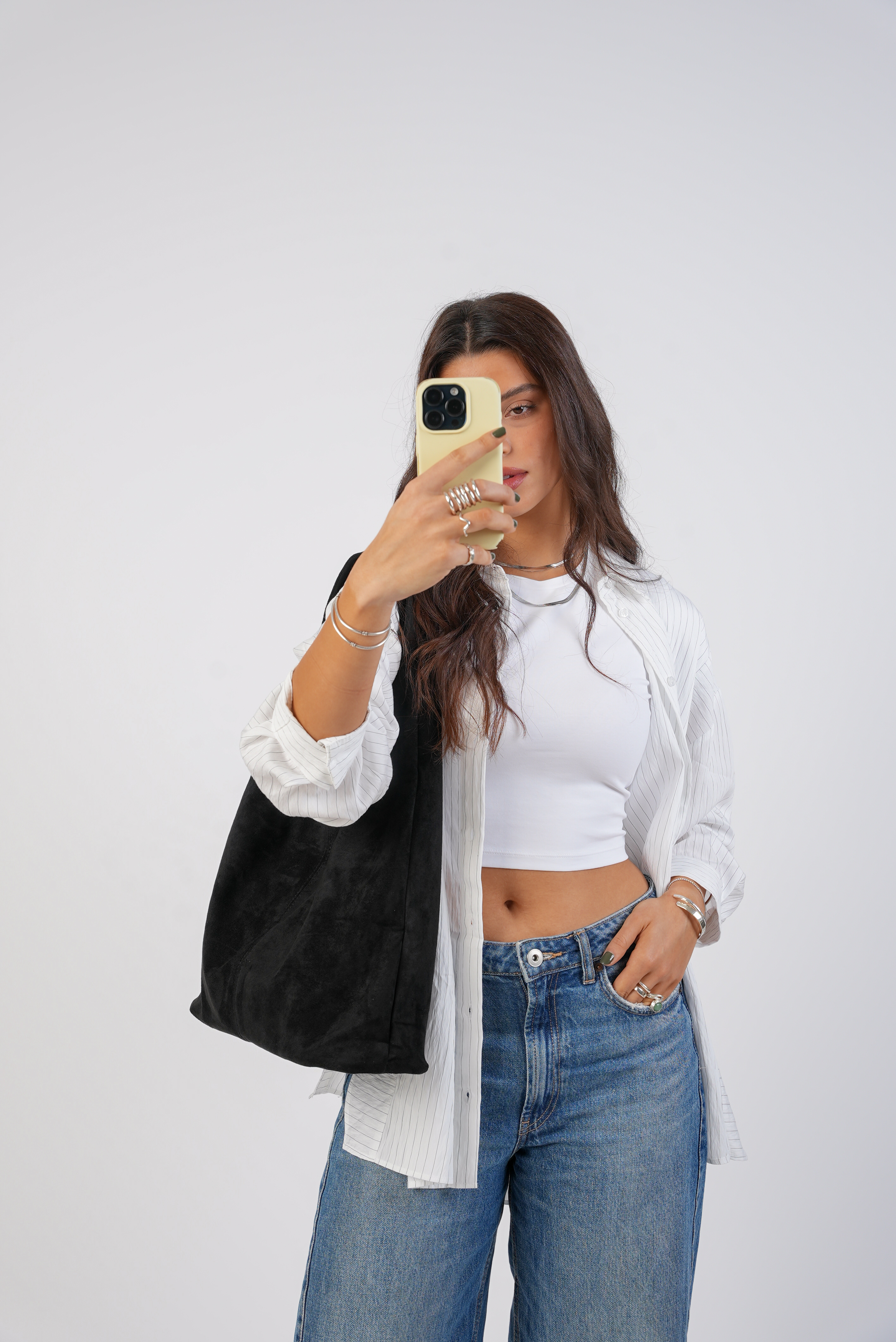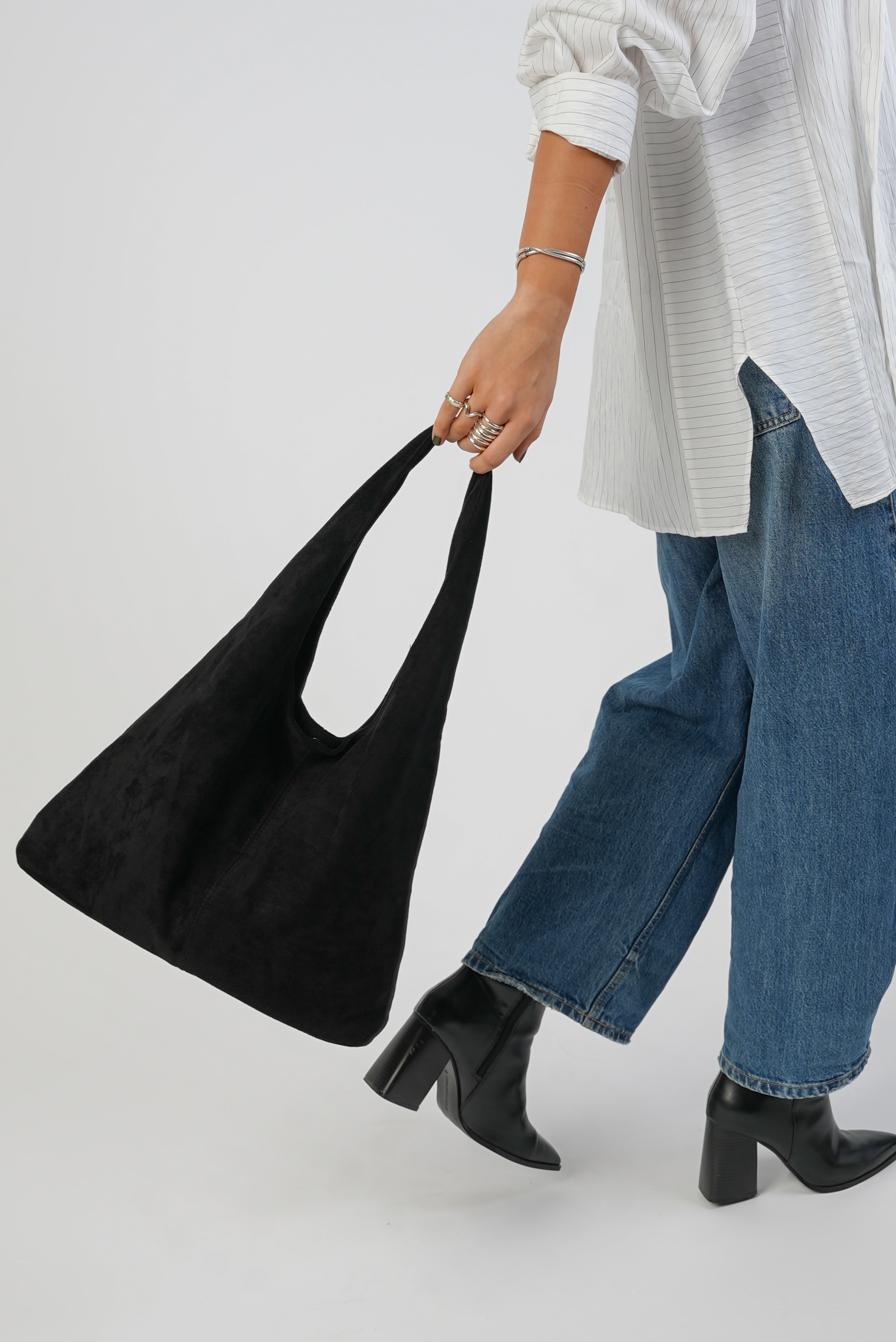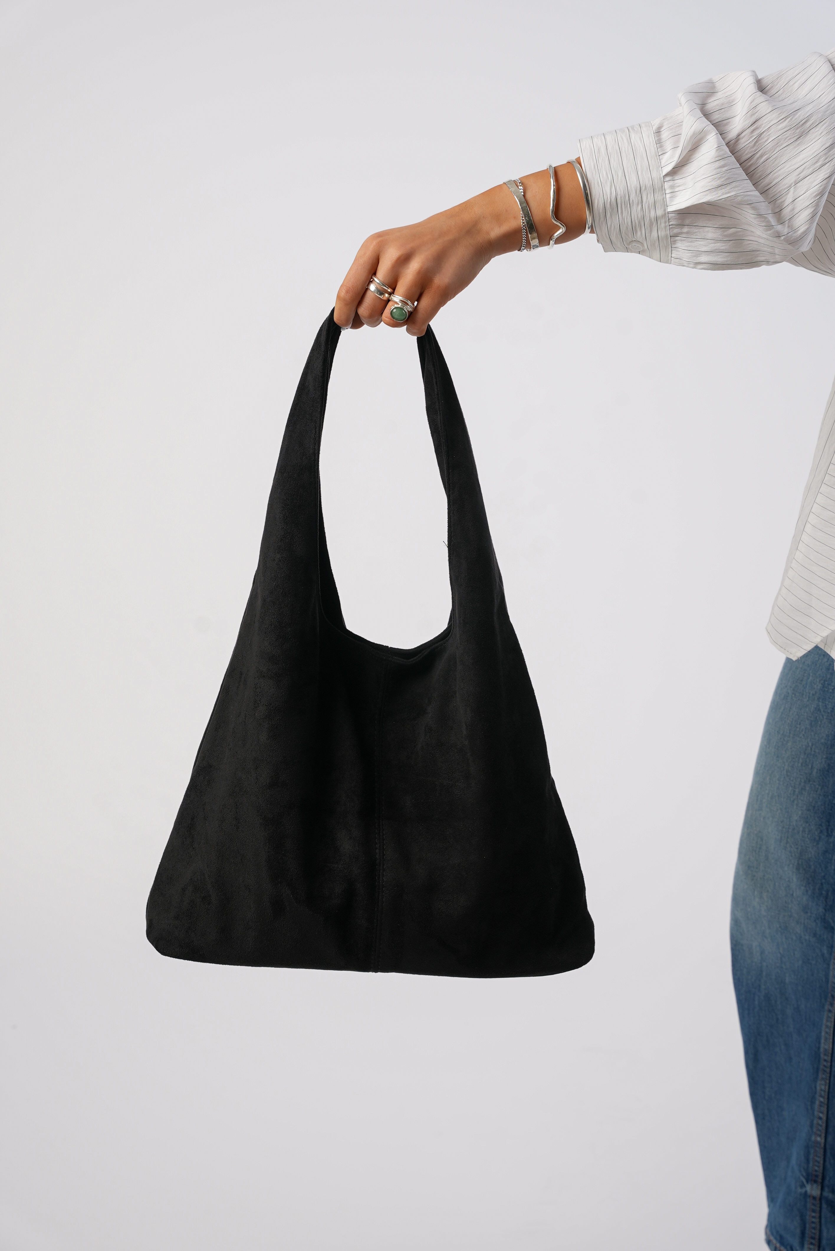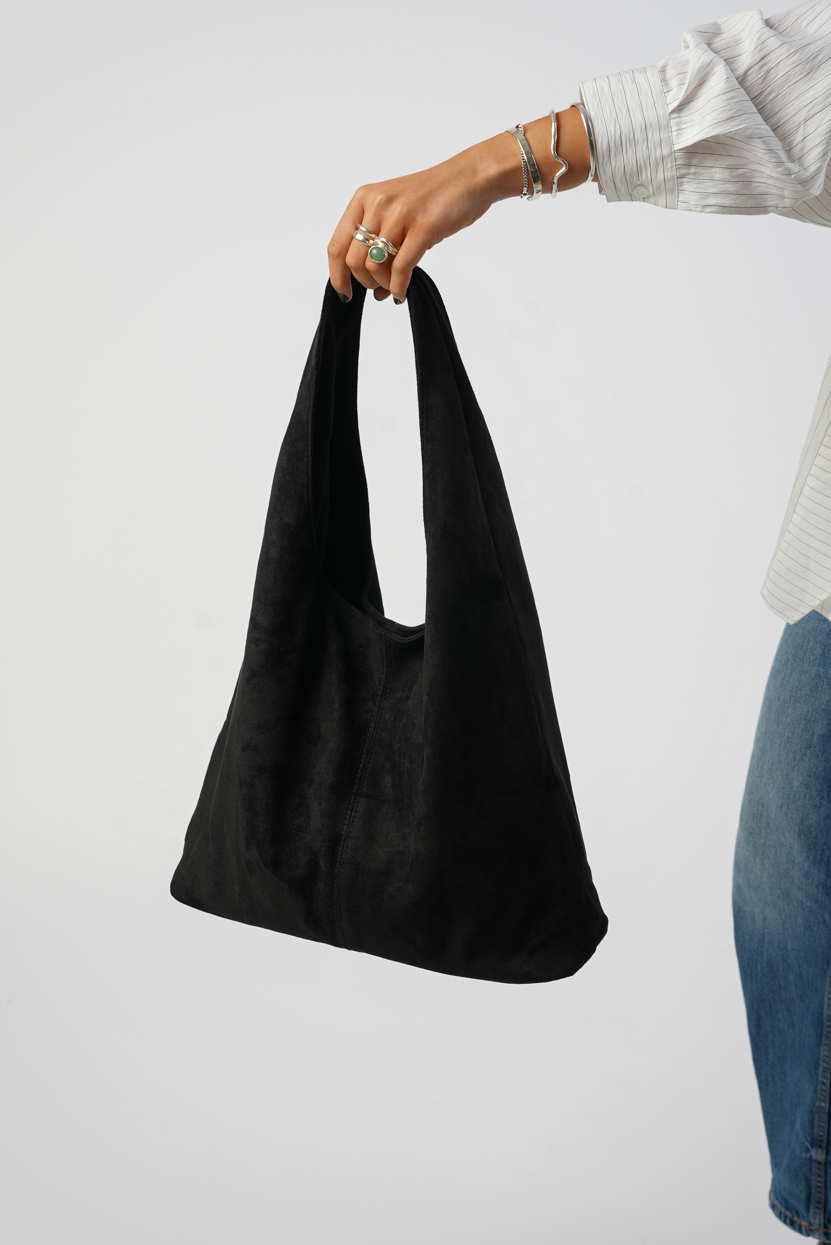 Vegan Suede Tote bag with clip in black