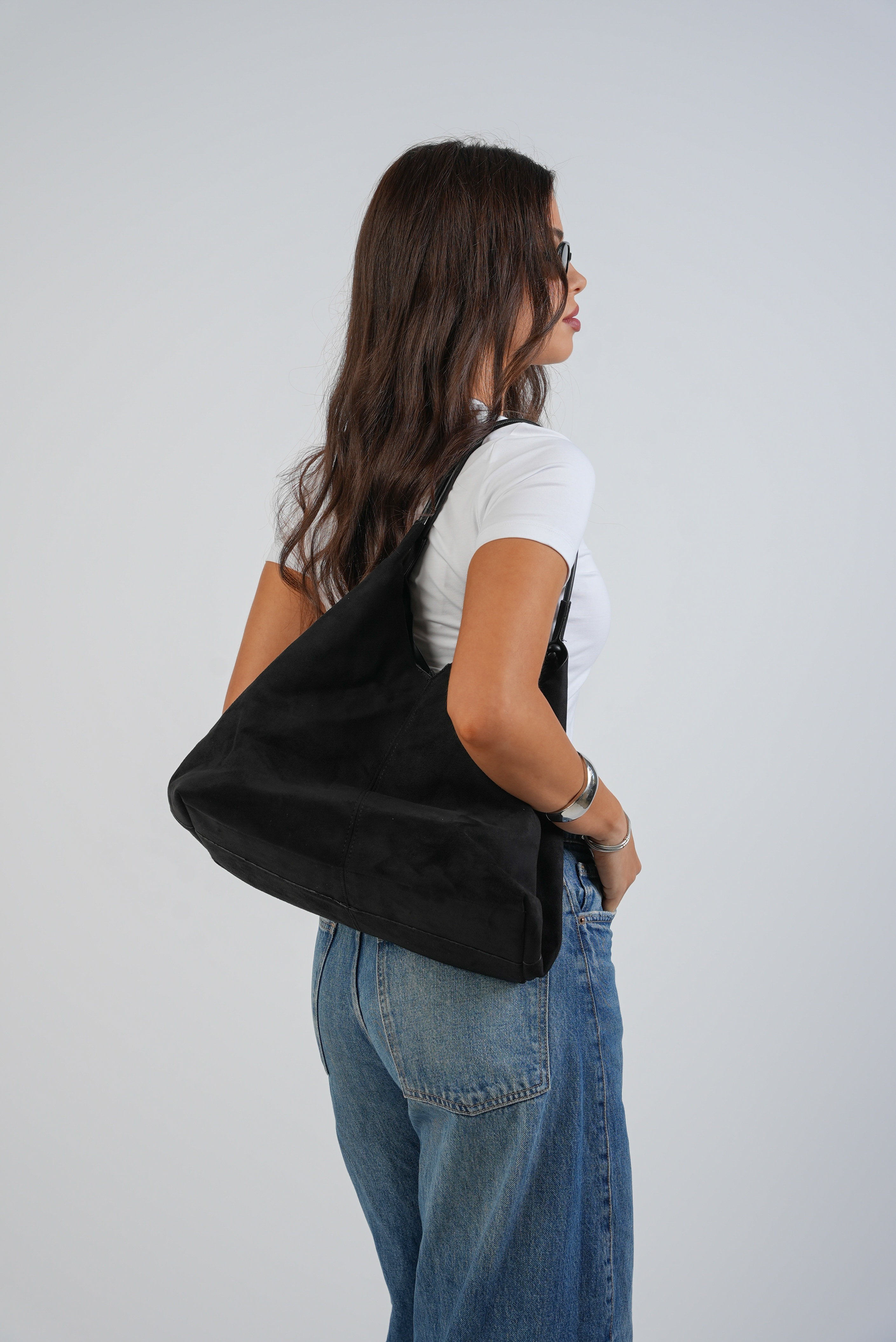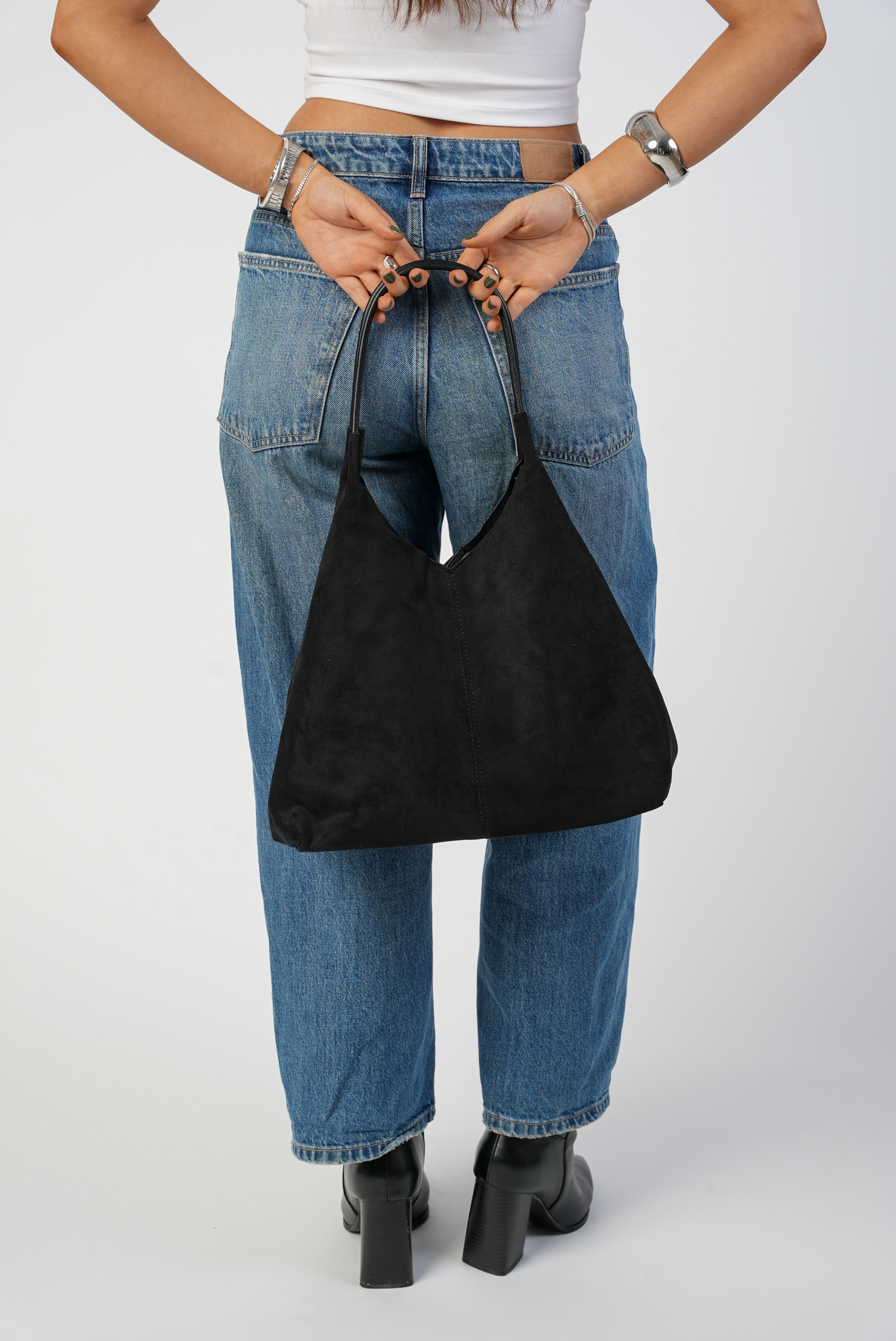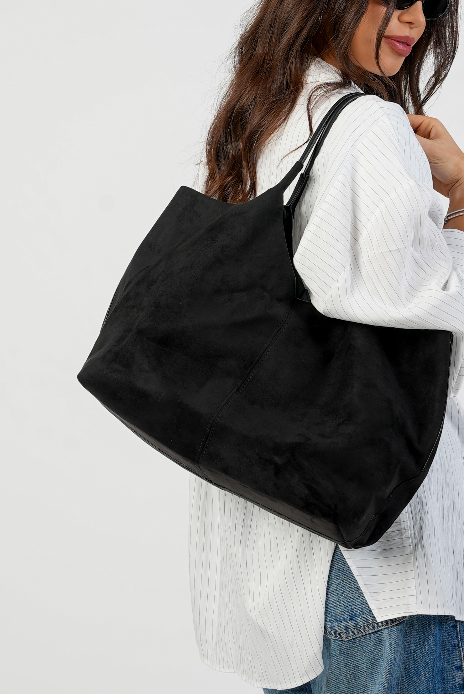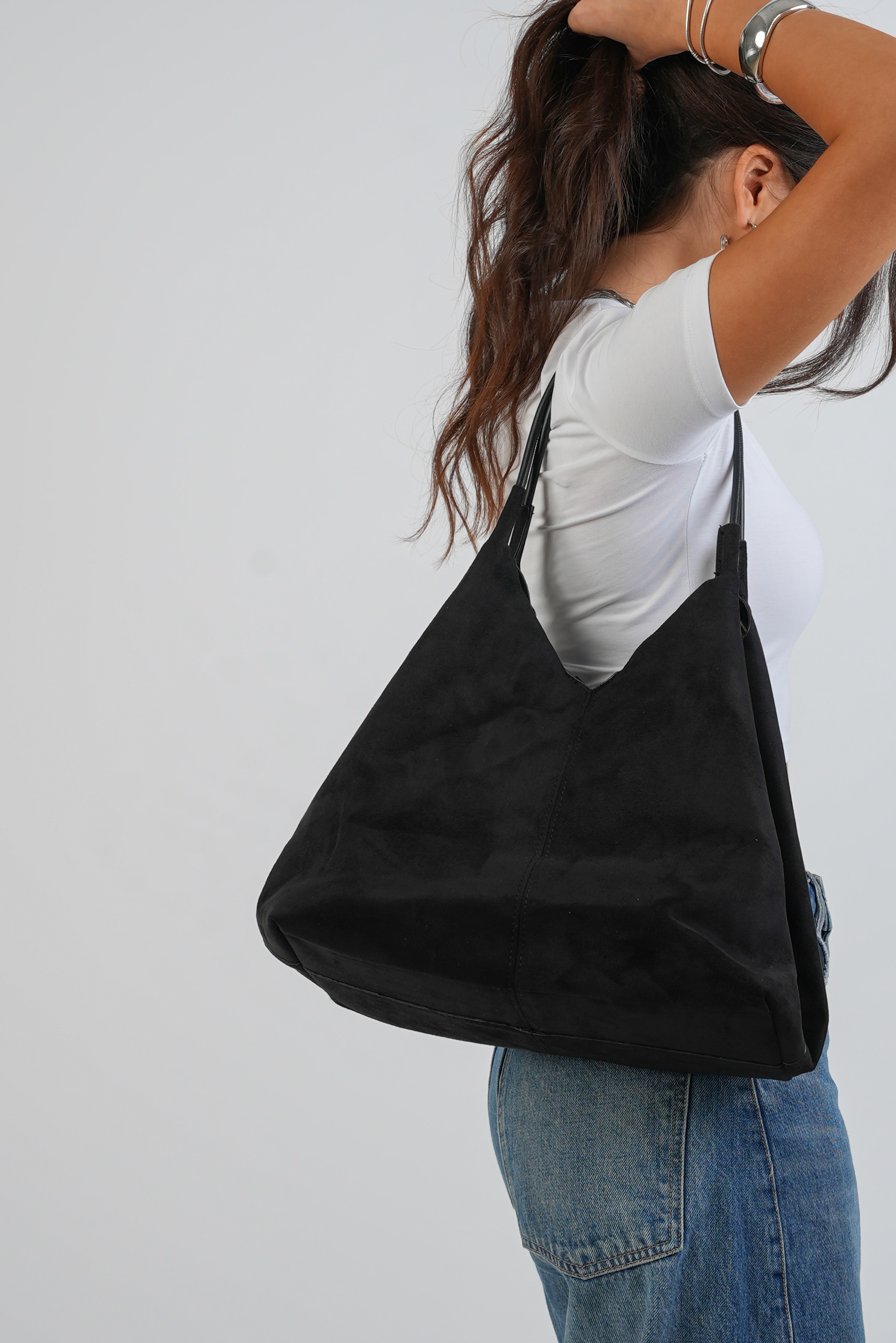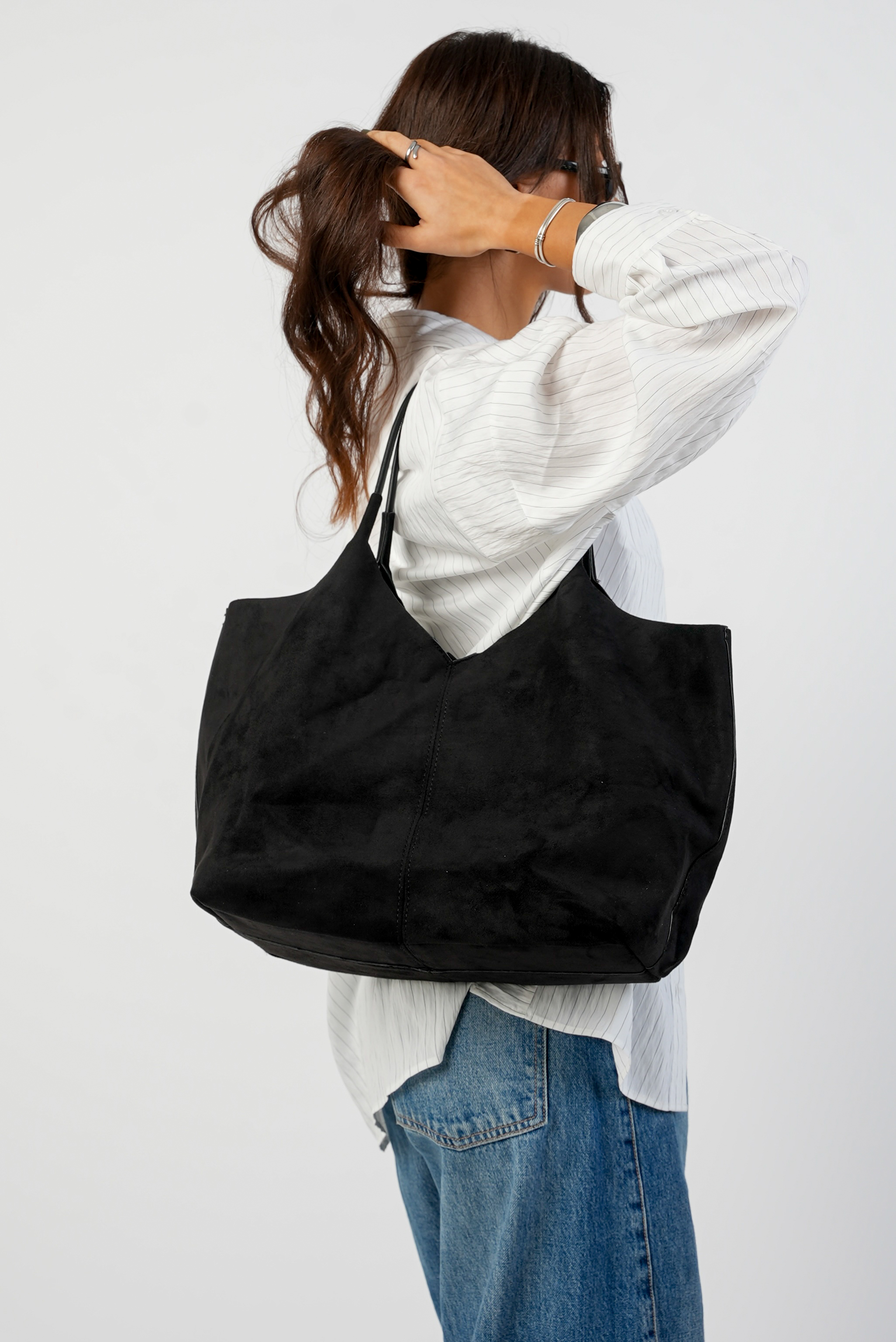 Vegan Suede Wide bag in black