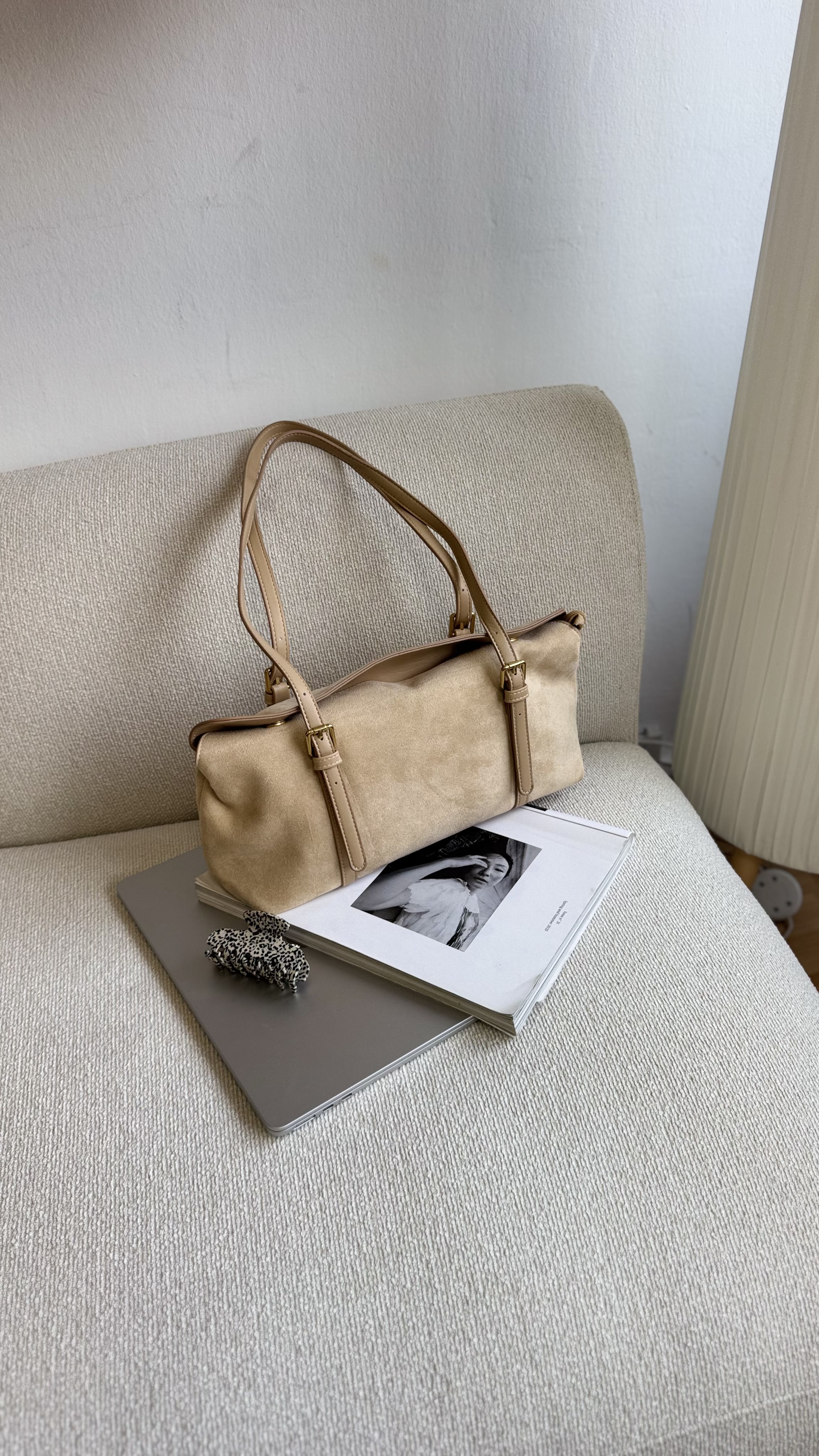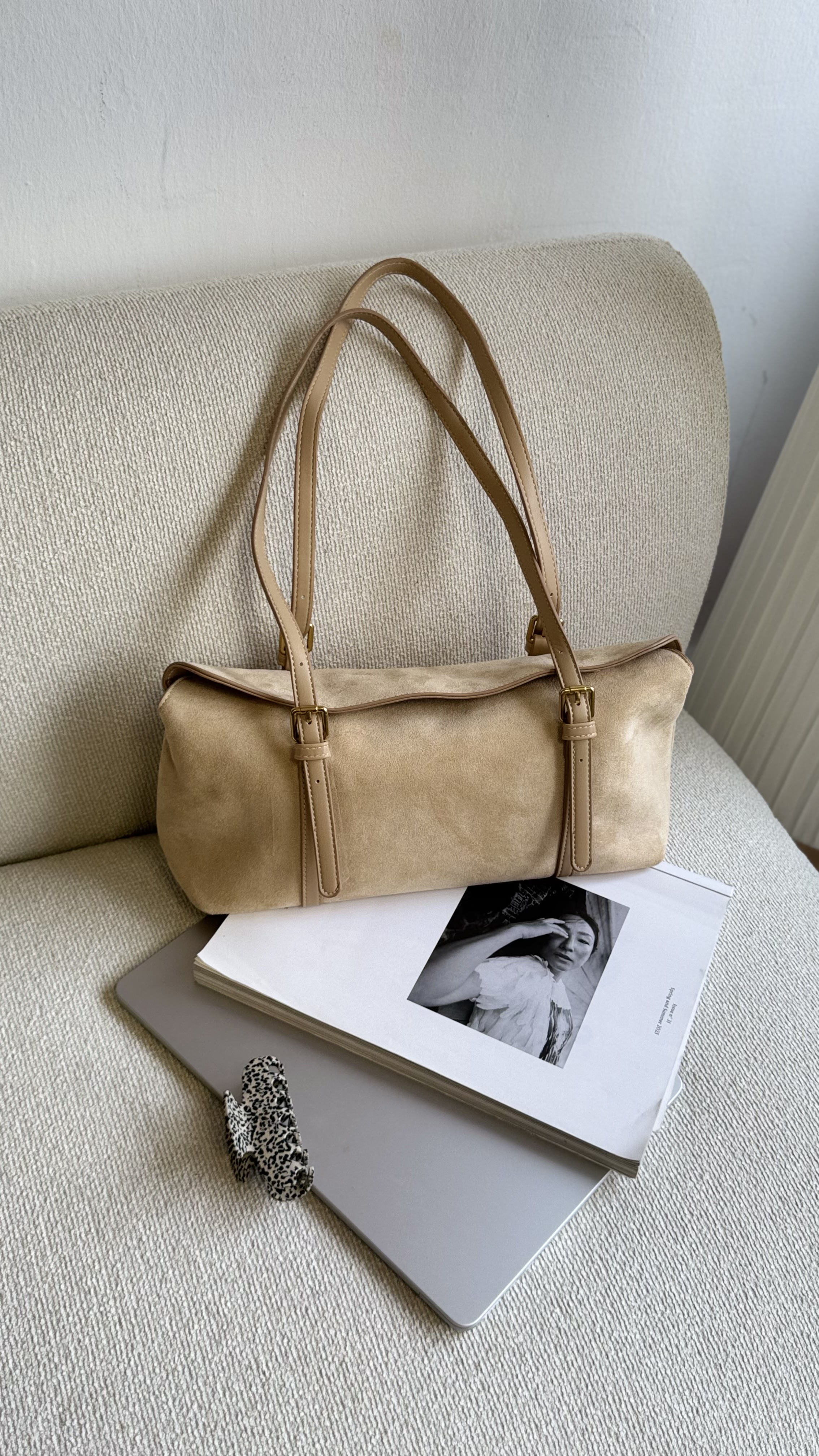 Vegan suede baguette bag