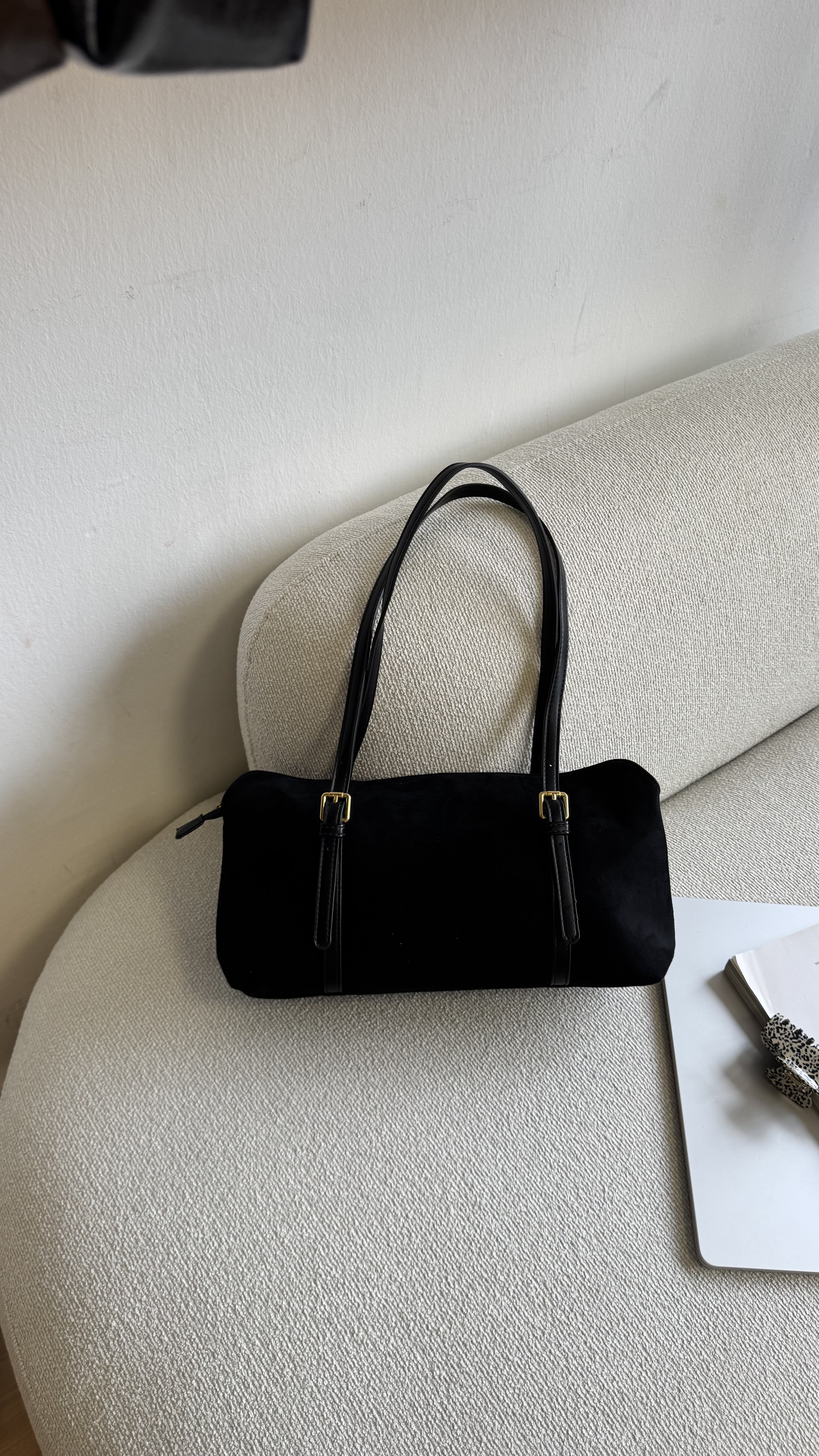 Vegan suede baguette bag in black