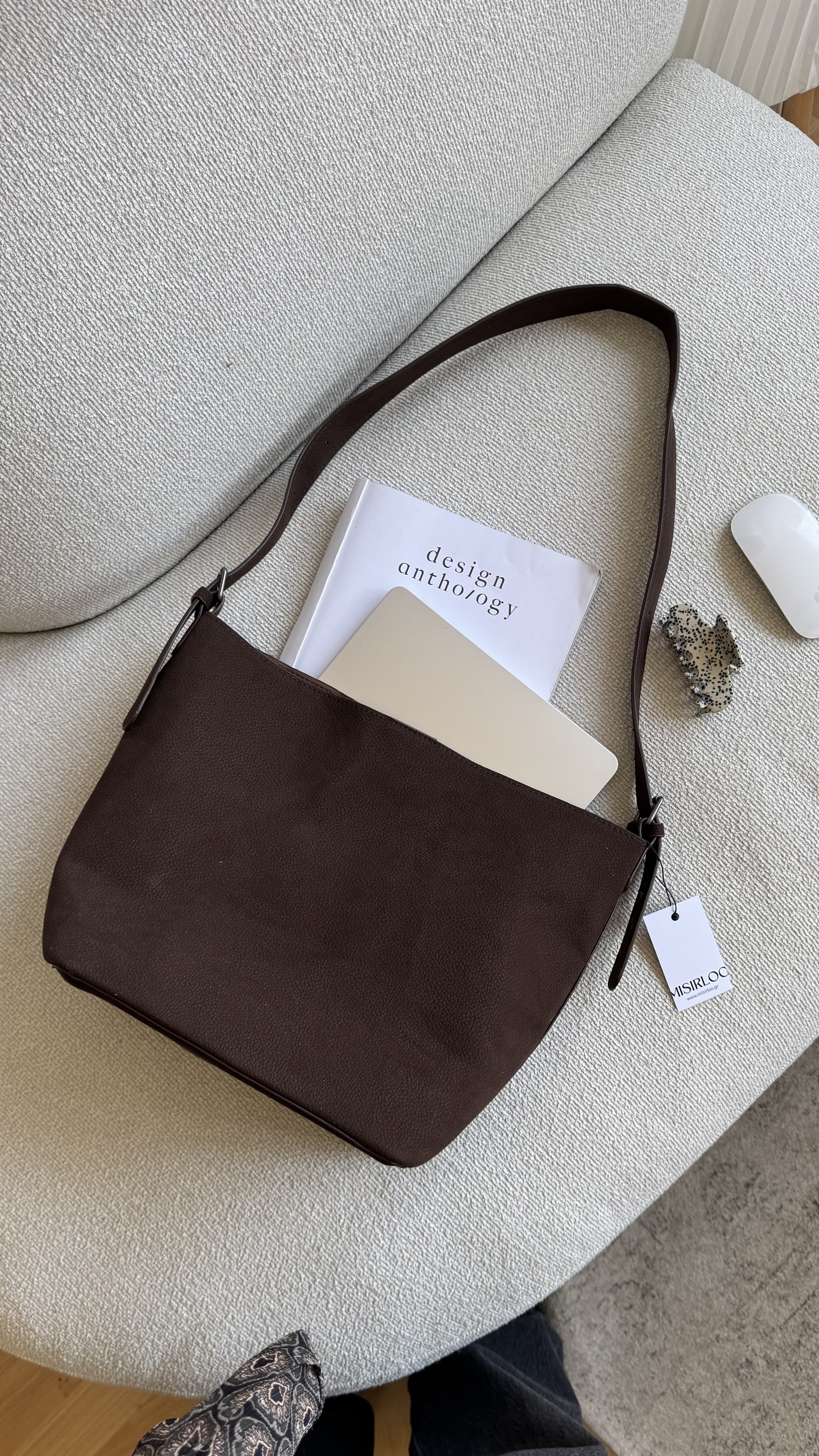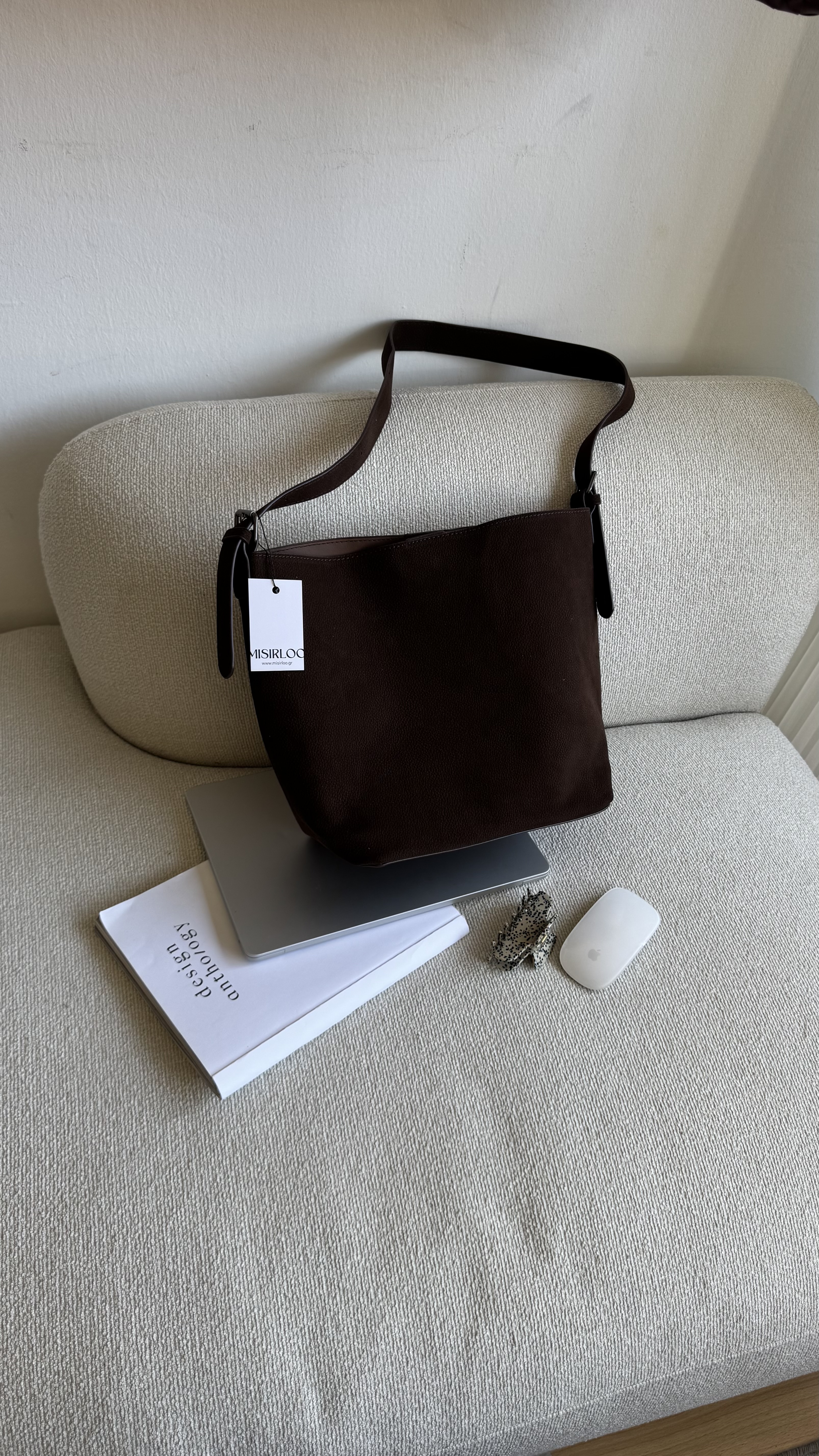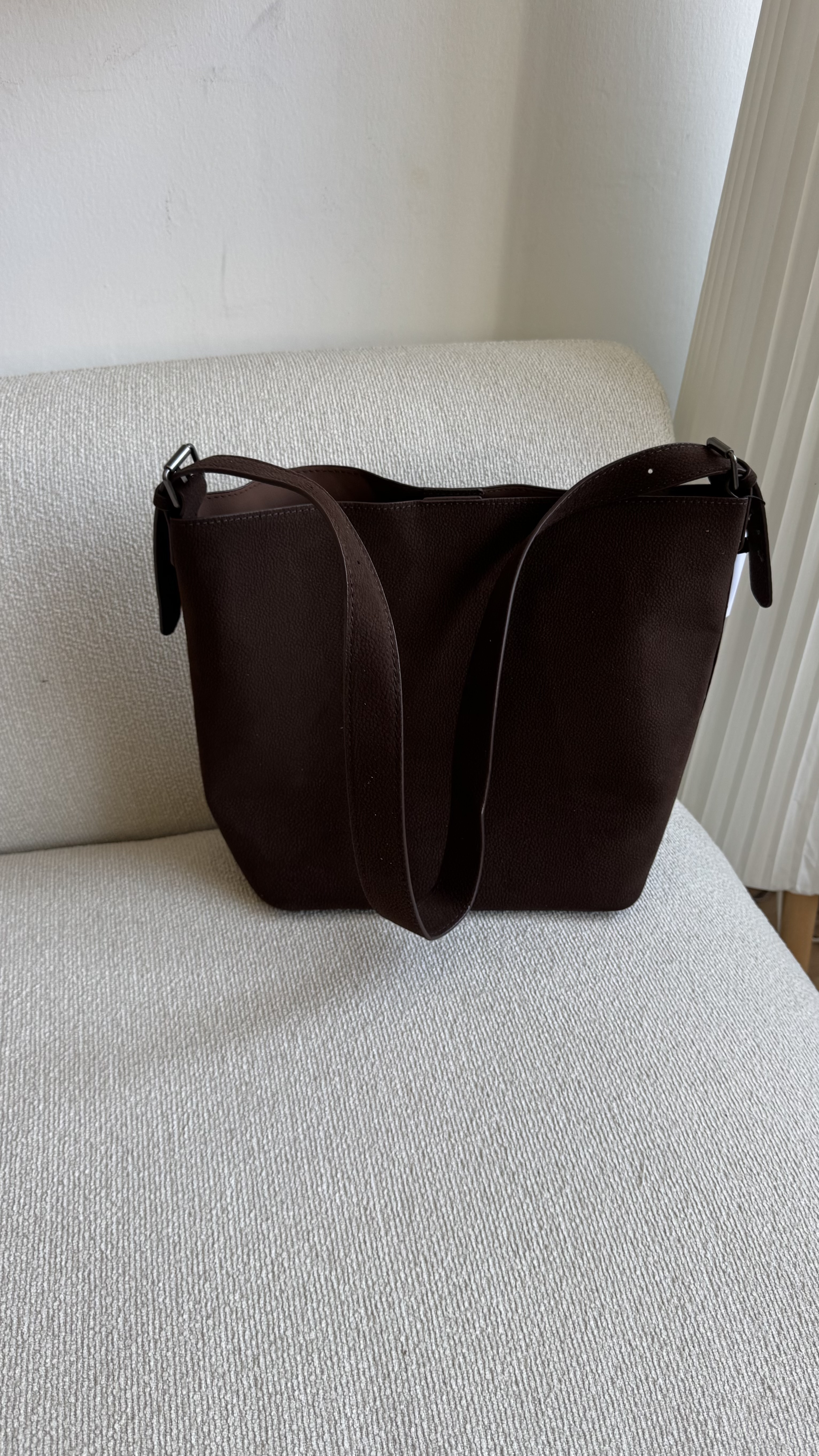 Vegan Matt Bucket bag with adjustable strap in coffee