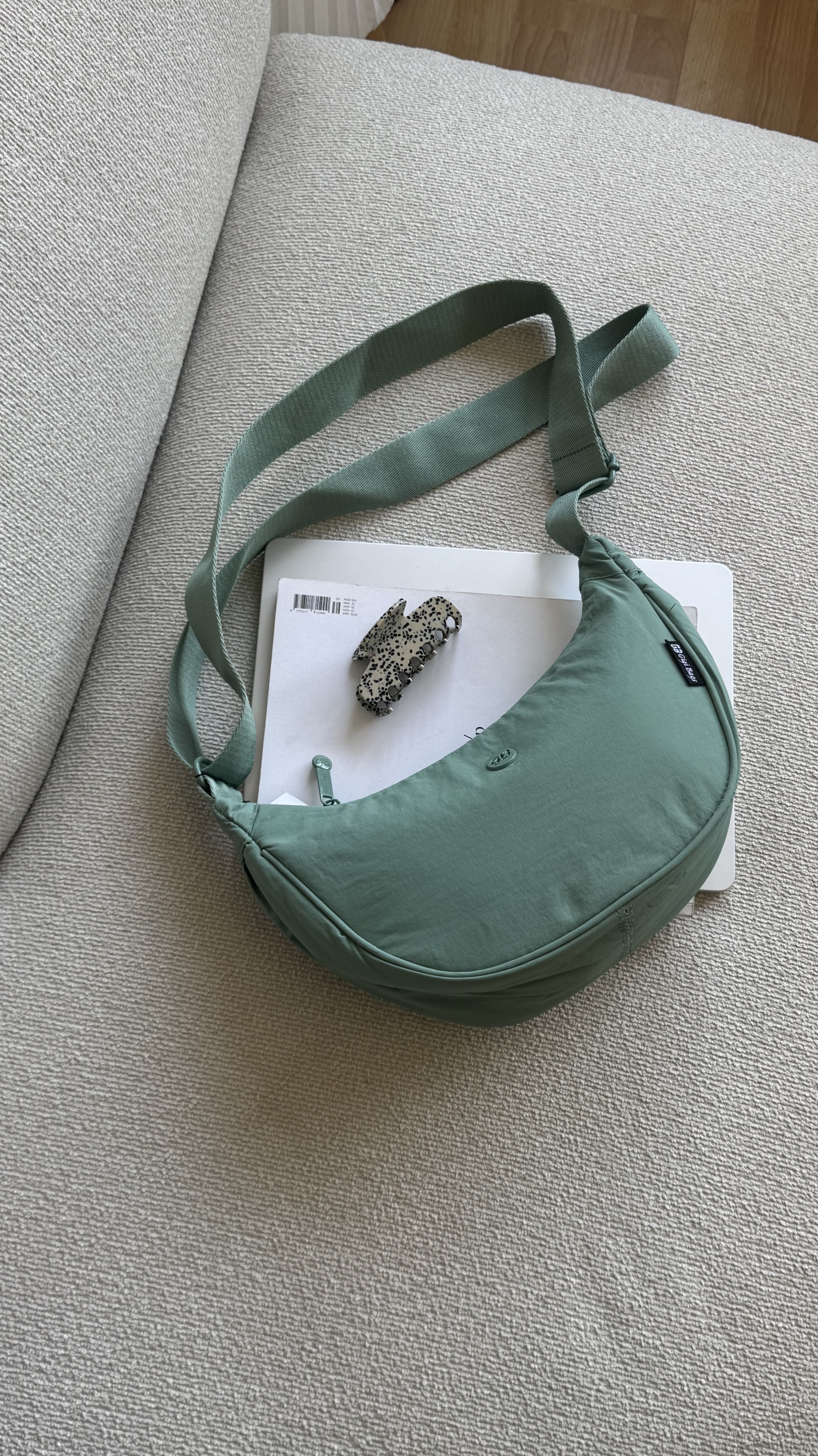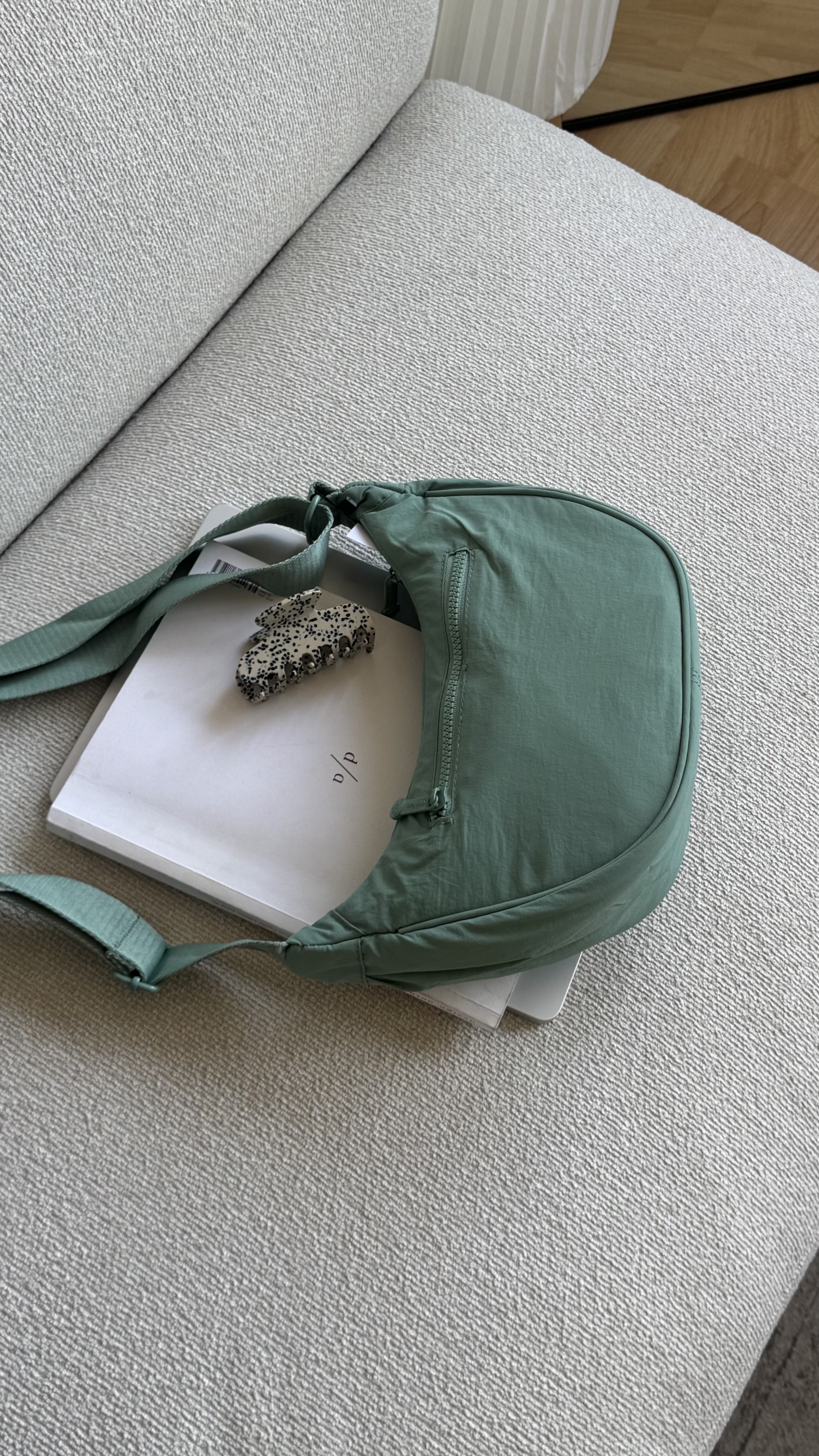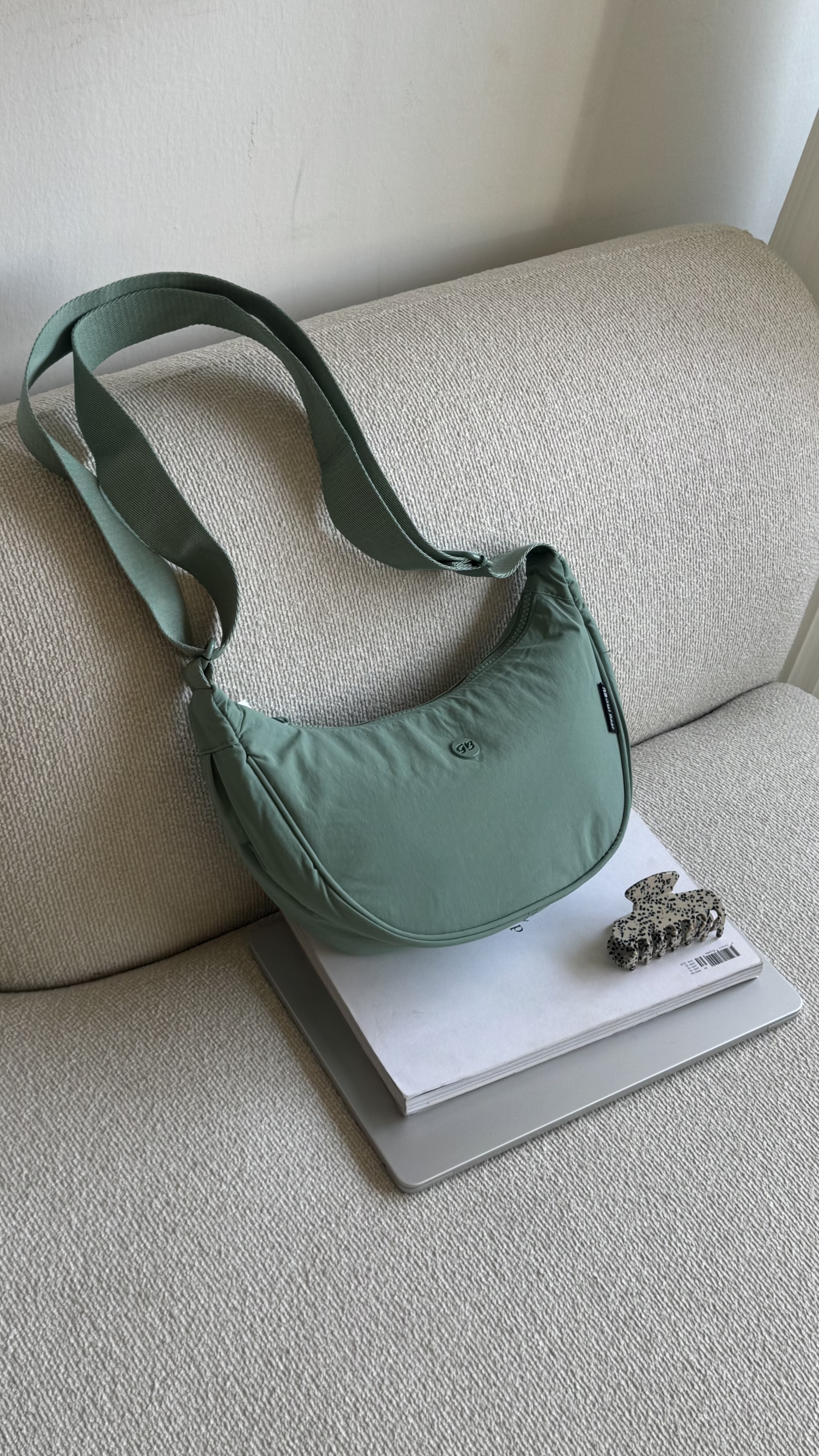 Roundbag with details and adjustable strap in aqua