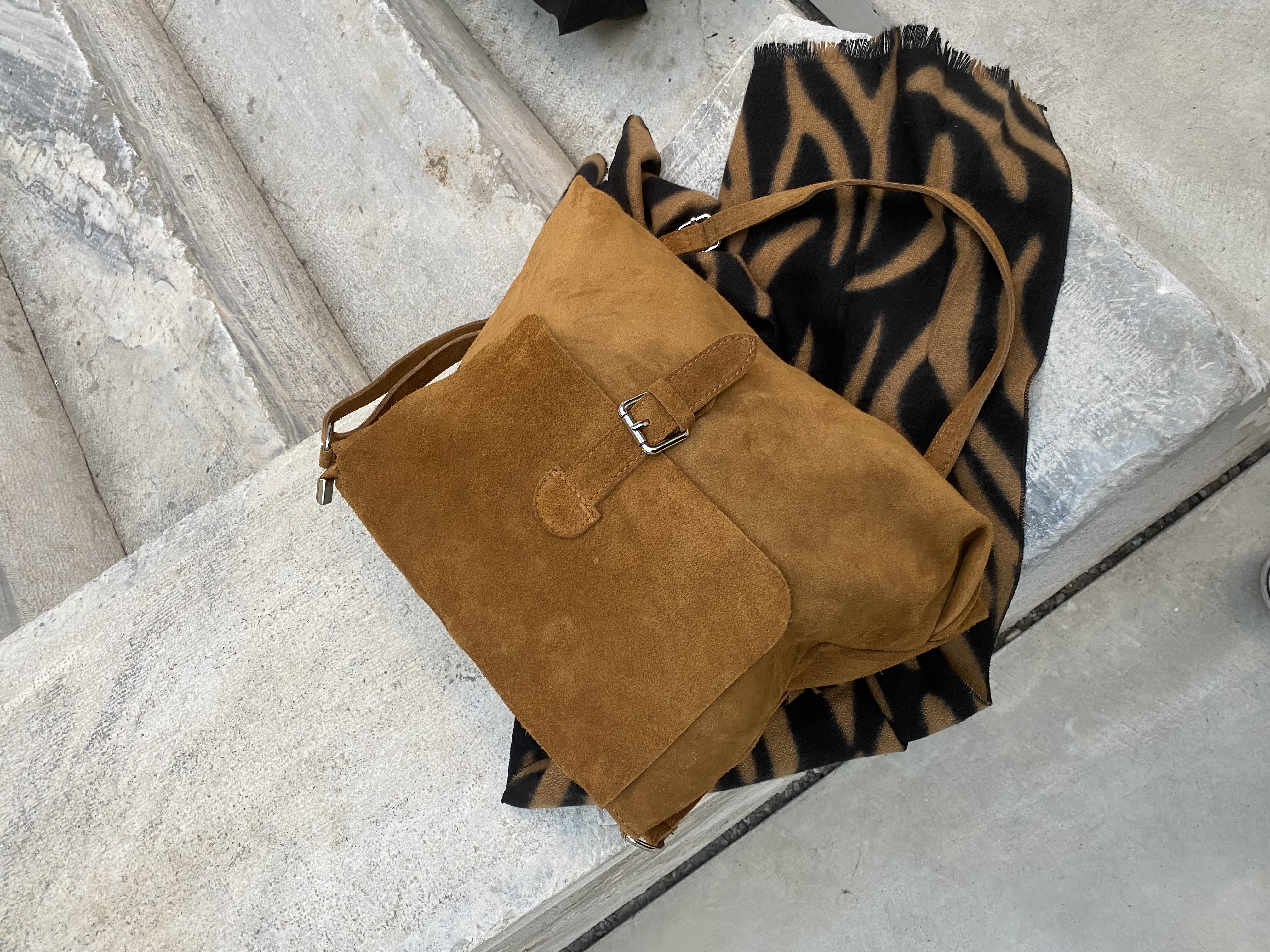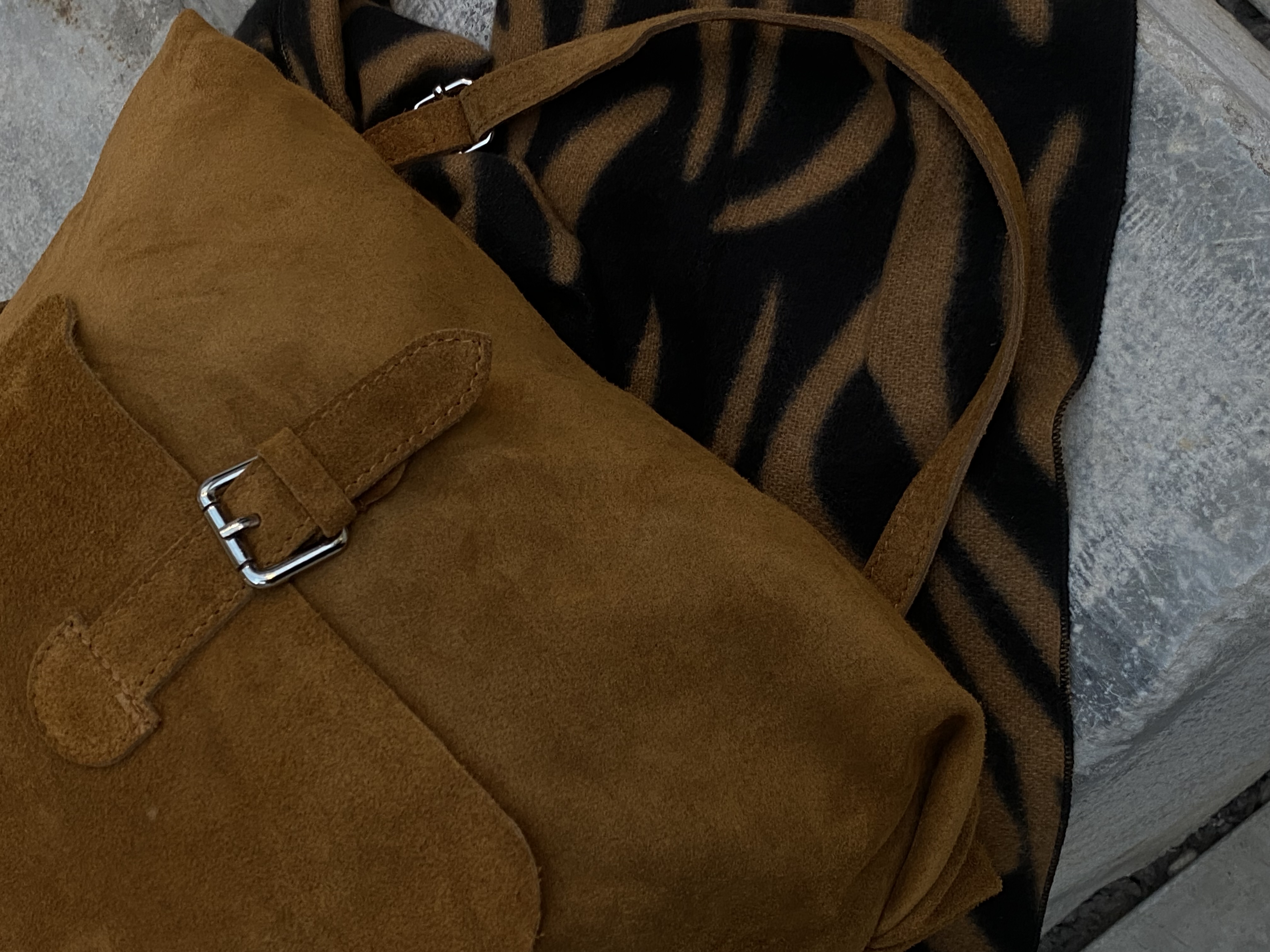 Suede shoulder bag with buckle