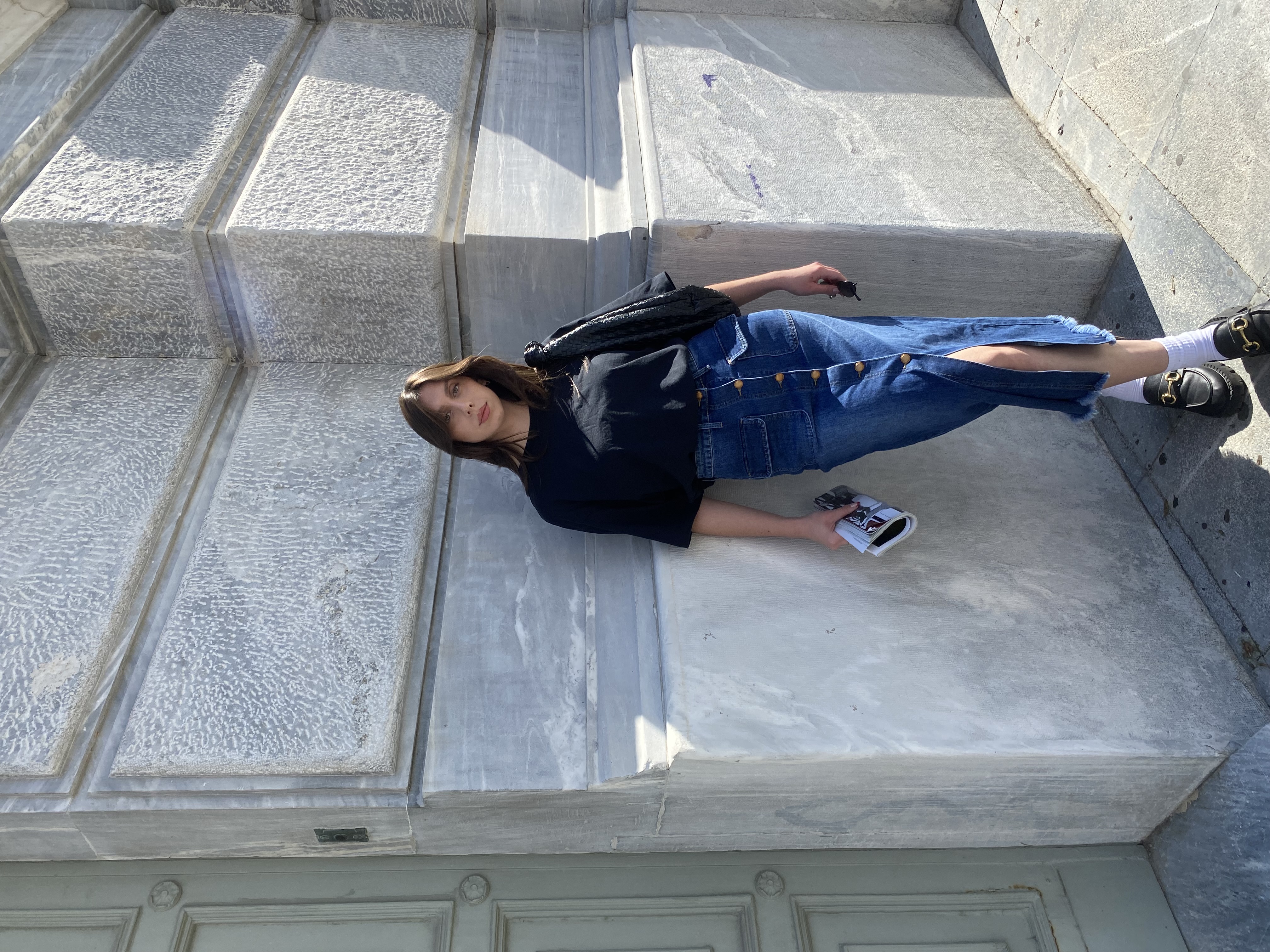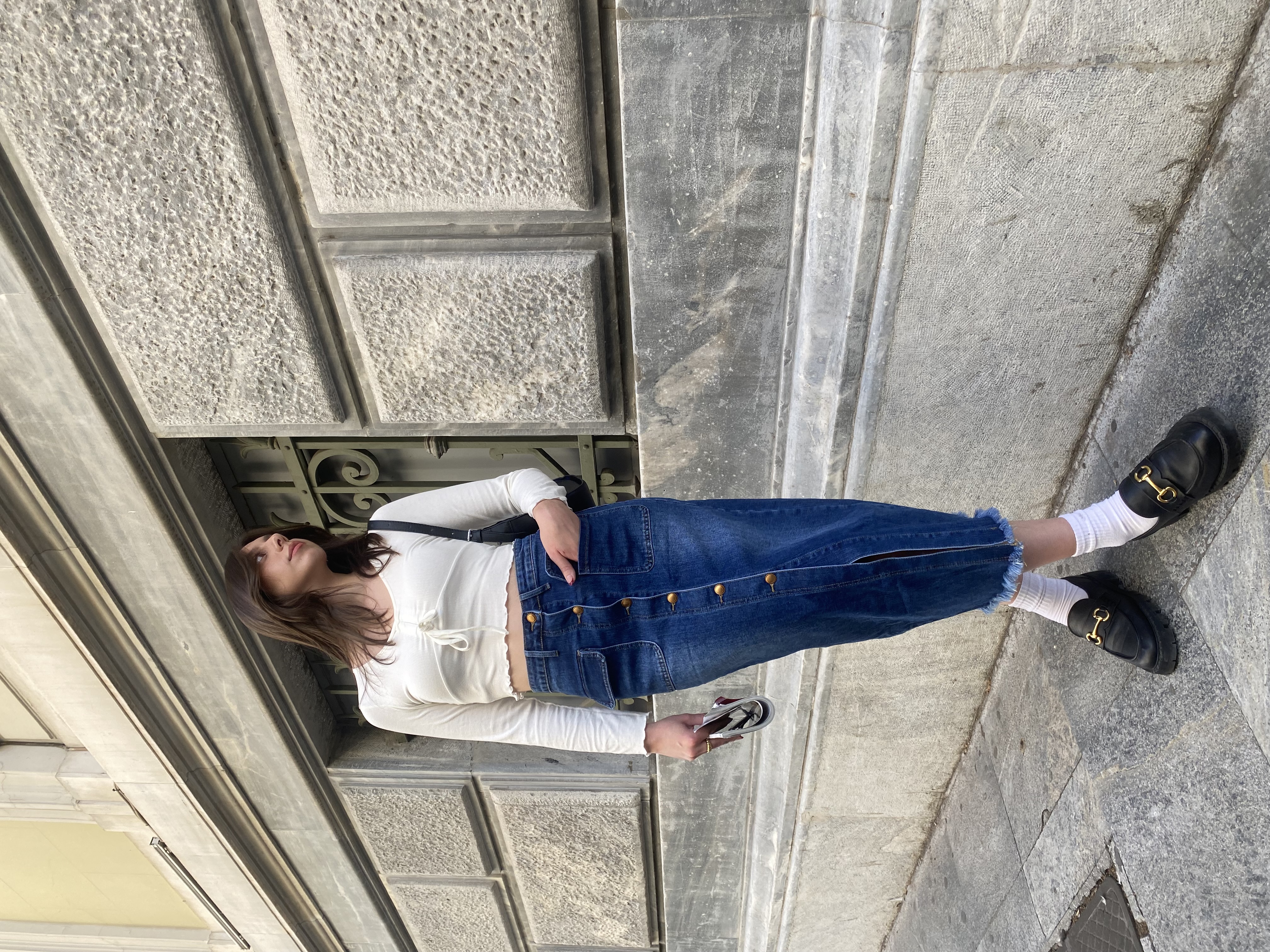 Denim Maxi Skirt with Buttons