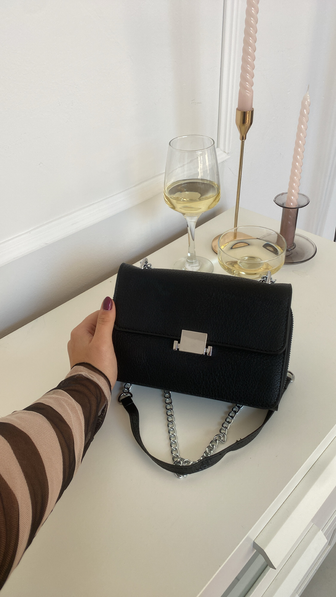 Vegan mini handbag with silver details