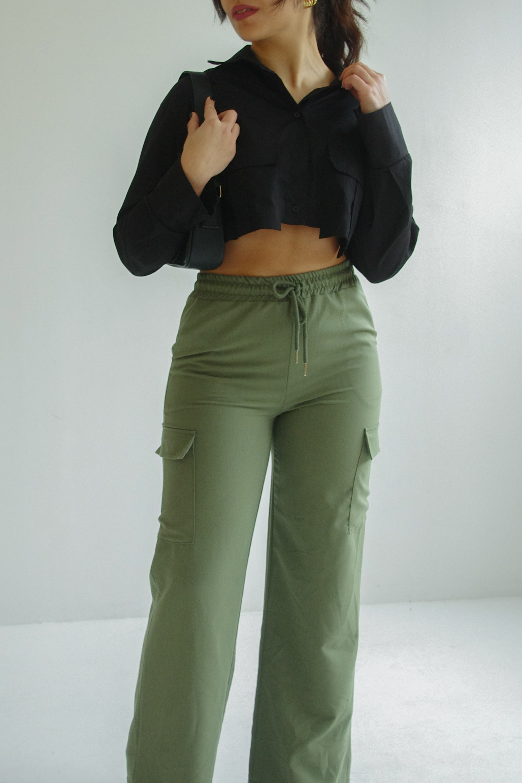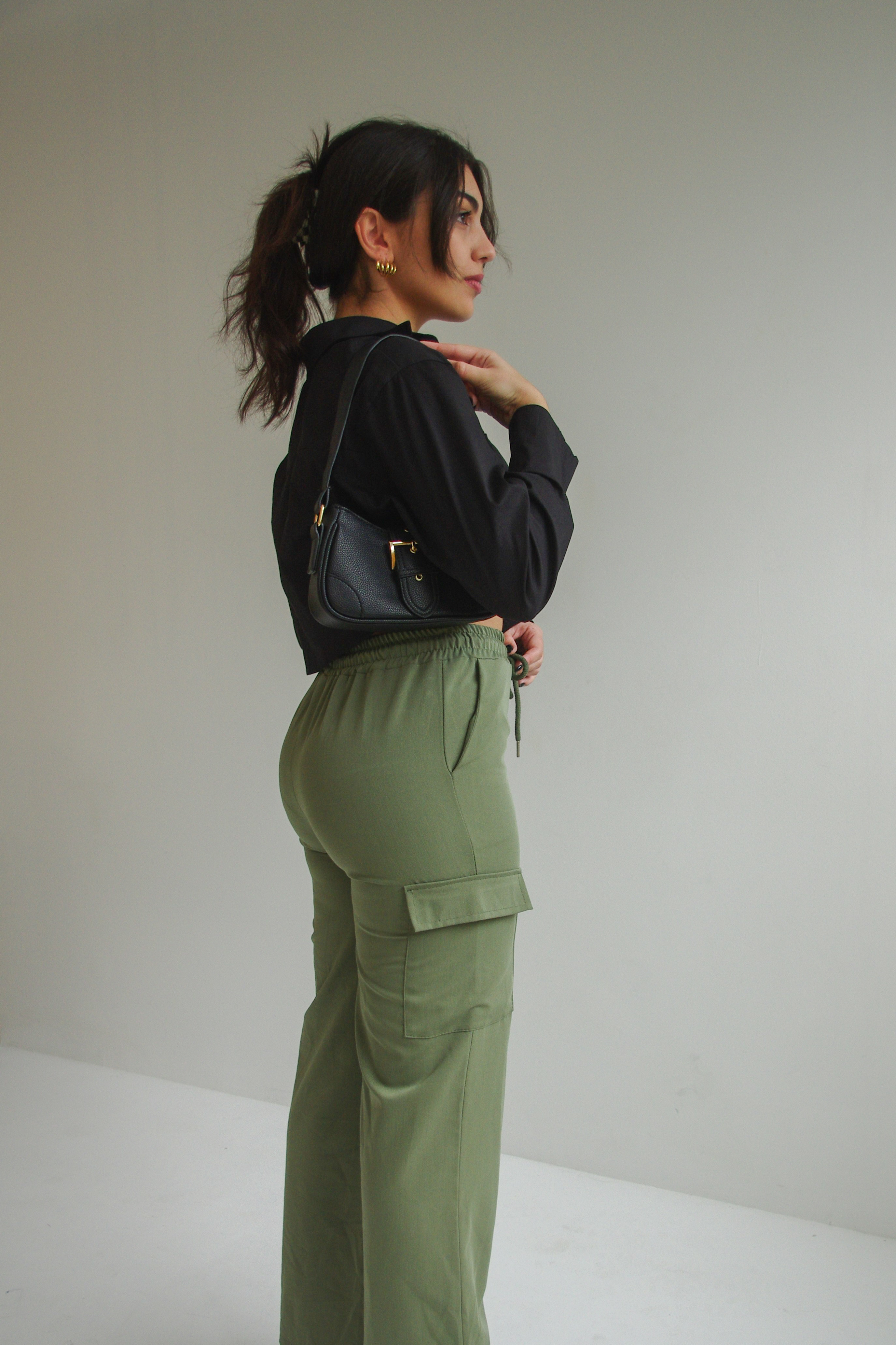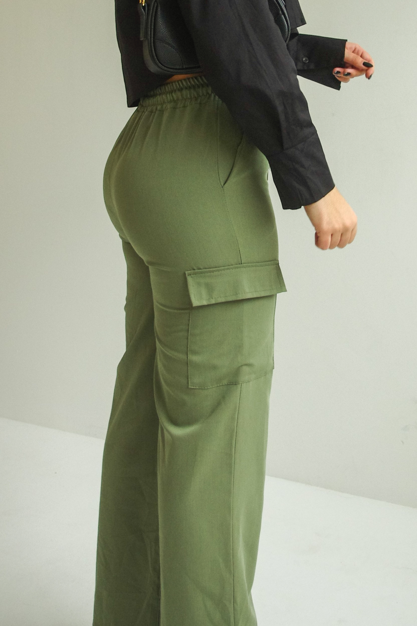 Wide-leg cargo trouser in haki