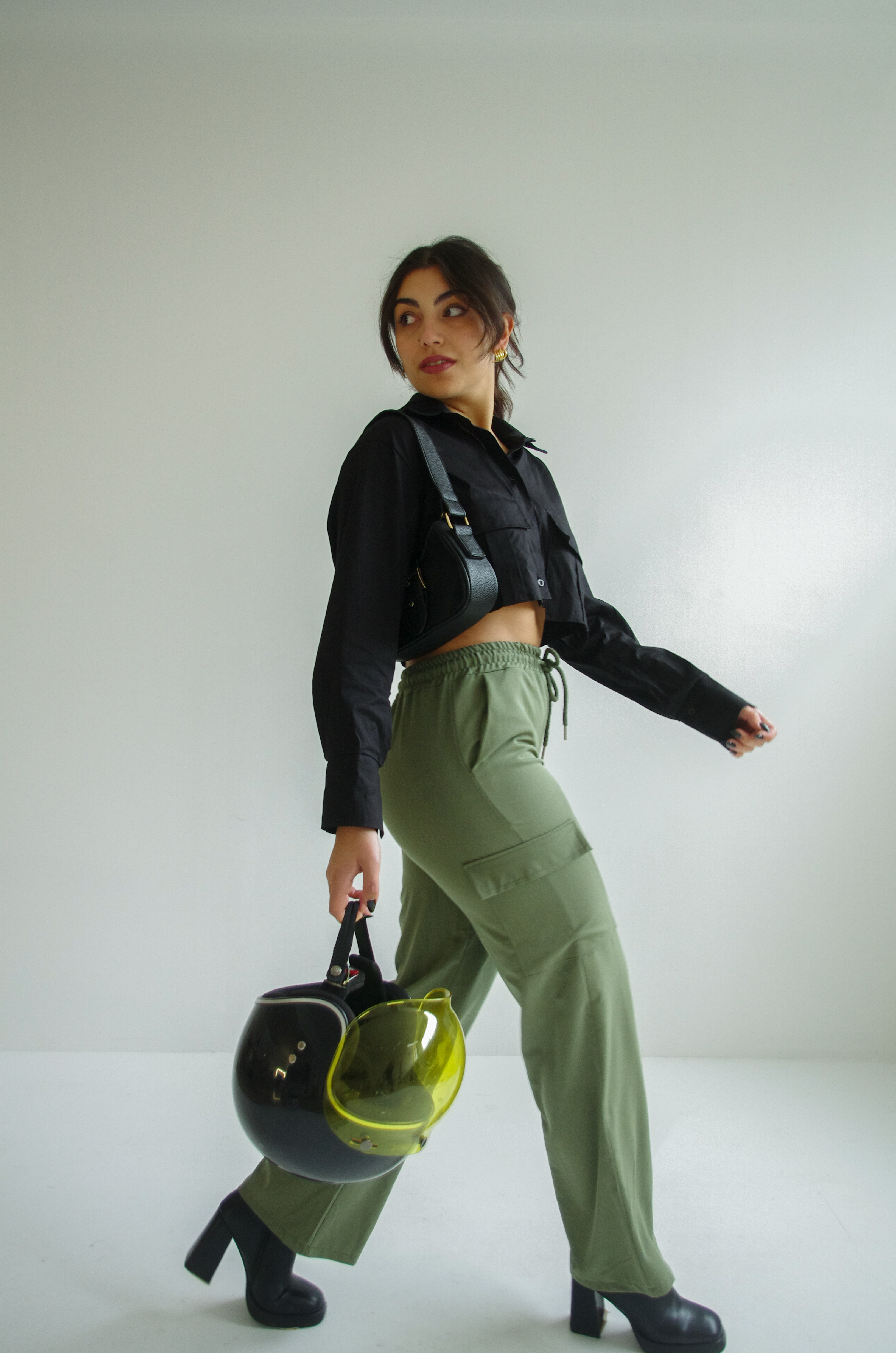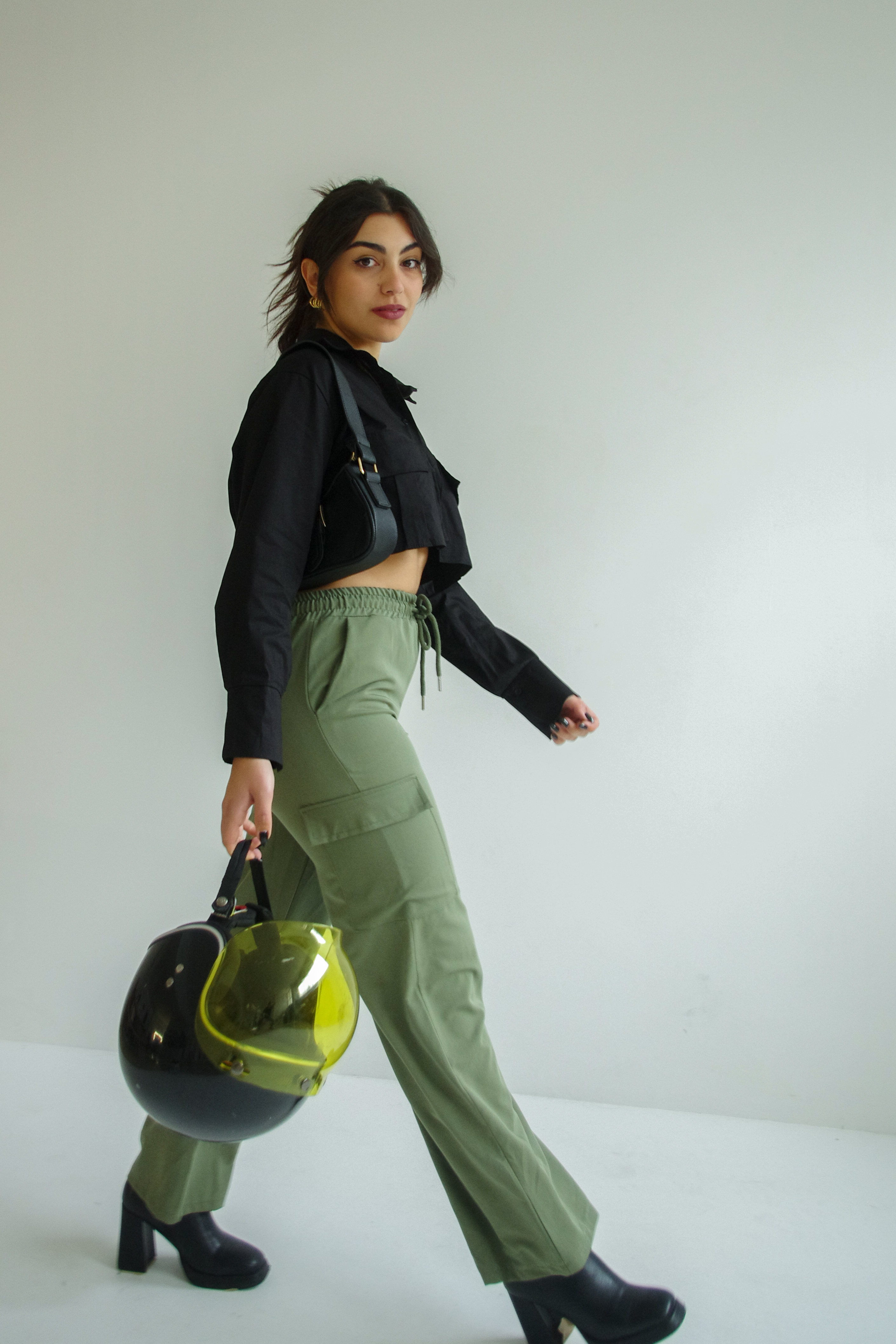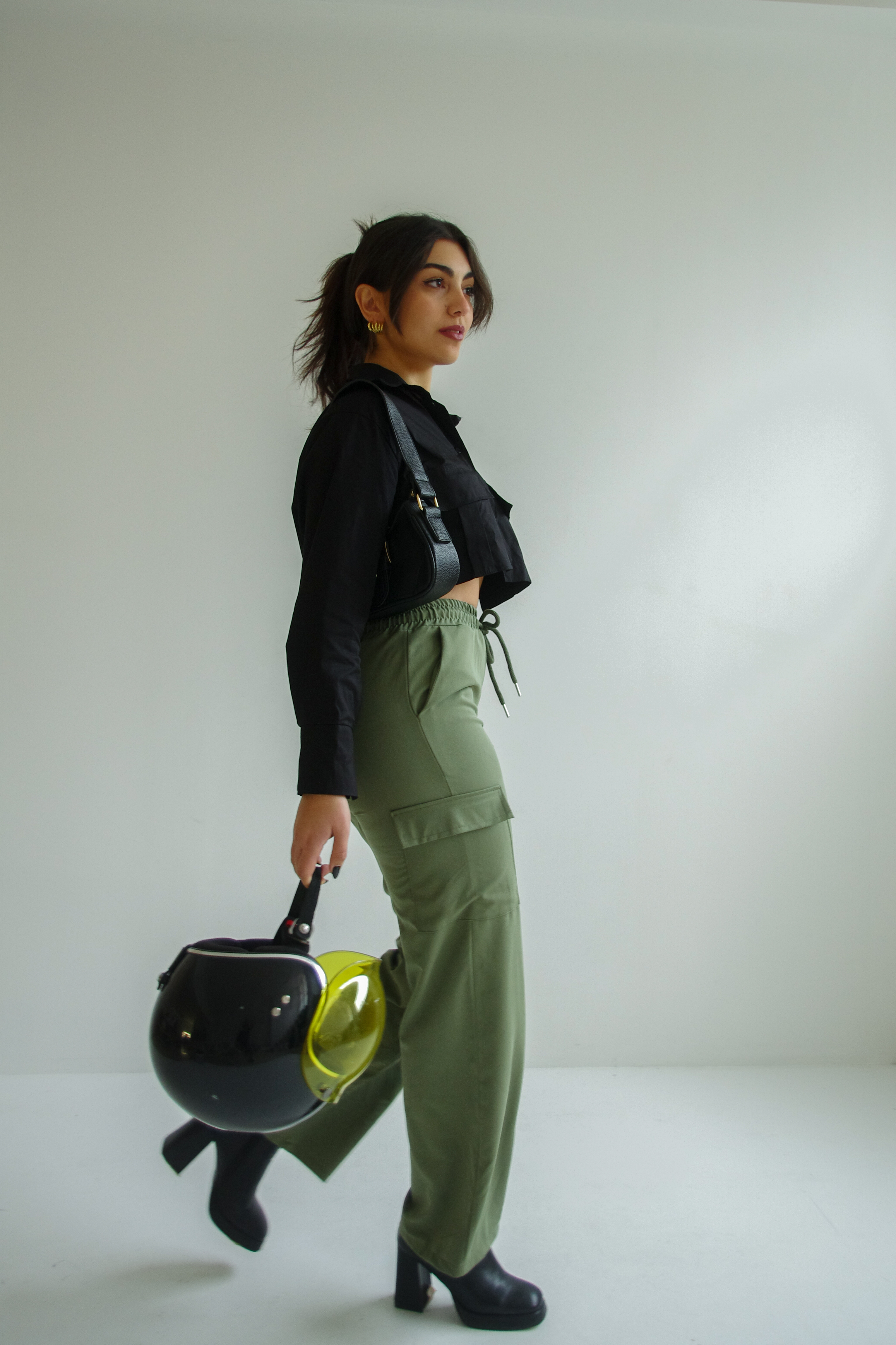 Wide-leg cargo trouser in haki