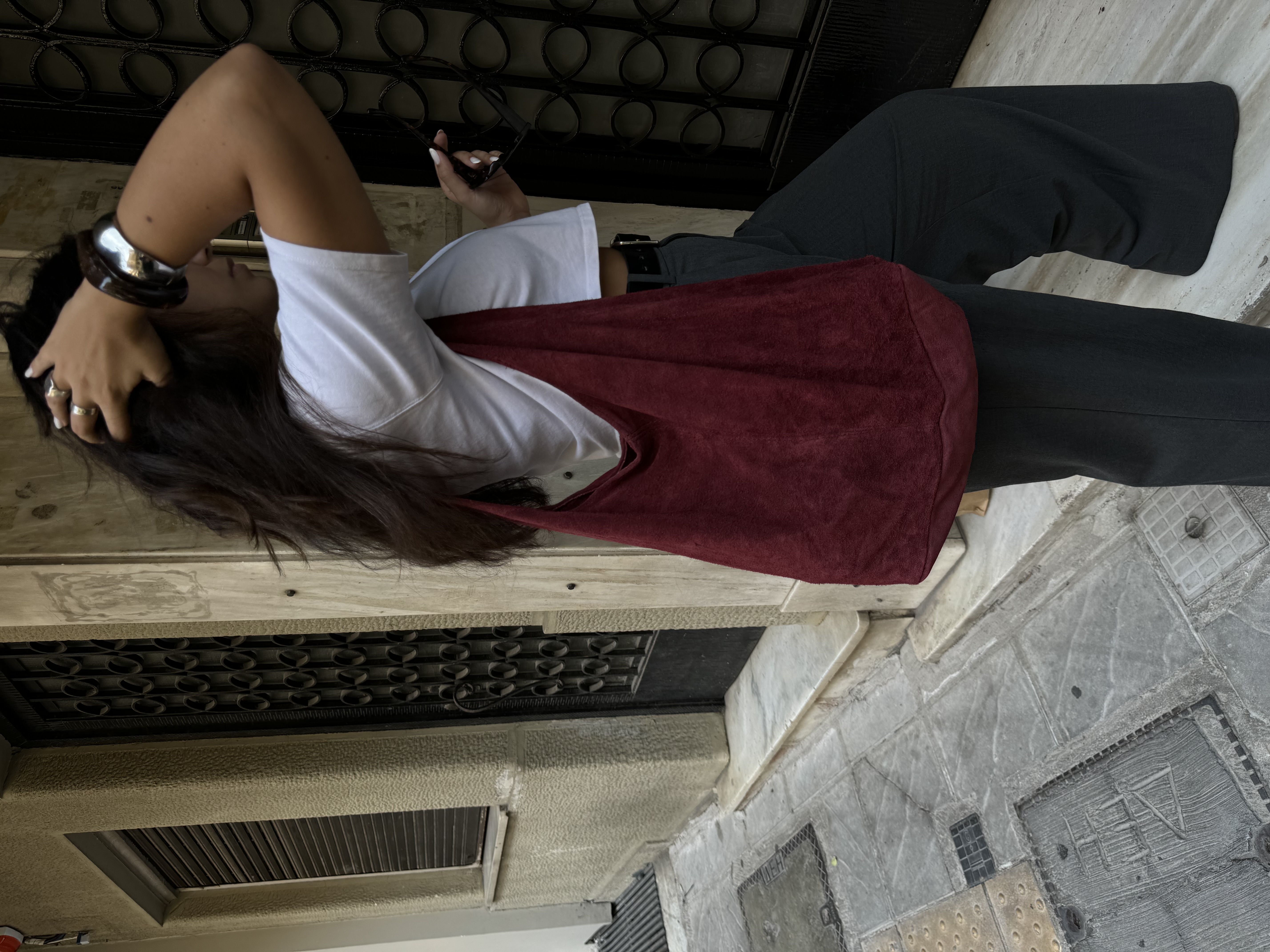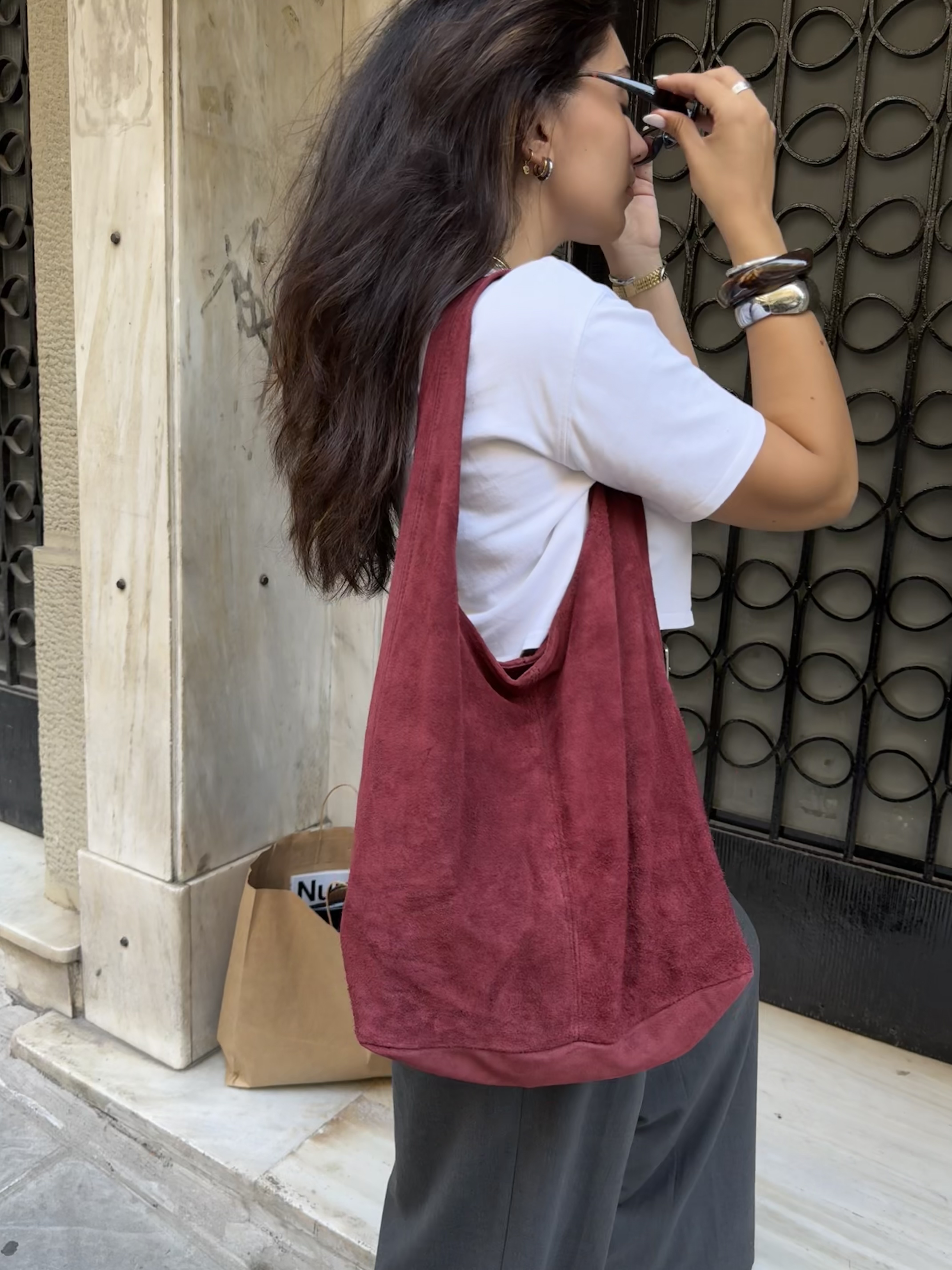 Wine red Suede Tote Bag