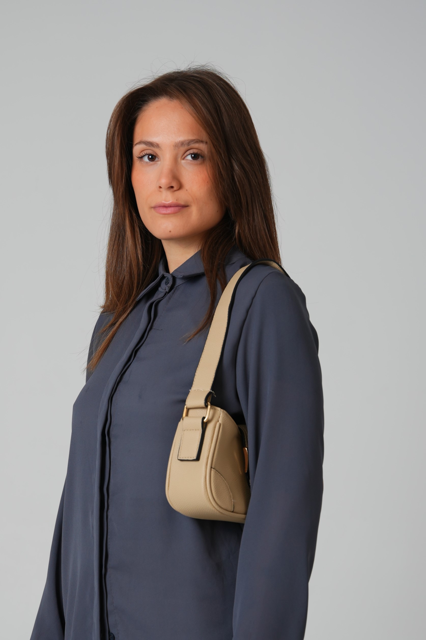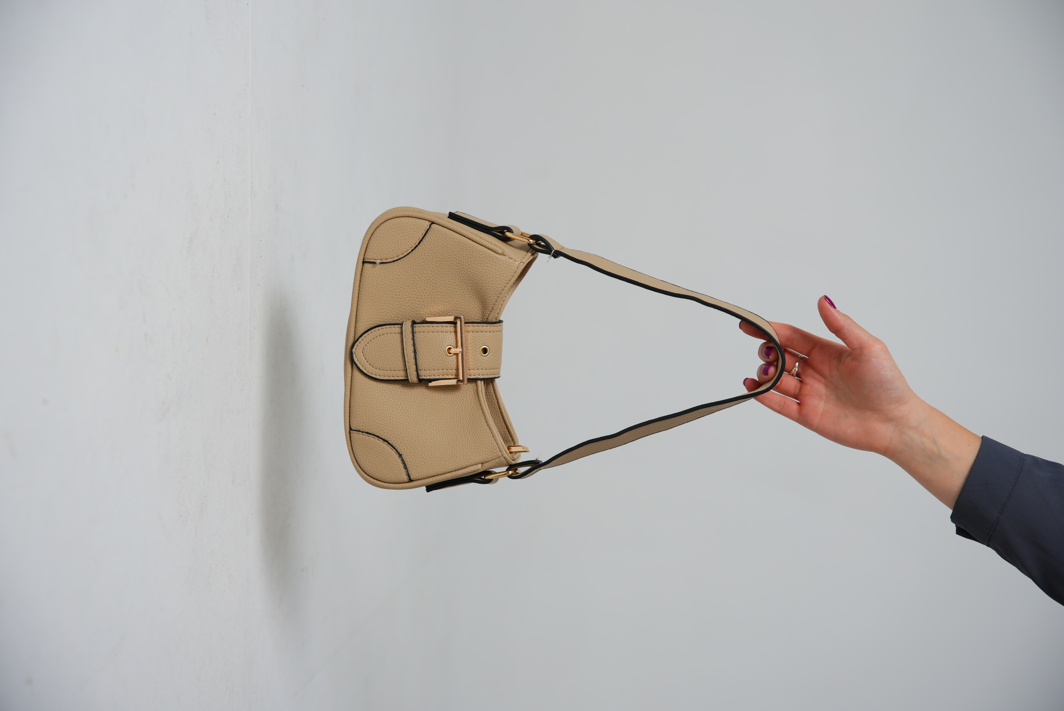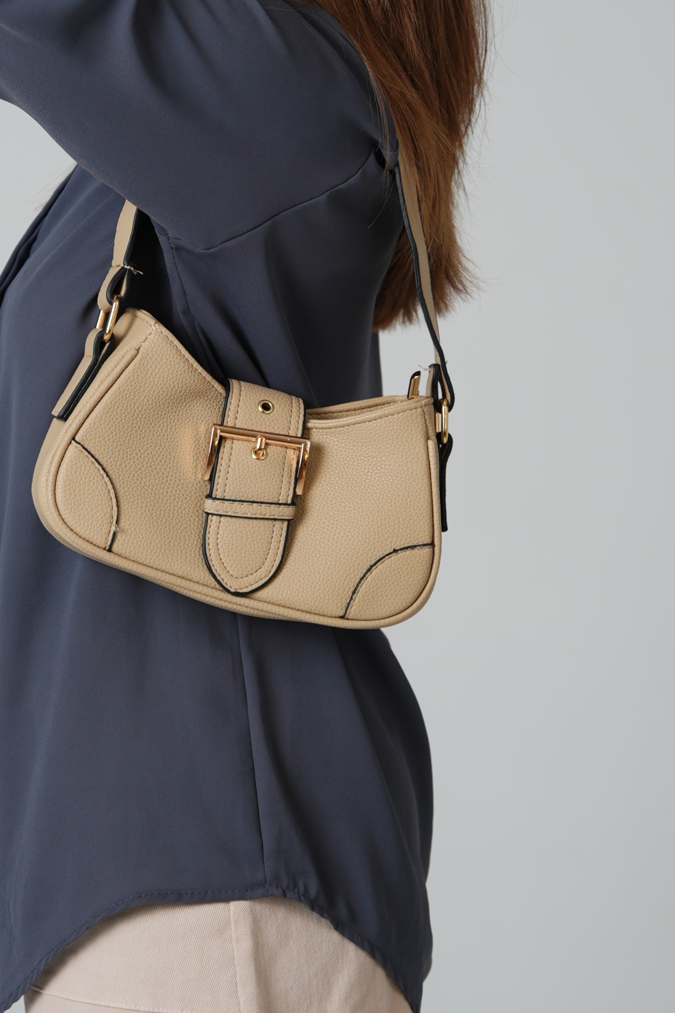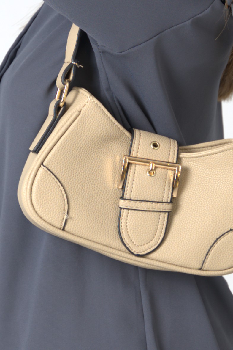 Hobo bag with buckle in beige