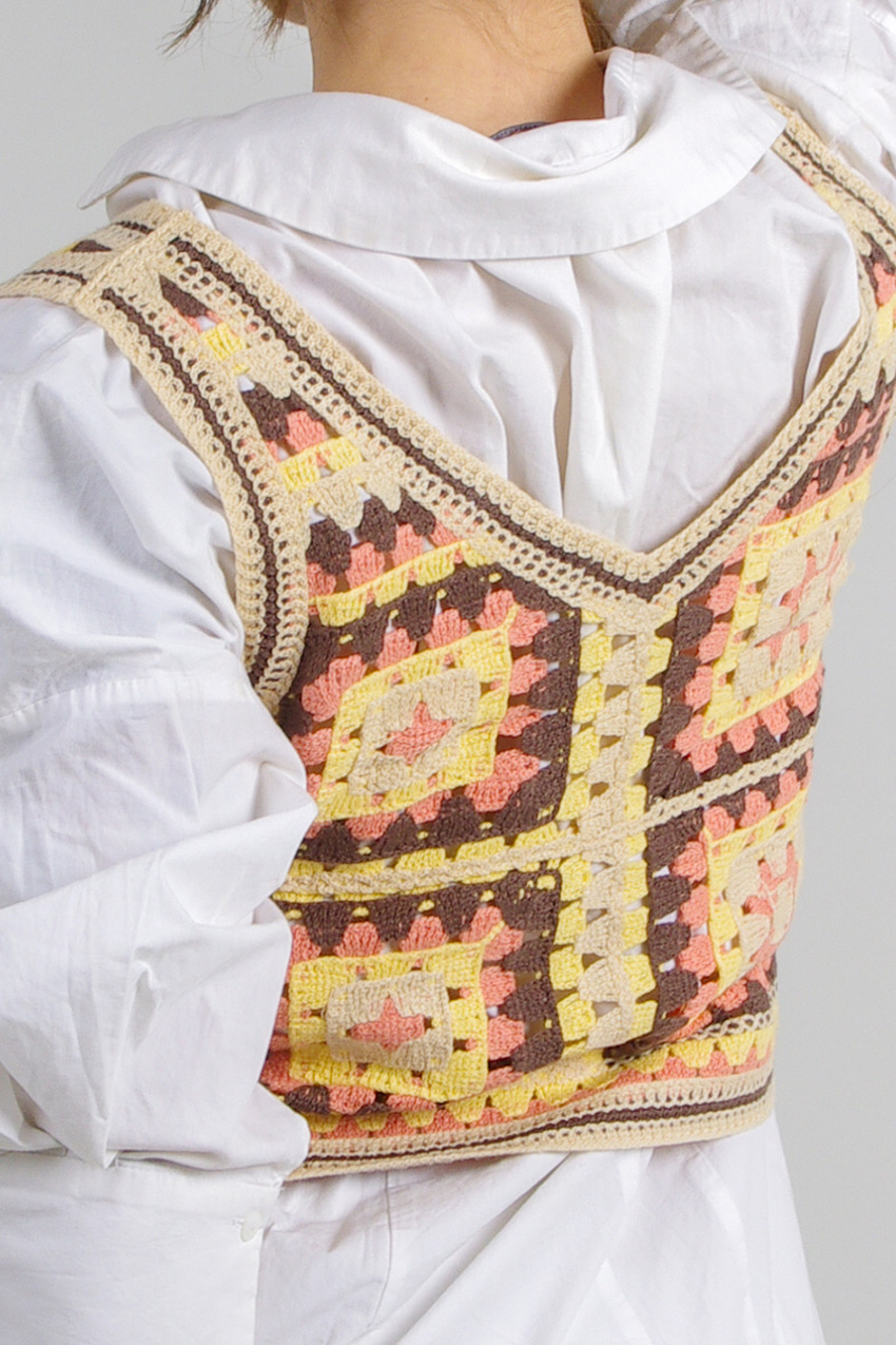Crochet vest in warm shades with square patterns