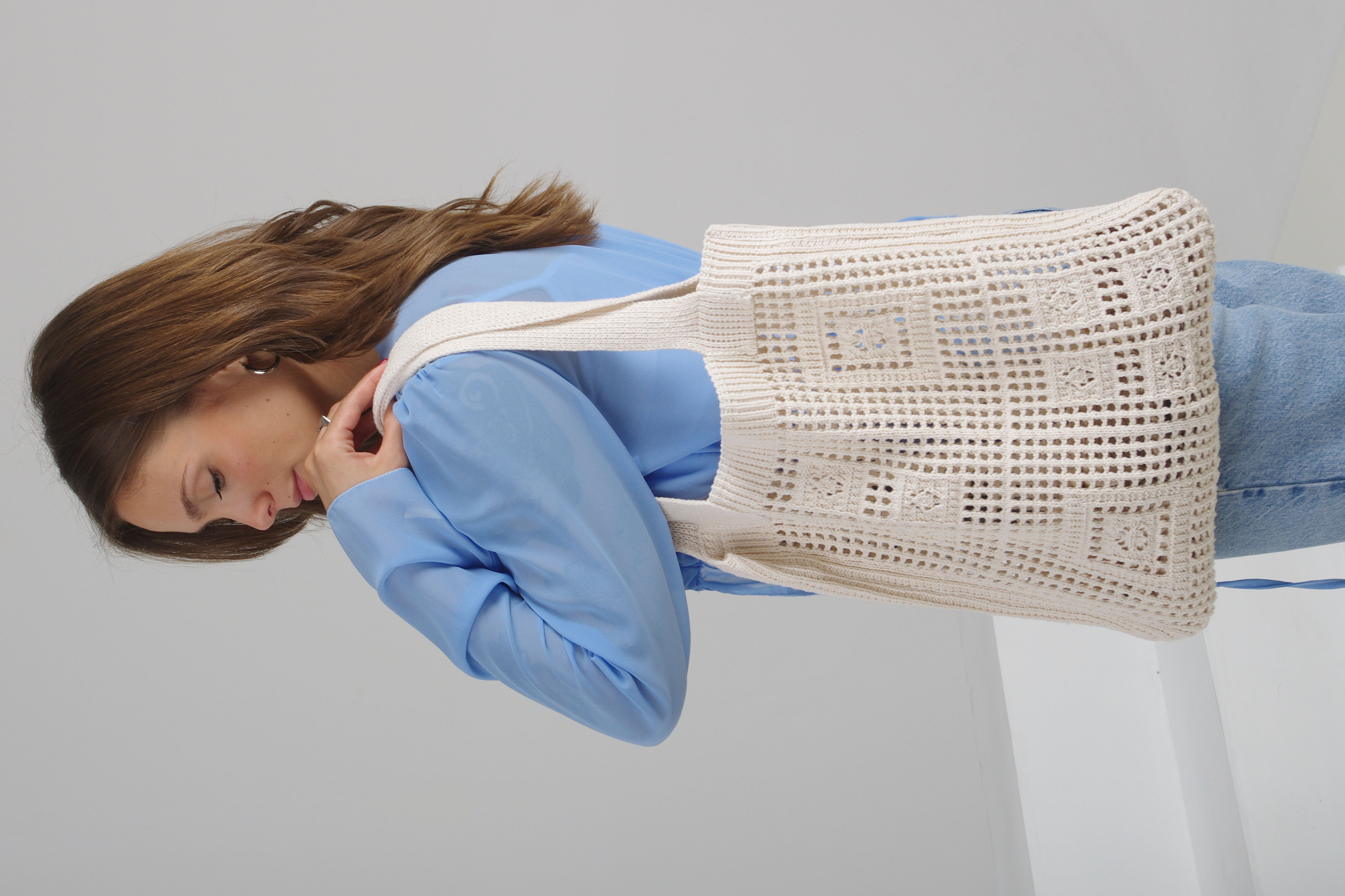 Crochet tote bag in ivory
