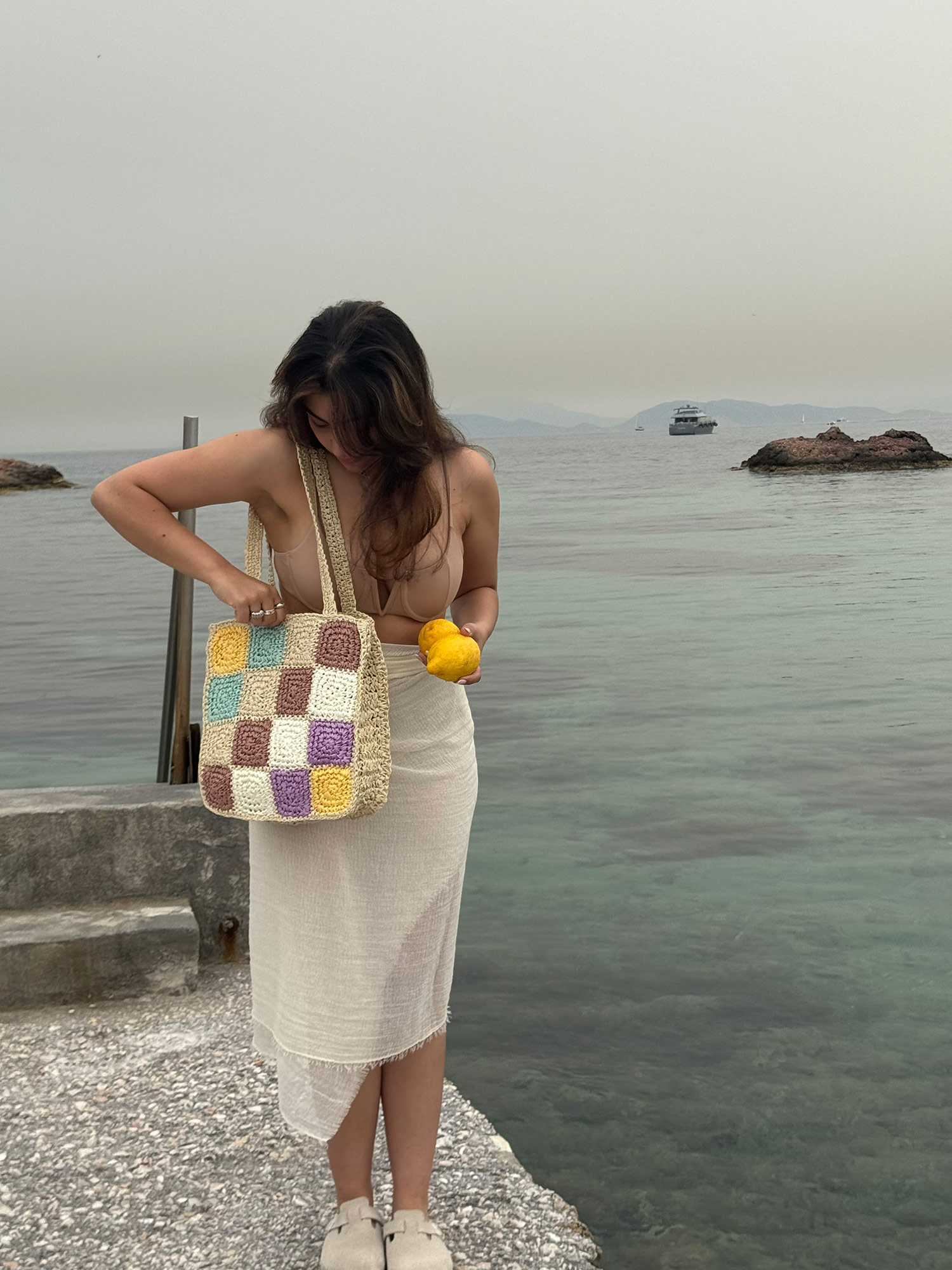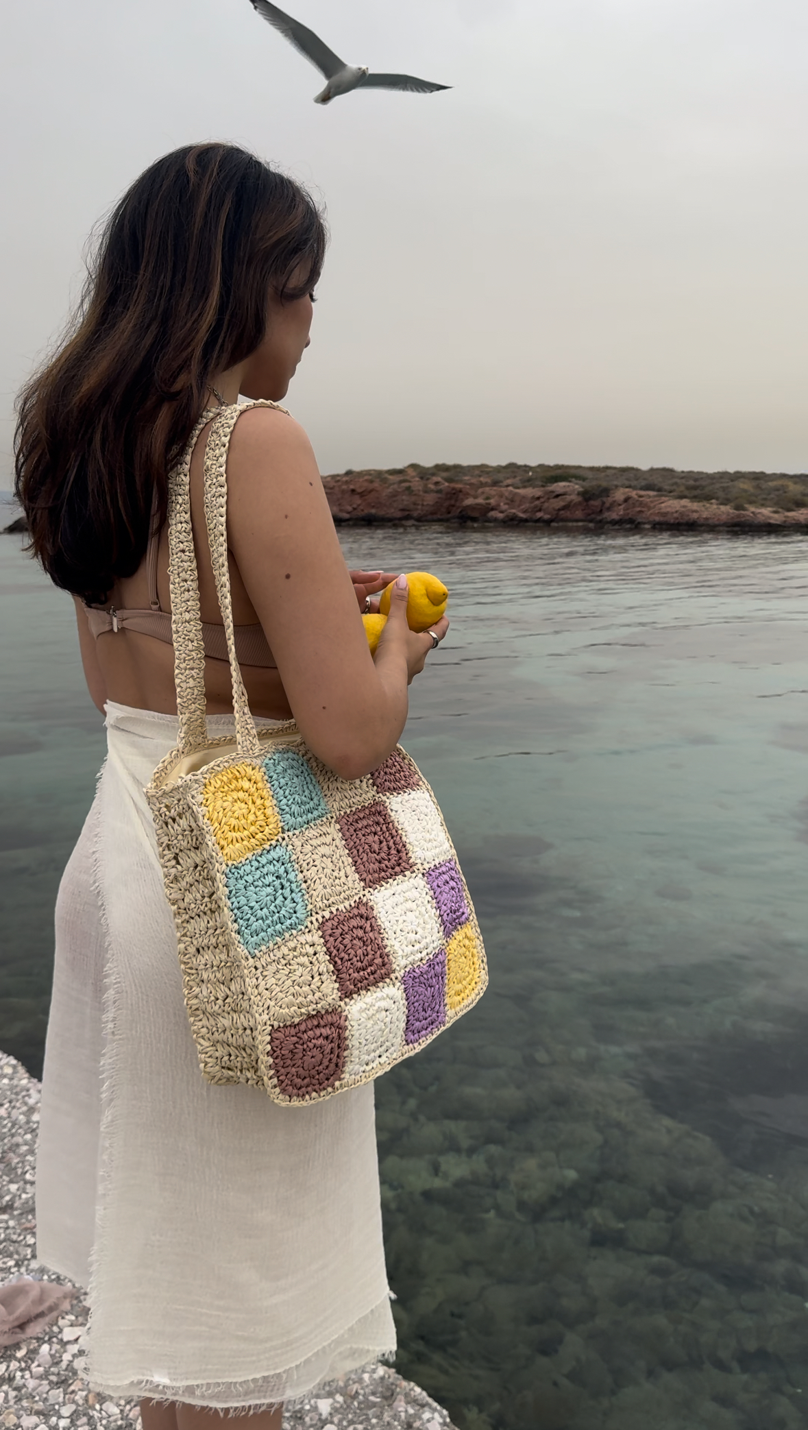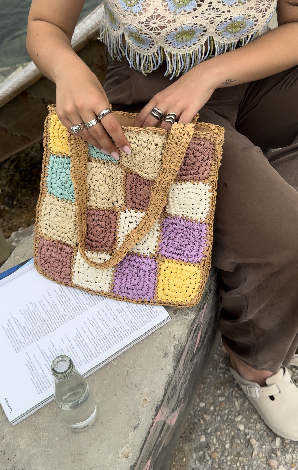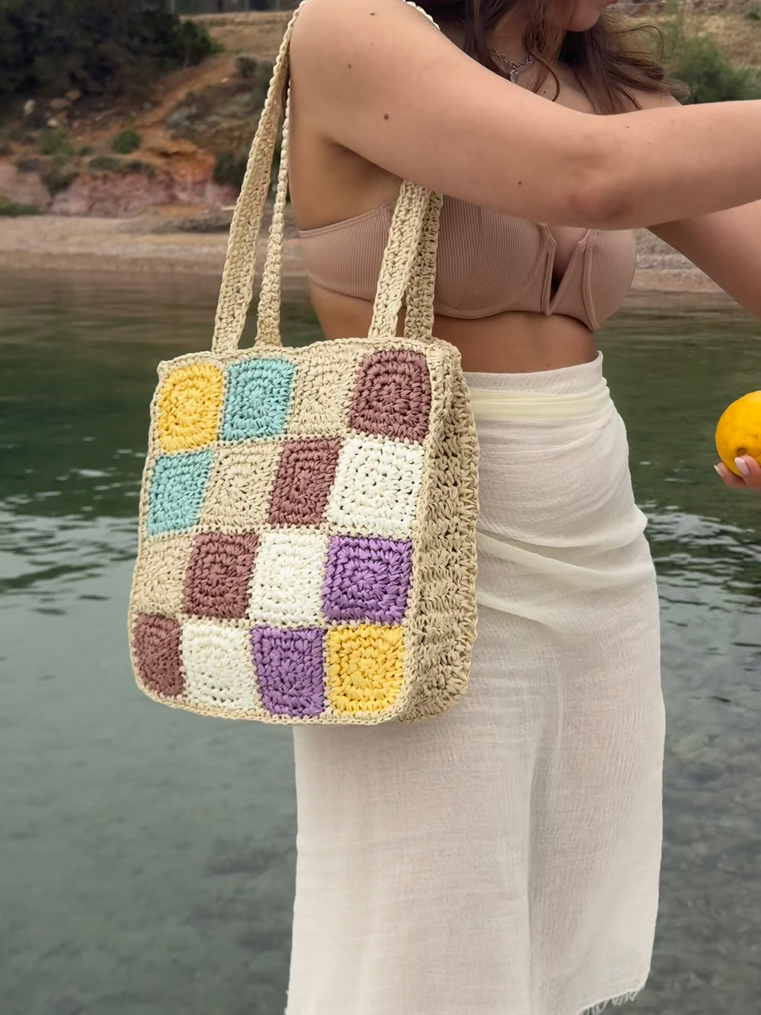 Raffia-effect tote bag