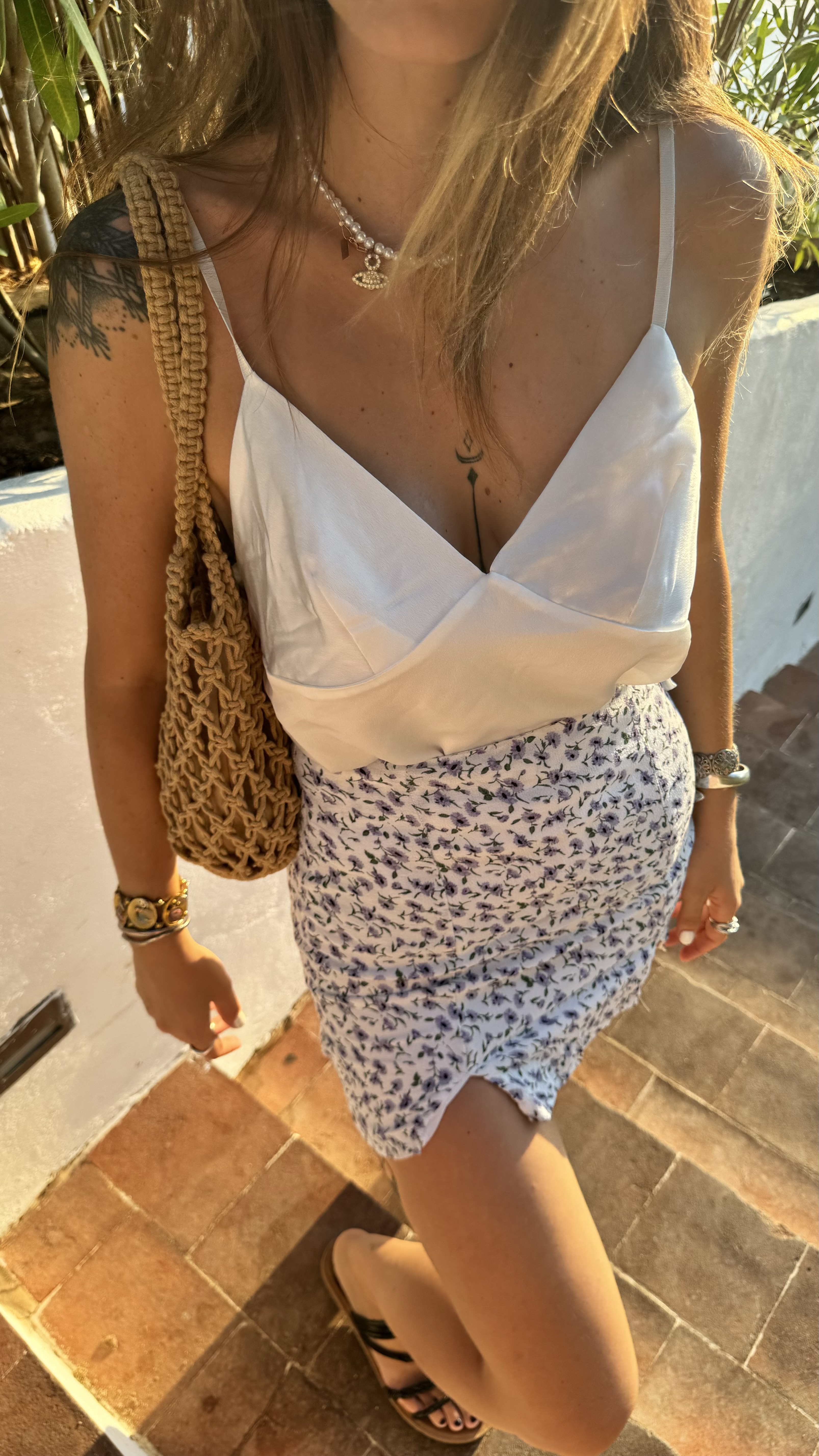 Satin top with straps in white
