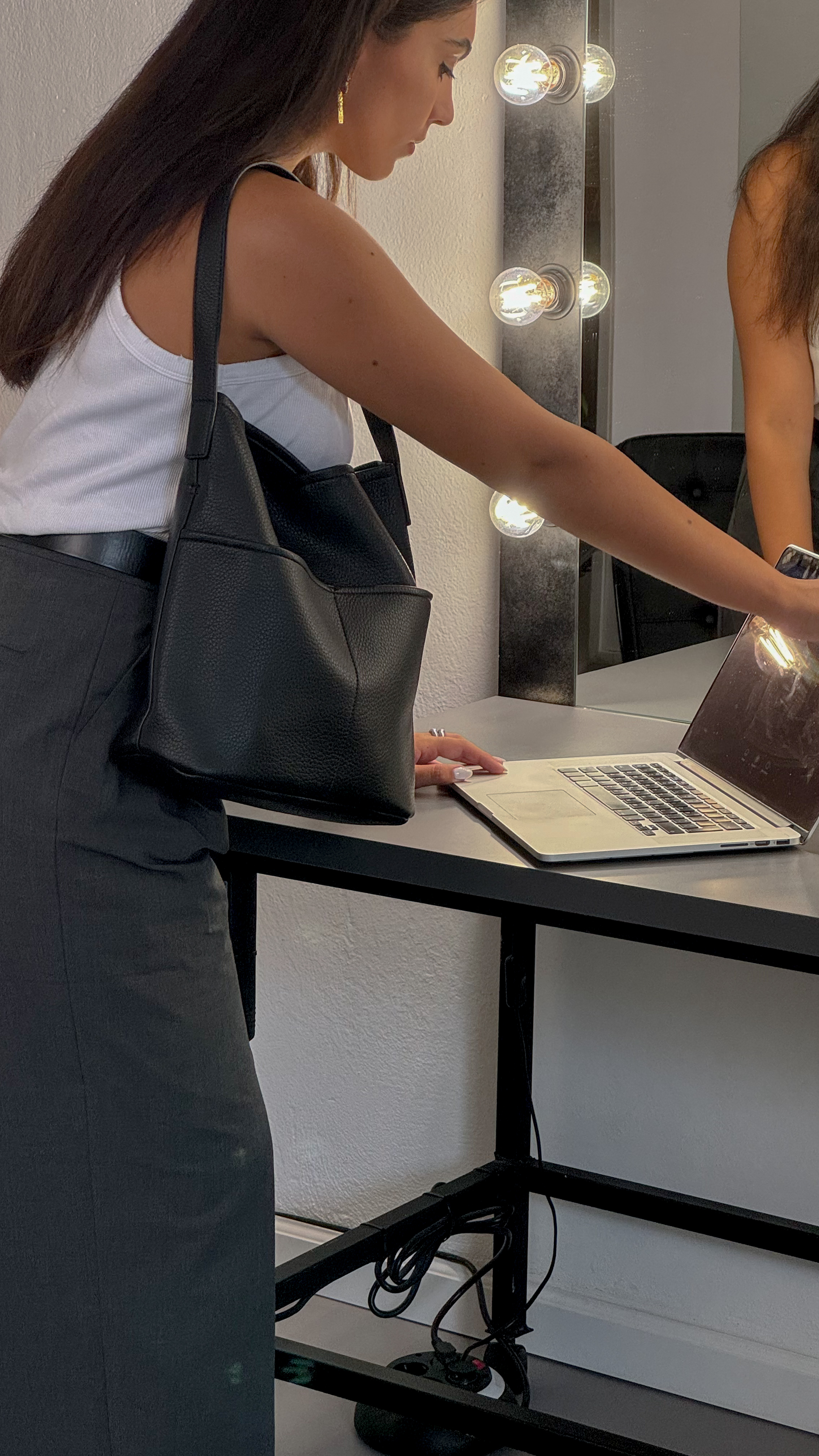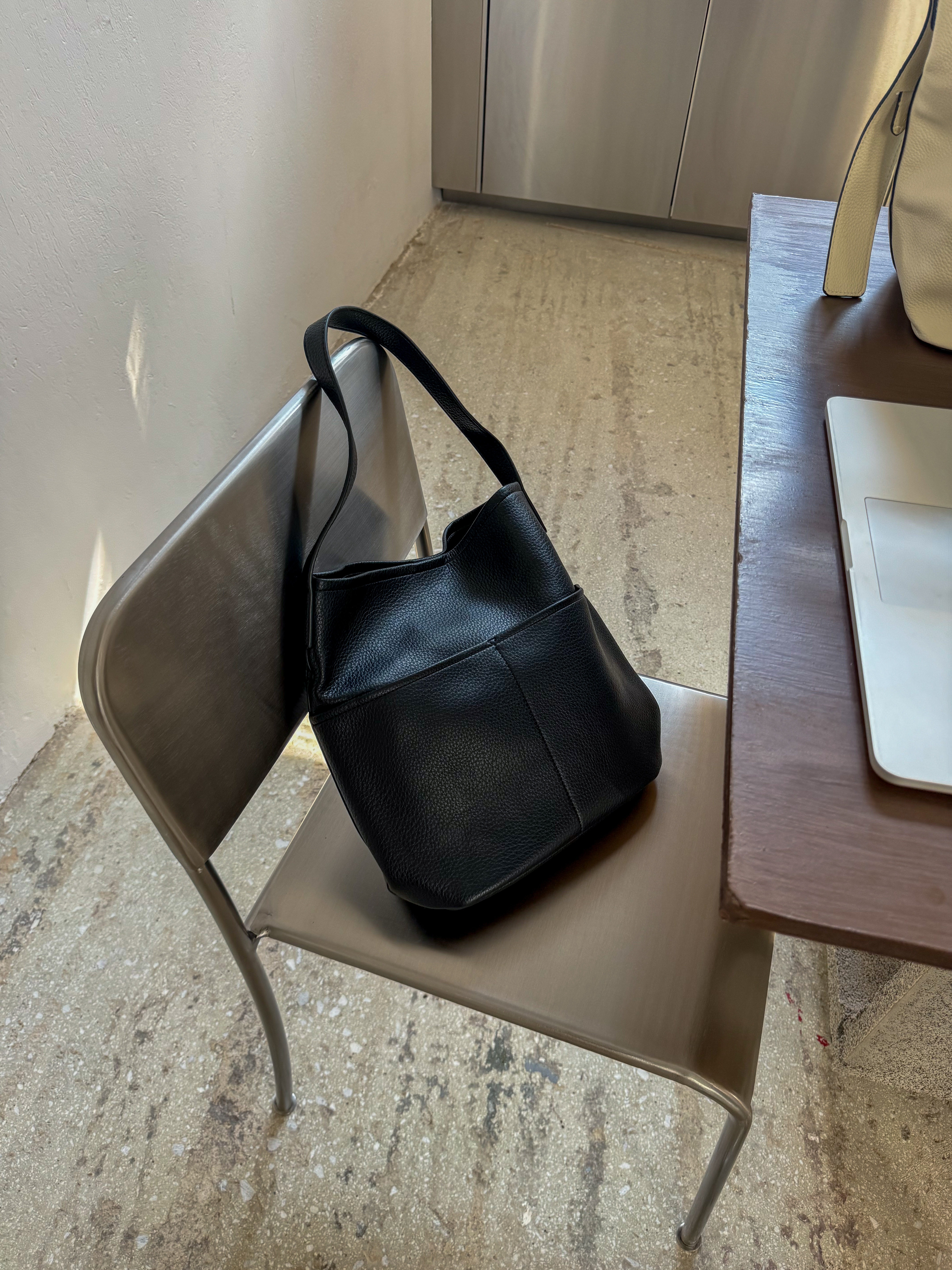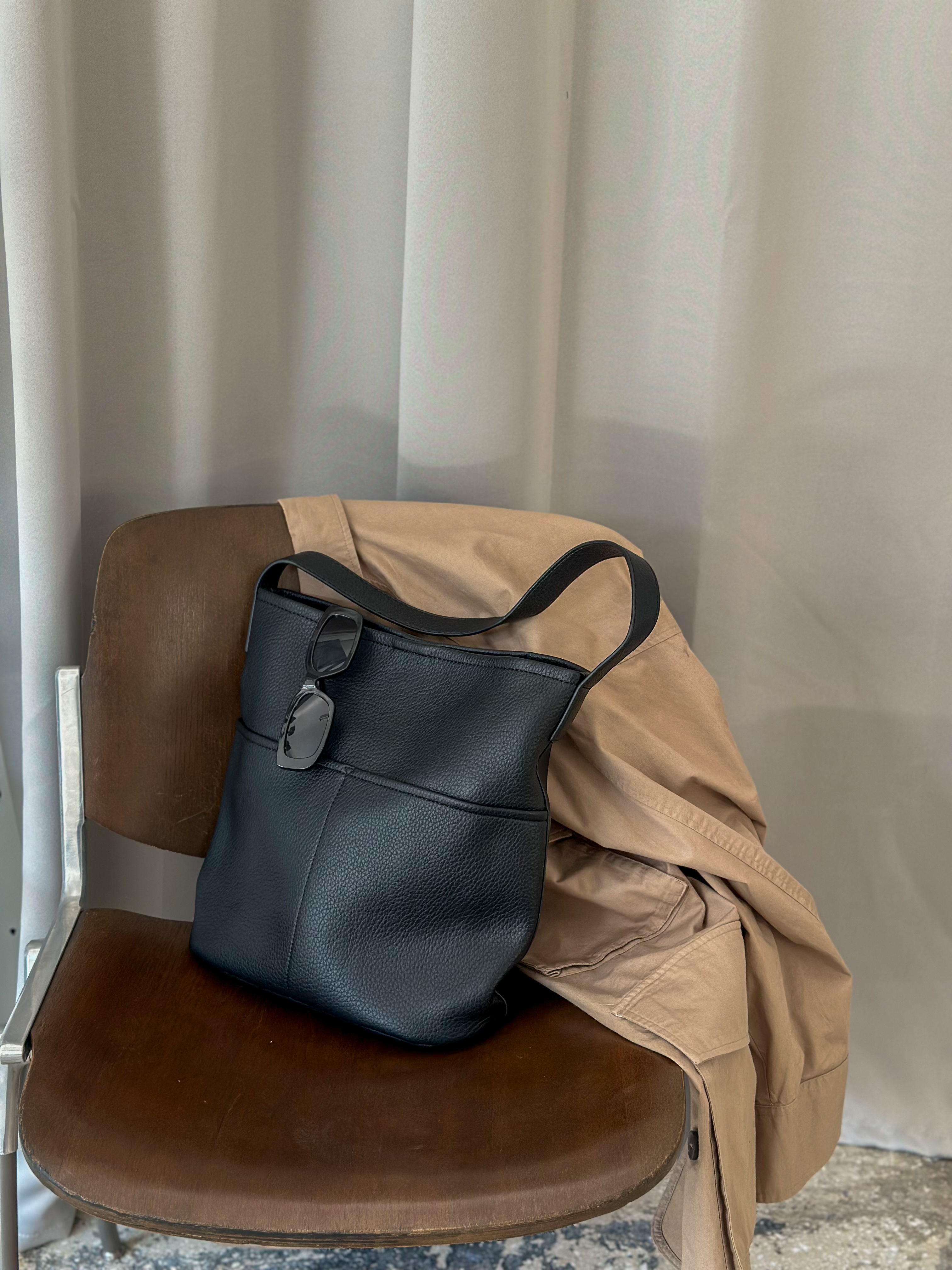 Bucket bag with pockets in black
